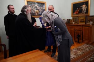 После теплого общения митрополит Иоанн подарил гостям памятные подарки, и все сделали общую фотографию.
