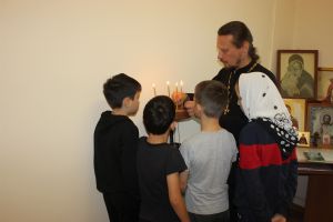 Ребята задавали отцу Андрею много вопросов, вместе размышляли над предназначением каждого человека в этом мире. После беседы ребята посетили имеющуюся в здании Центра молельную комнату, где батюшка предложил каждому воспитаннику возможность постоять перед иконами, подумать о своей дальнейшей жизни и попросить у Господа прощения за совершенные проступки.