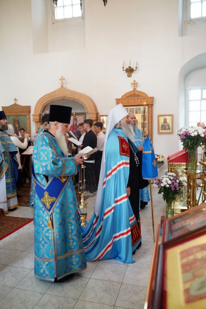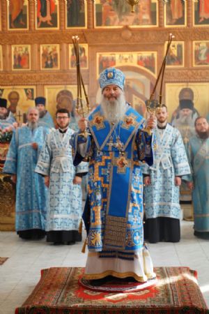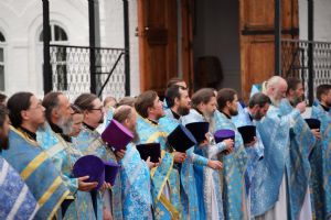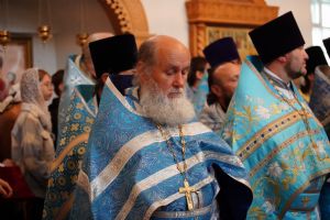 Архипастырю сослужило духовенство Йошкар-Олинской и Волжской епархий. Песнопения исполнял детско-юношеский хор «Благовест» под управлением Татьяны Черновой.