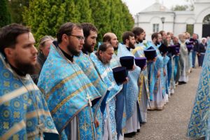 После Литургии состоялся крестный ход вокруг храма со чтением Евангелия и кроплением святой водой. Затем митрополит Иоанн обратился к собравшимся с архипастырским словом: