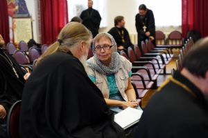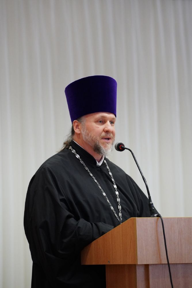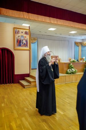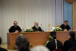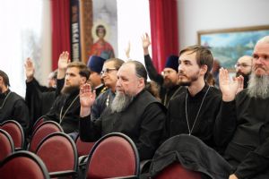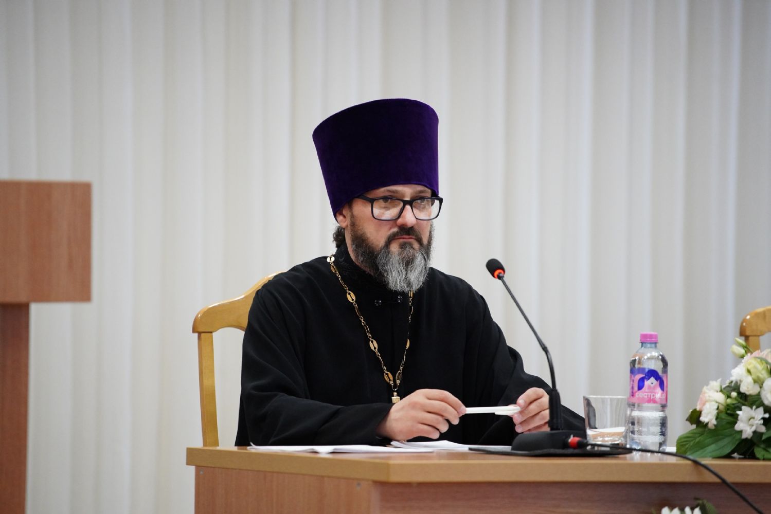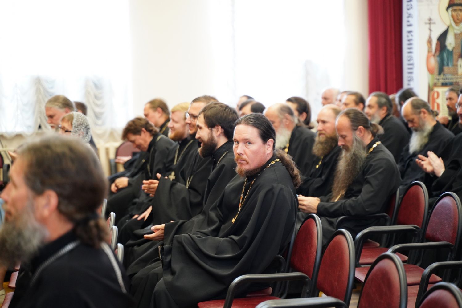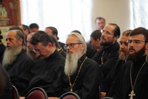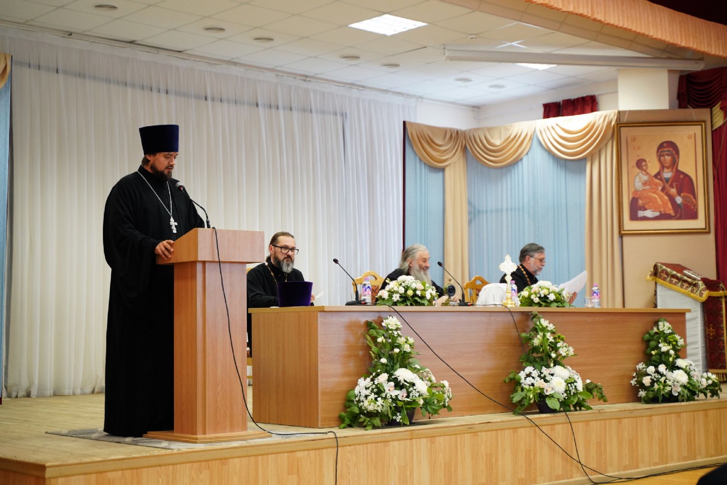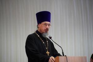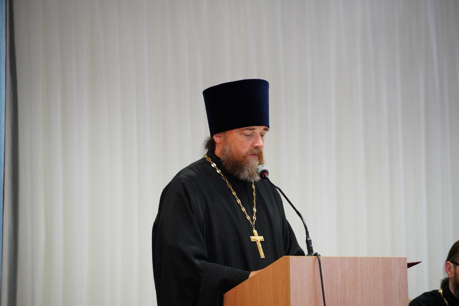 После соборного богослужения в Мироносицком женском монастыре с. Ежово священнослужители и представители приходов переехали в Йошкар-Олу и собрались в актовом зале Православного центра.