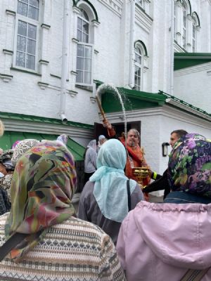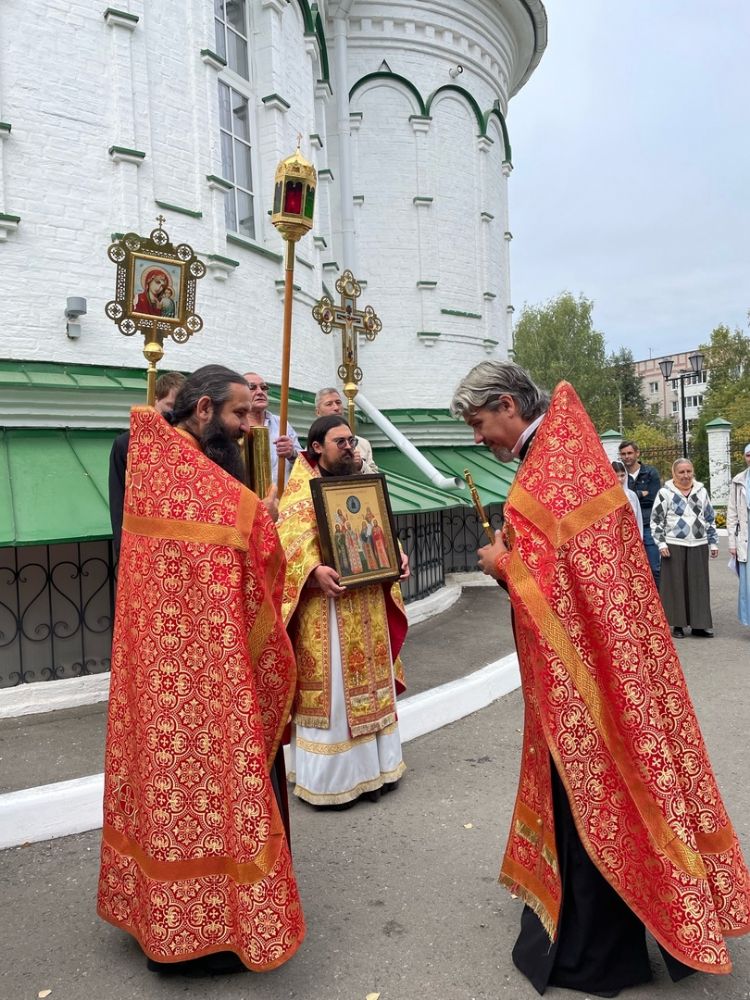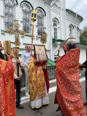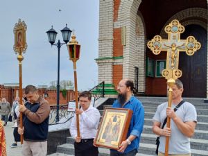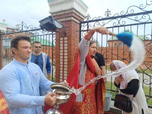 Отметили престольный праздник и в Воскресенском соборе – богослужение в нижнем Покровском приделе совершили настоятель собора иерей Андрей Кочаков и клирик храма Рождества Пресвятой Богородицы с. Семеновка иерей Сергий Асланов. Верующие с иконой священномучеников Марийских обошли крестным ходом вокруг храма, батюшки щедро окропили собравшихся святой водой.