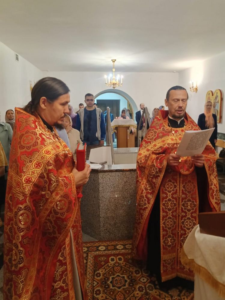 Божественную литургию в этот день в храме Рождества Христова, его нижнем приделе, возглавил настоятель иерей Александр Лоскутов в сослужении иереев Никиты Смирнова и Евгения Симакова и диакона Димитрия Кудряшова. По традиции престольных праздников после Литургии прошел крестный ход вокруг храма со чтением Евангелия и кроплением святой водой.