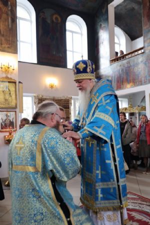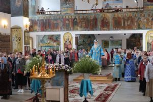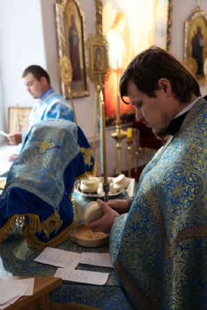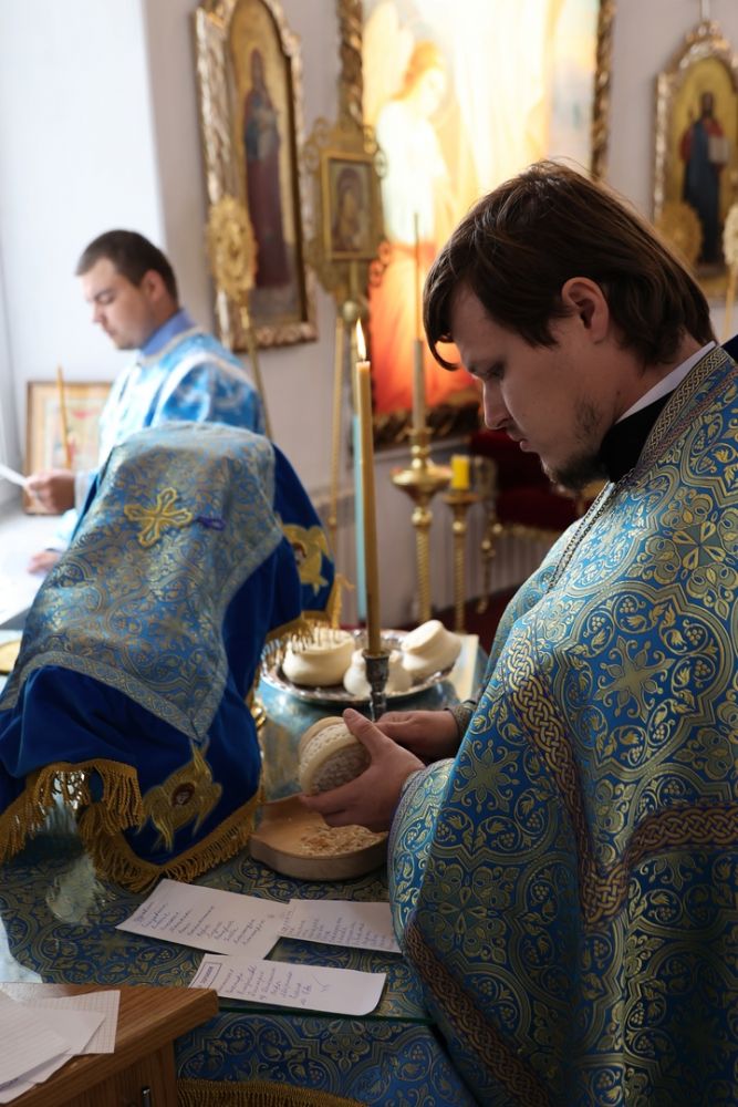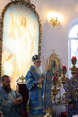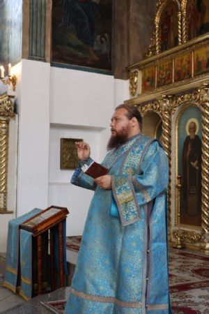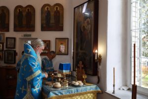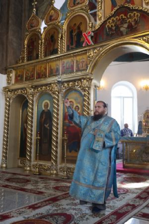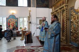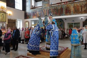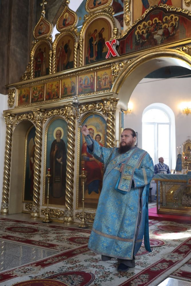 Его Преосвященству сослужили клирики собора иерей Герман Михайлов, диакон Иоанн Захаров, иеродиакон Тихон (Белавин). Песнопения исполнял архиерейский хор под управлением Любови Михеевой.