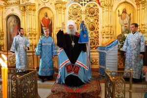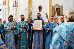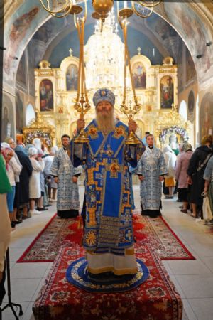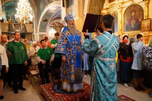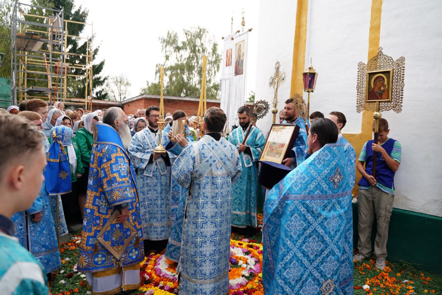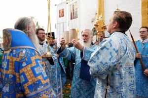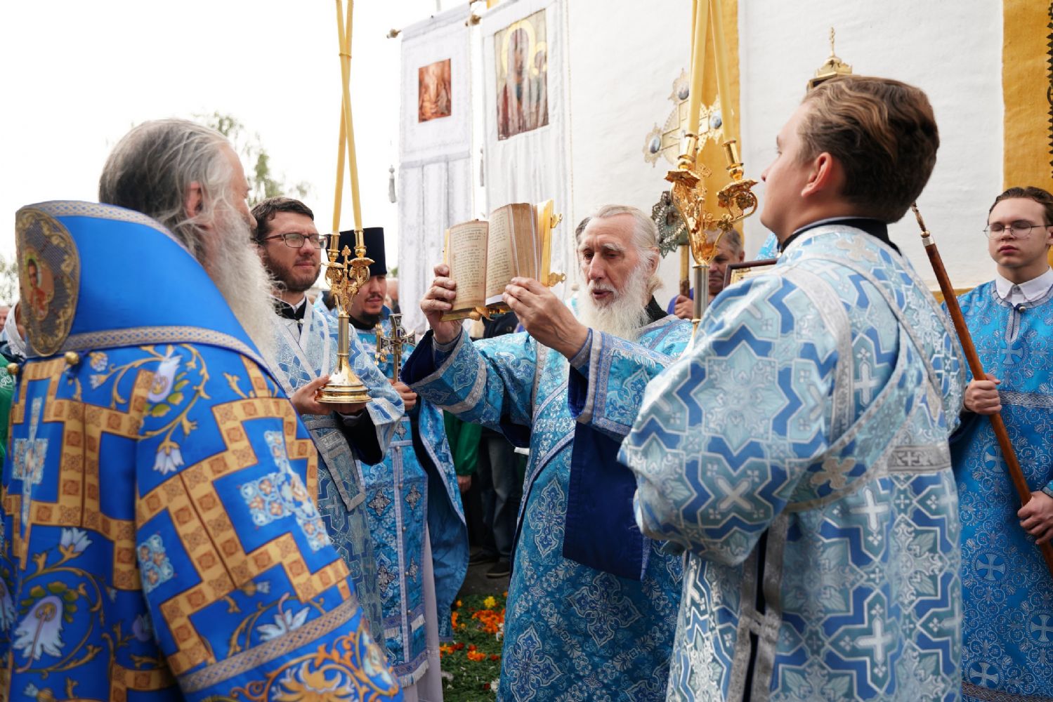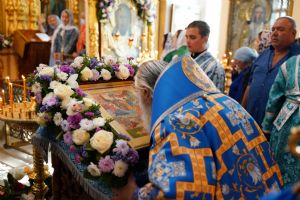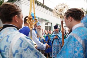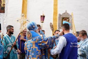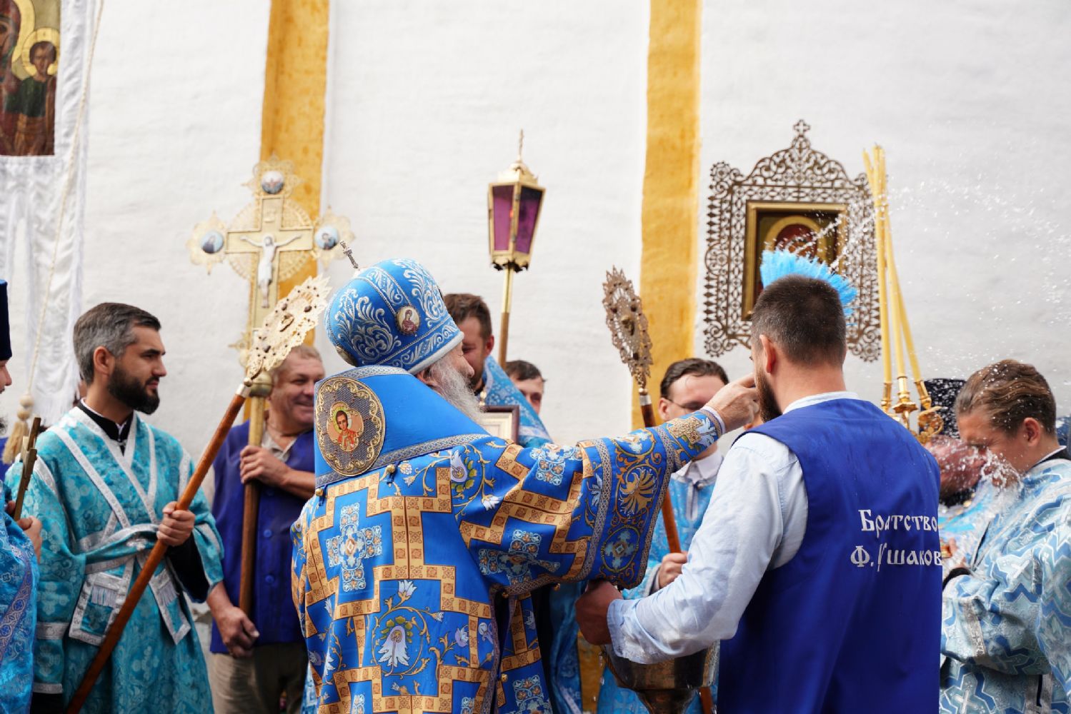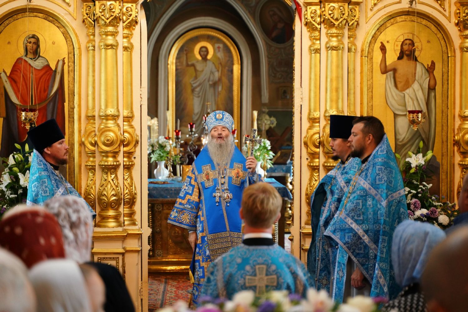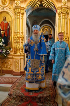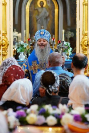 После Литургии, по традиции престольных праздников, вокруг храма прошел крестный ход со чтением Евангелия и кроплением святой водой. По возвращении в храм верующие вознесли молитву Пресвятой Богородице, пропели Ей величание. Затем митрополит Иоанн обратился к собравшимся с проповедью.