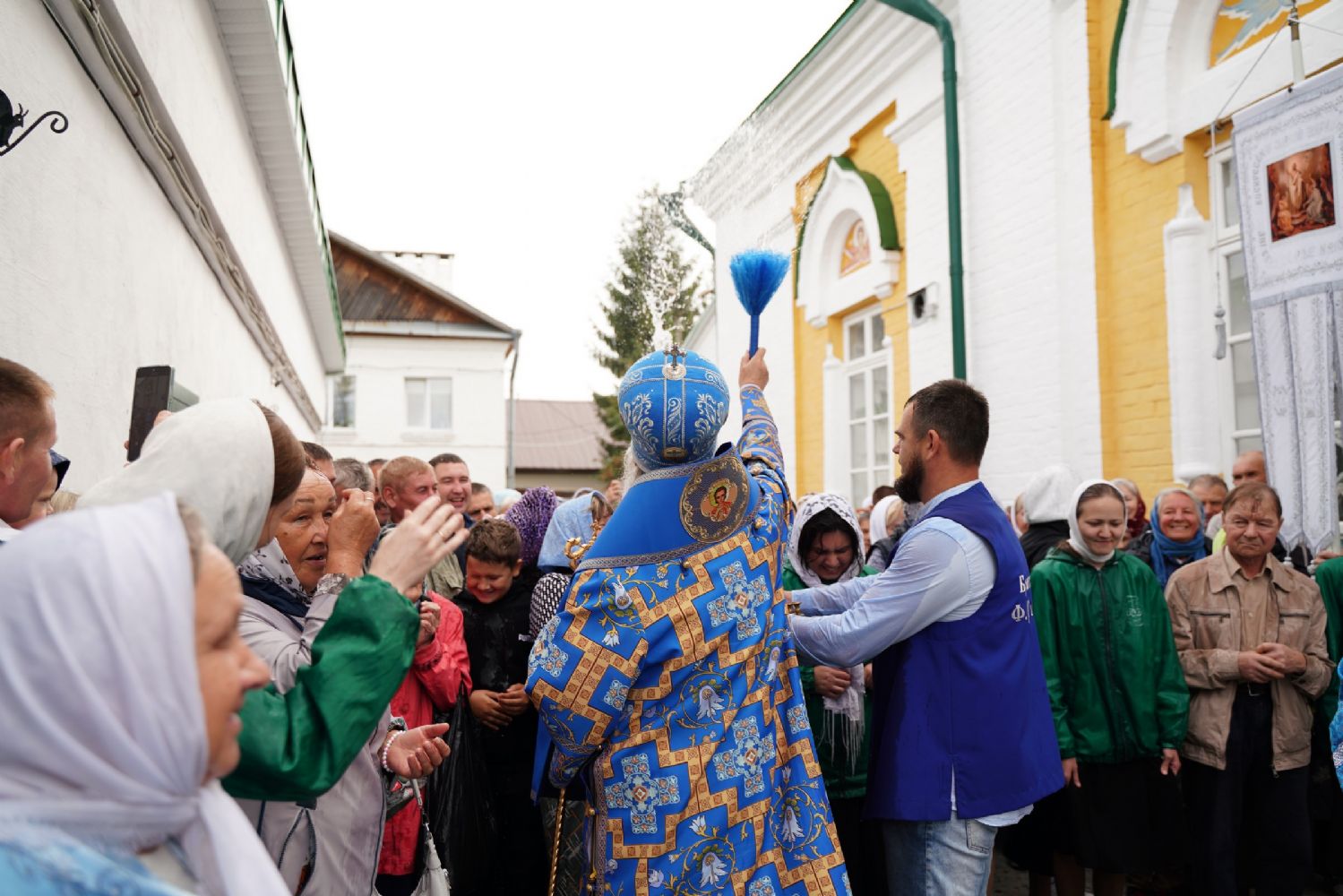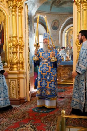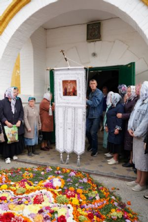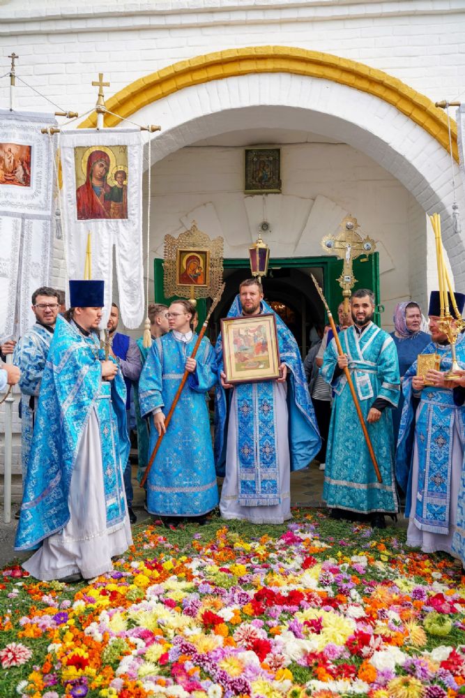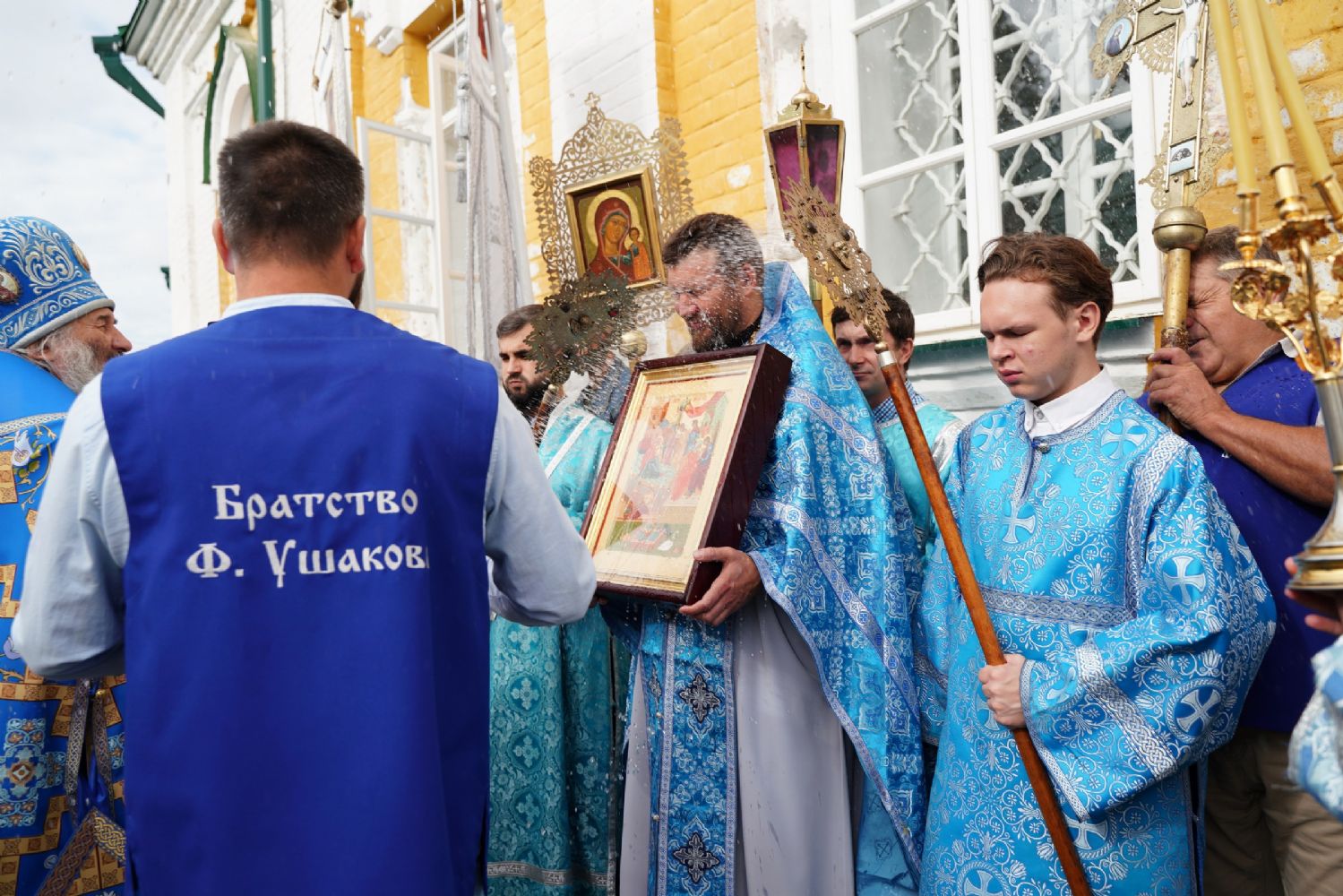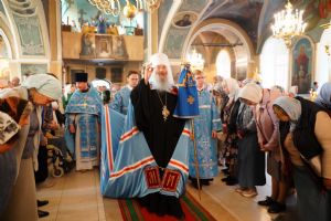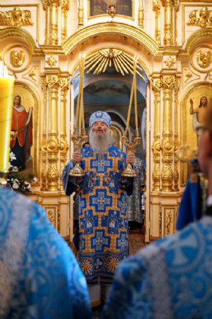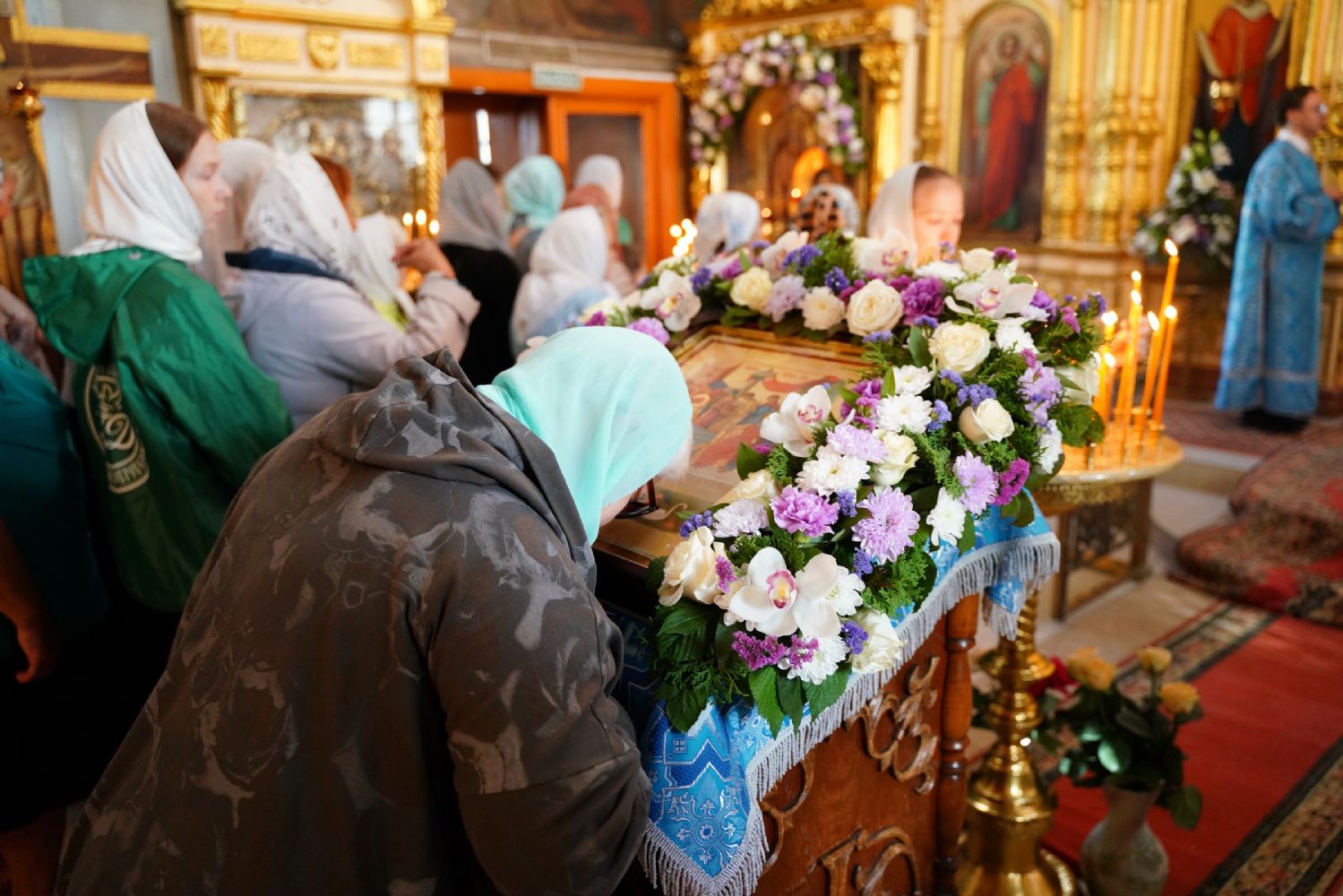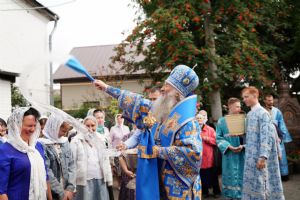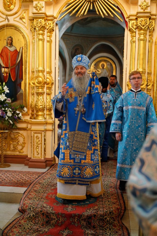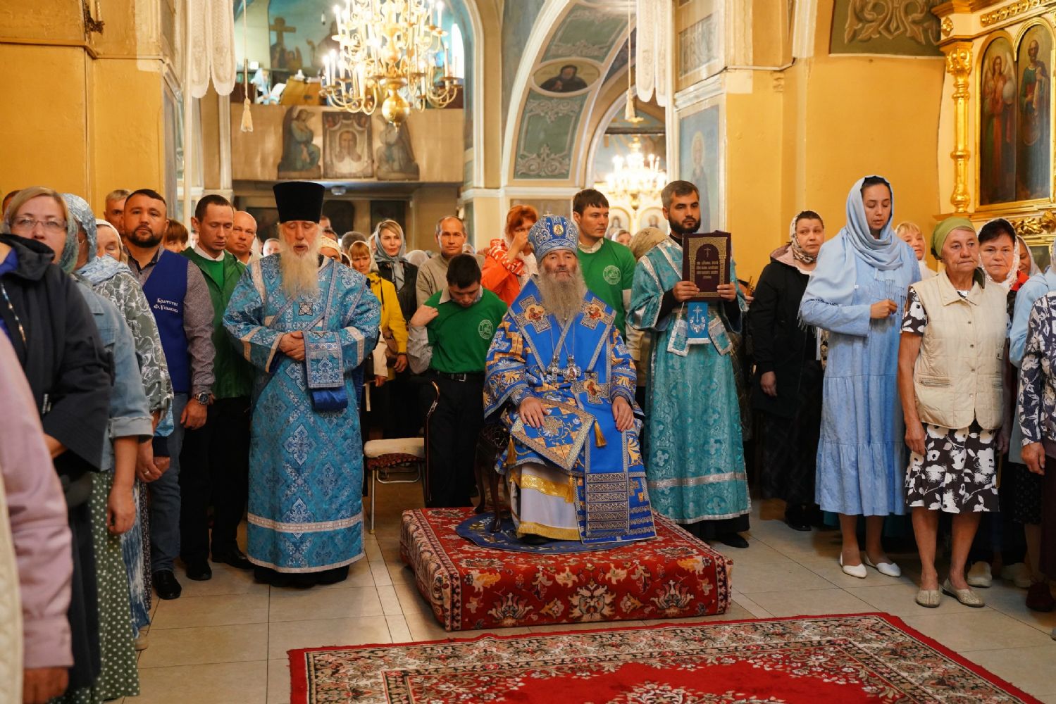 После Литургии, по традиции престольных праздников, вокруг храма прошел крестный ход со чтением Евангелия и кроплением святой водой. По возвращении в храм верующие вознесли молитву Пресвятой Богородице, пропели Ей величание. Затем митрополит Иоанн обратился к собравшимся с проповедью.