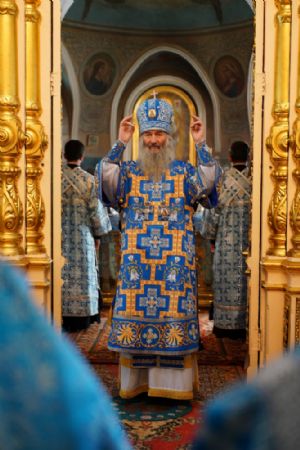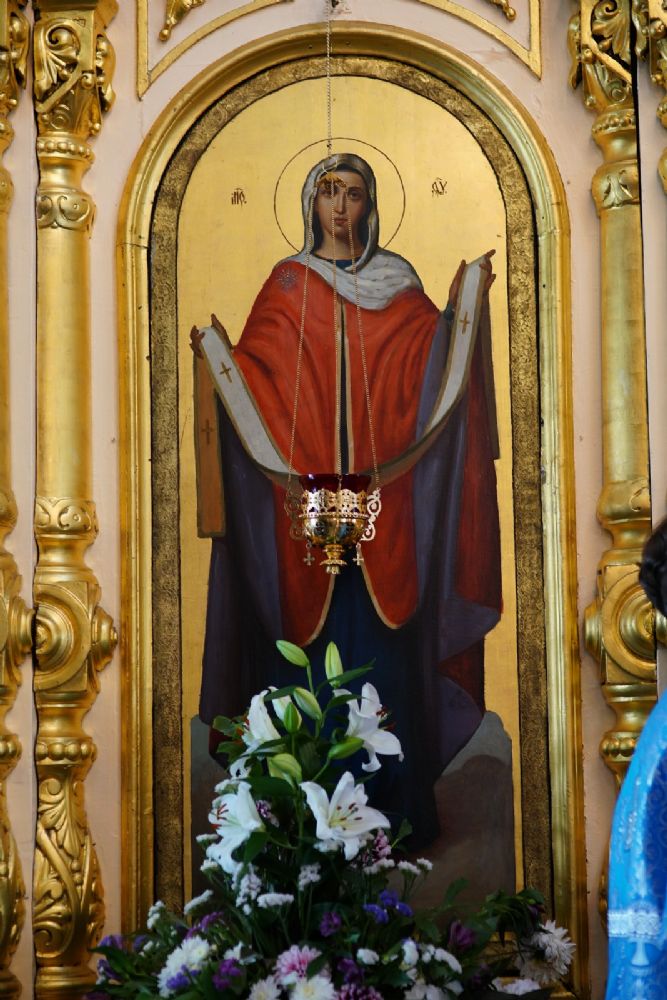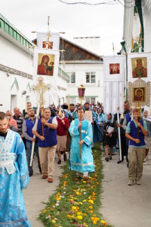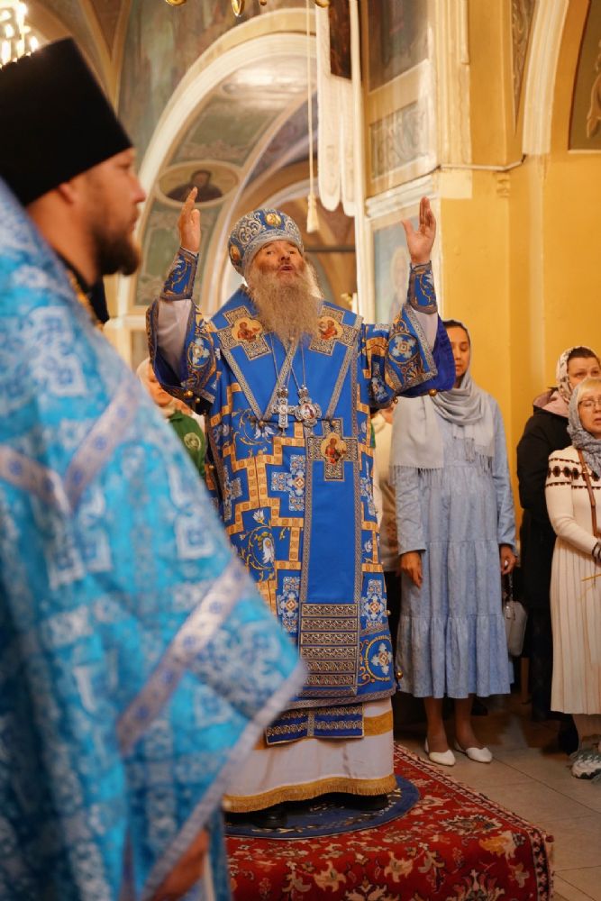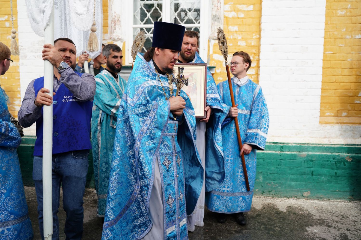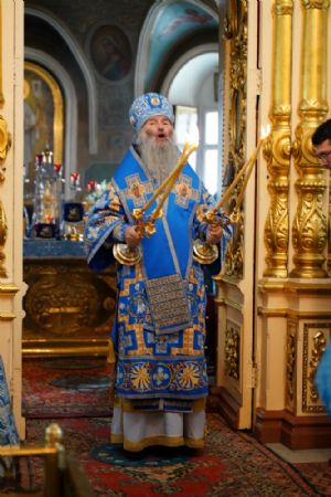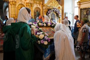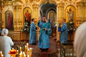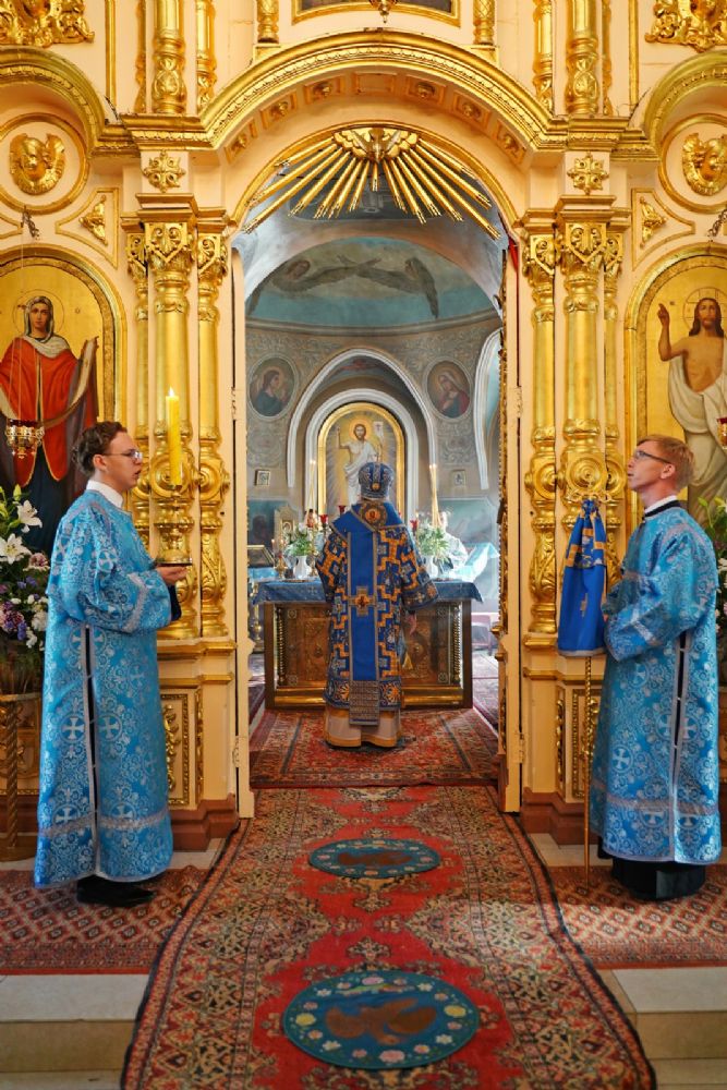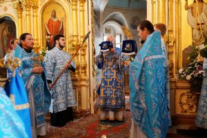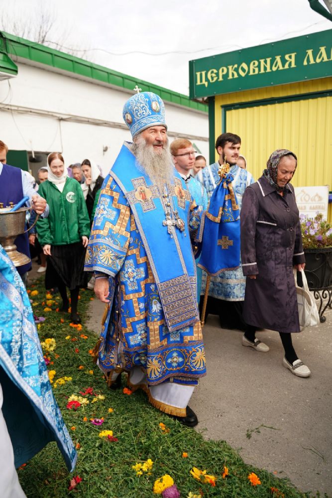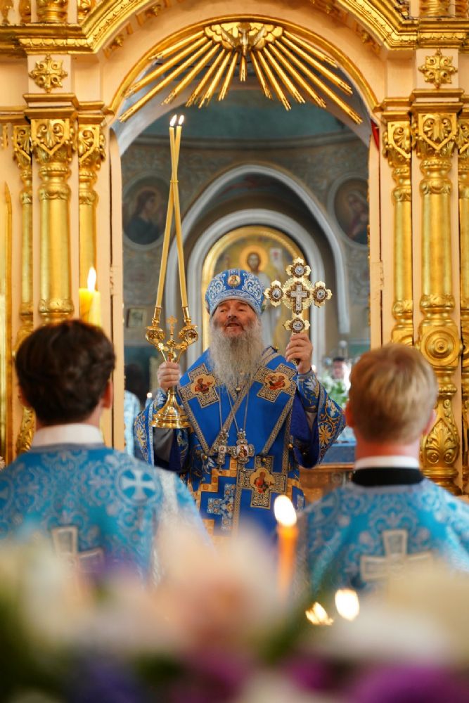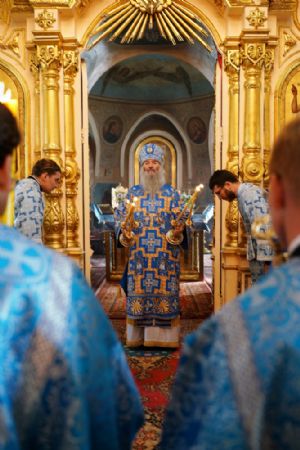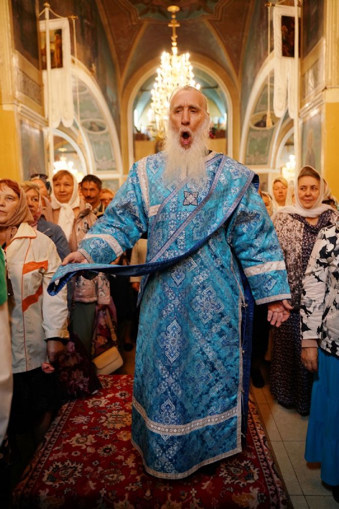 После Литургии, по традиции престольных праздников, вокруг храма прошел крестный ход со чтением Евангелия и кроплением святой водой. По возвращении в храм верующие вознесли молитву Пресвятой Богородице, пропели Ей величание. Затем митрополит Иоанн обратился к собравшимся с проповедью.
