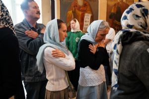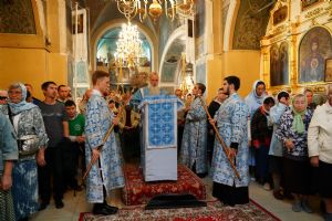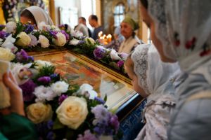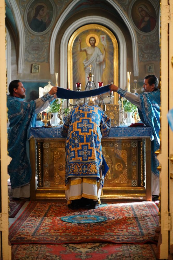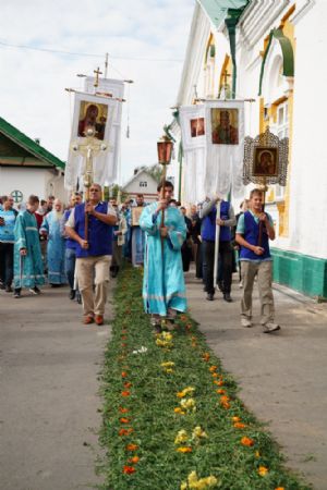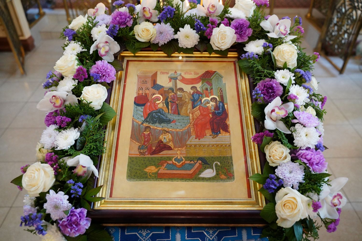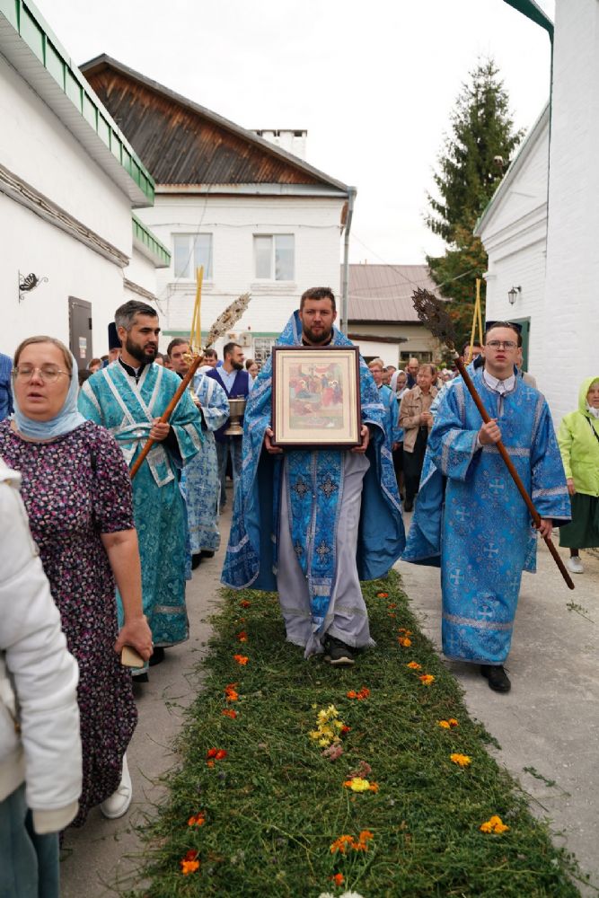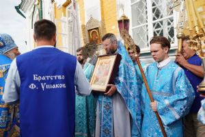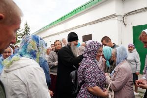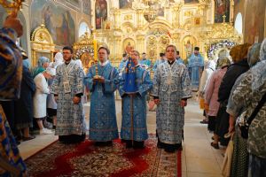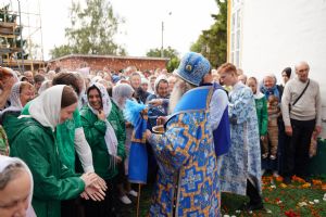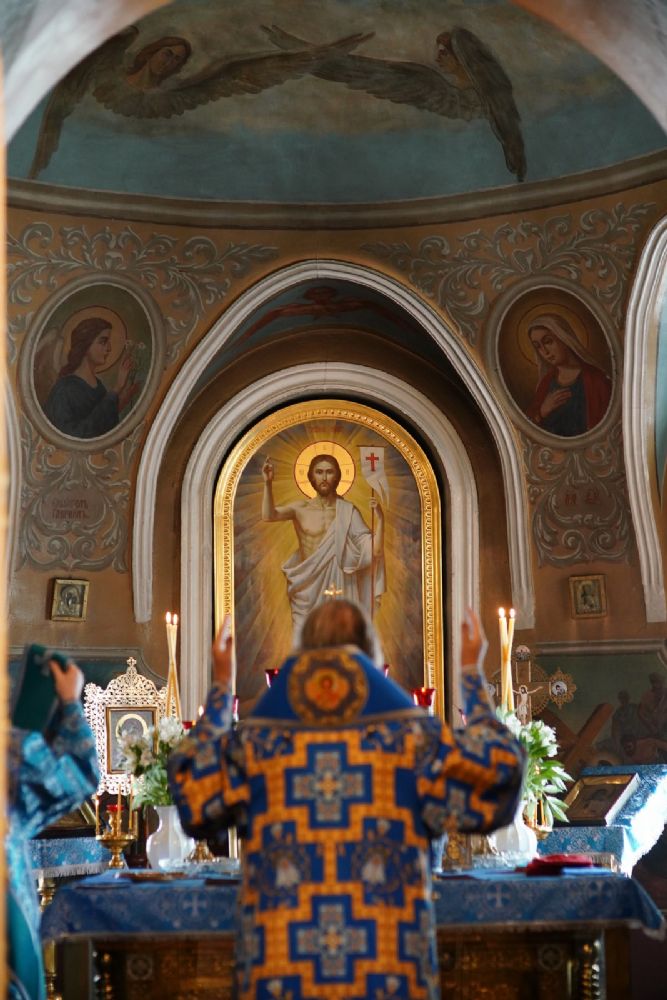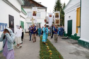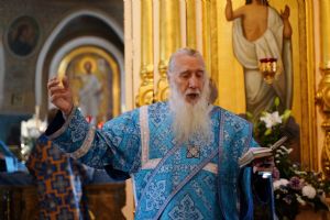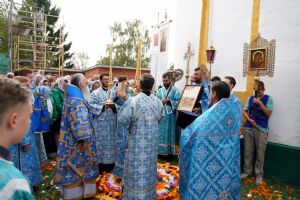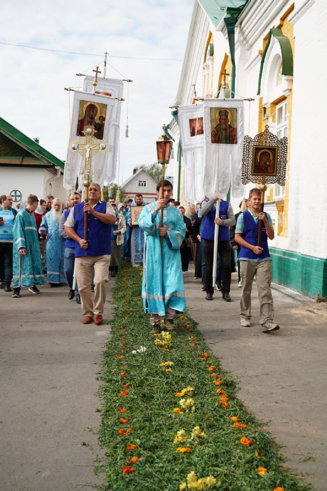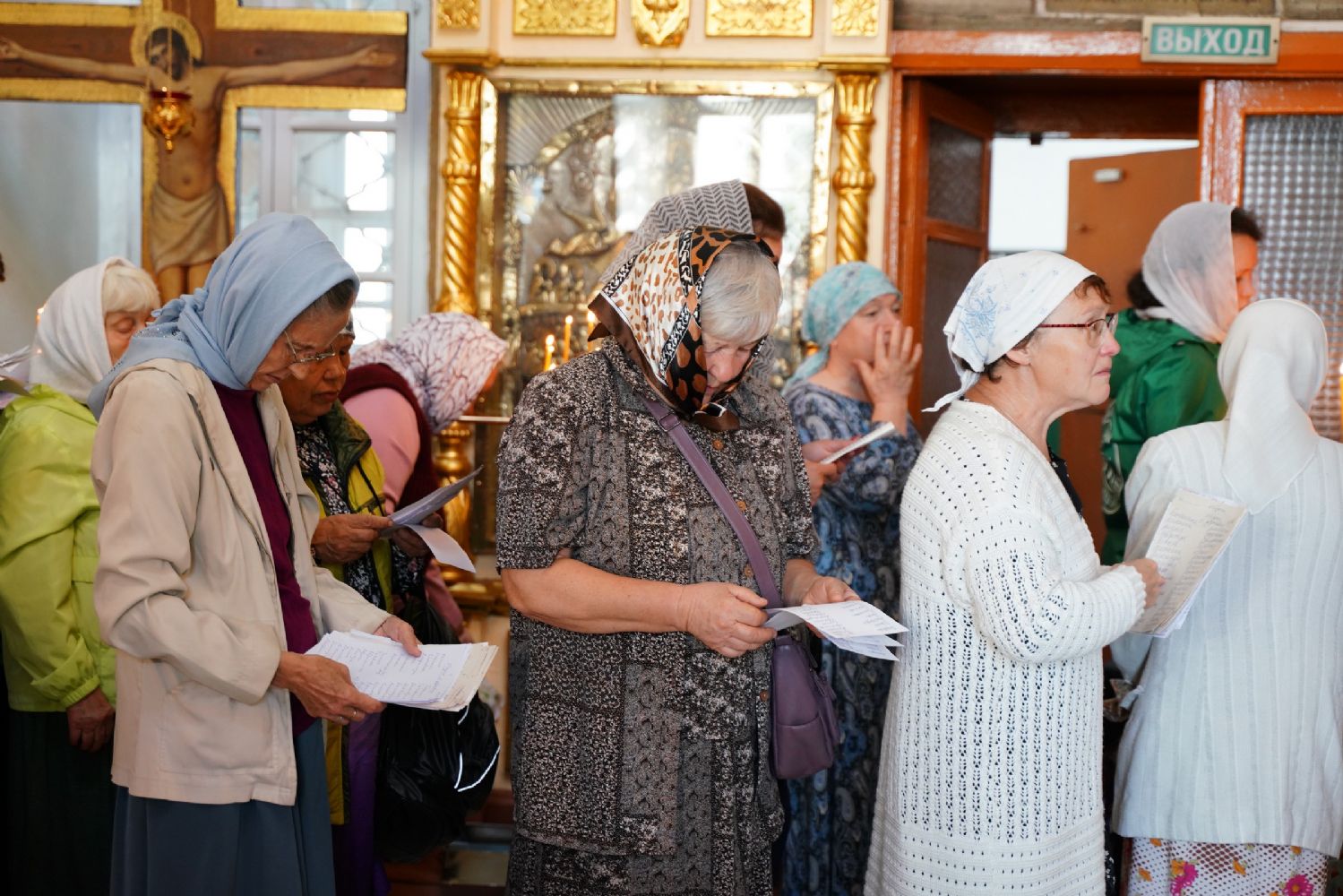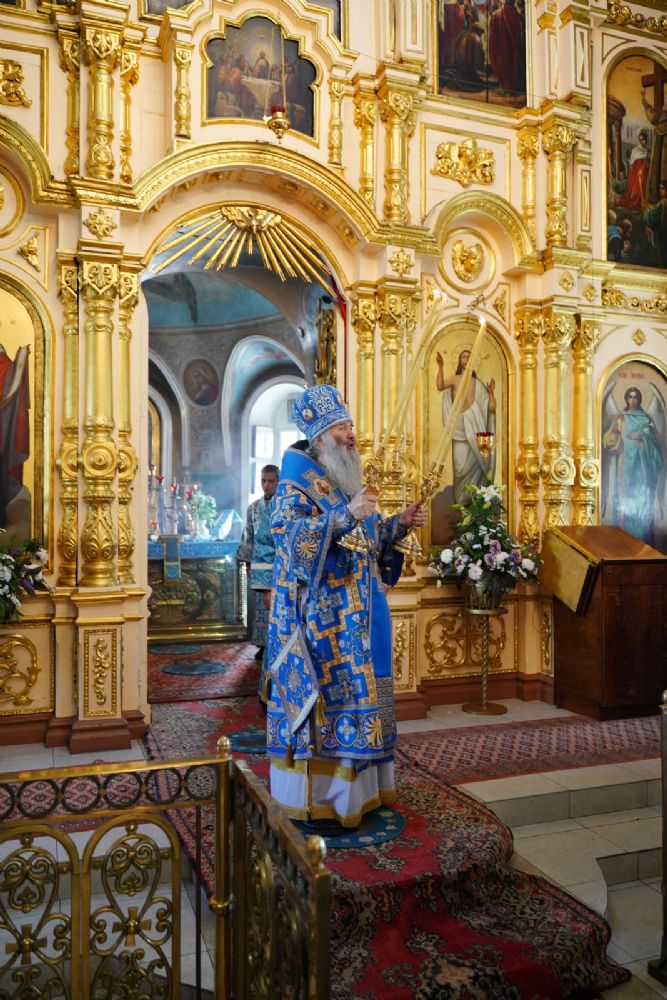 После Литургии, по традиции престольных праздников, вокруг храма прошел крестный ход со чтением Евангелия и кроплением святой водой. По возвращении в храм верующие вознесли молитву Пресвятой Богородице, пропели Ей величание. Затем митрополит Иоанн обратился к собравшимся с проповедью.