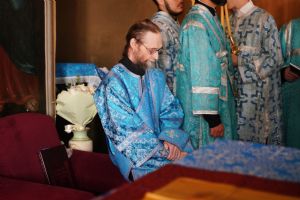 В завершение митрополит Иоанн поздравил диакона Александра Жирнова со знаменательной датой – 30-летием диаконской хиротонии.