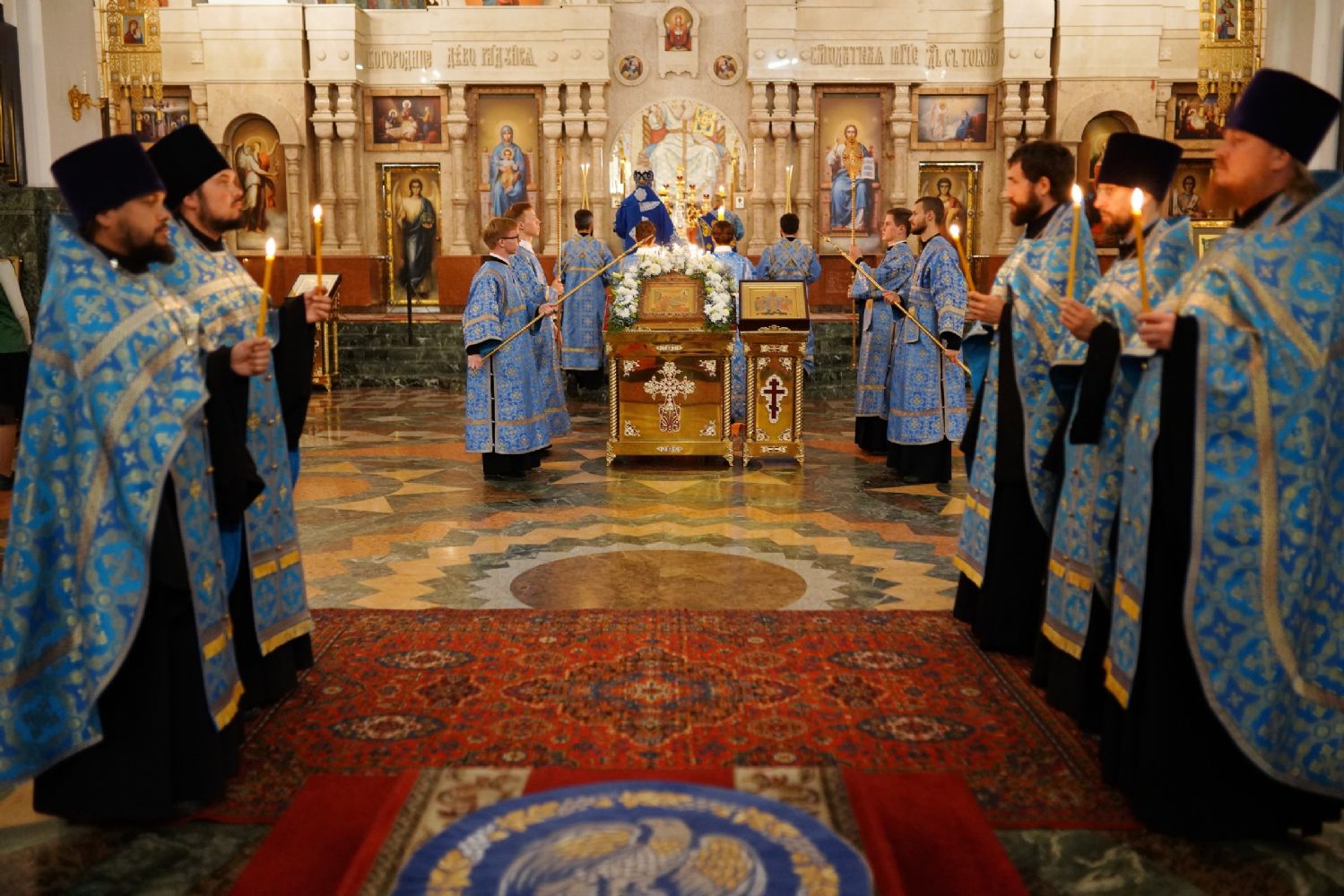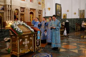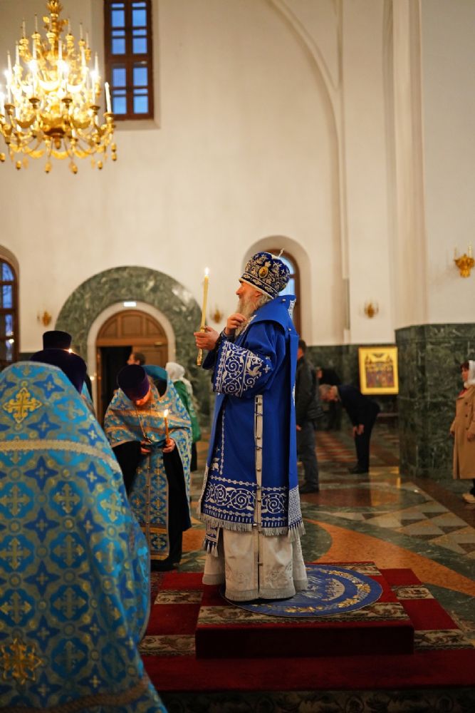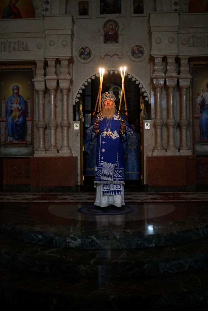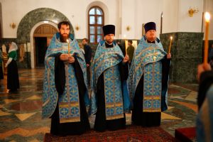 Вечером 21 сентября, в канун Недели 13-й по Пятидесятнице, попразднство Рождества Пресвятой Богородицы, митрополит Йошкар-Олинский и Марийский Иоанн возглавил всенощное бдение в Благовещенском кафедральном соборе г. Йошкар-Олы.