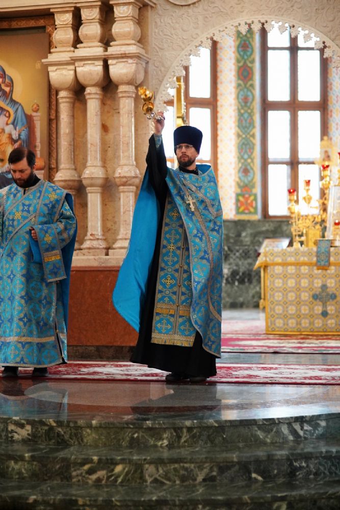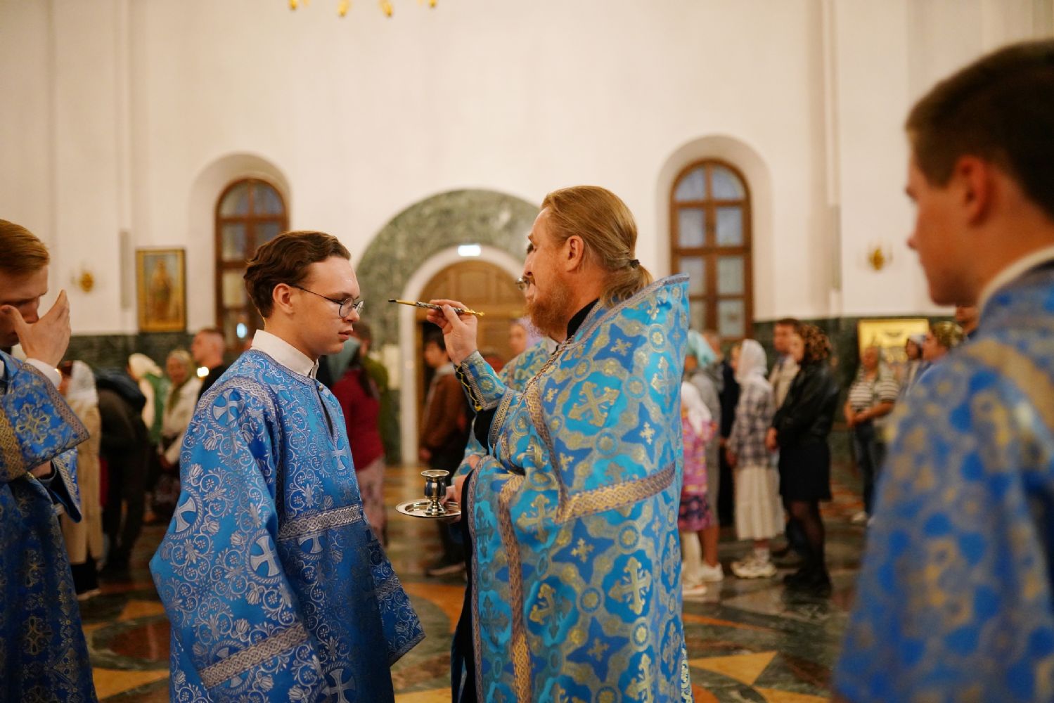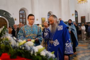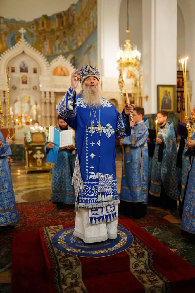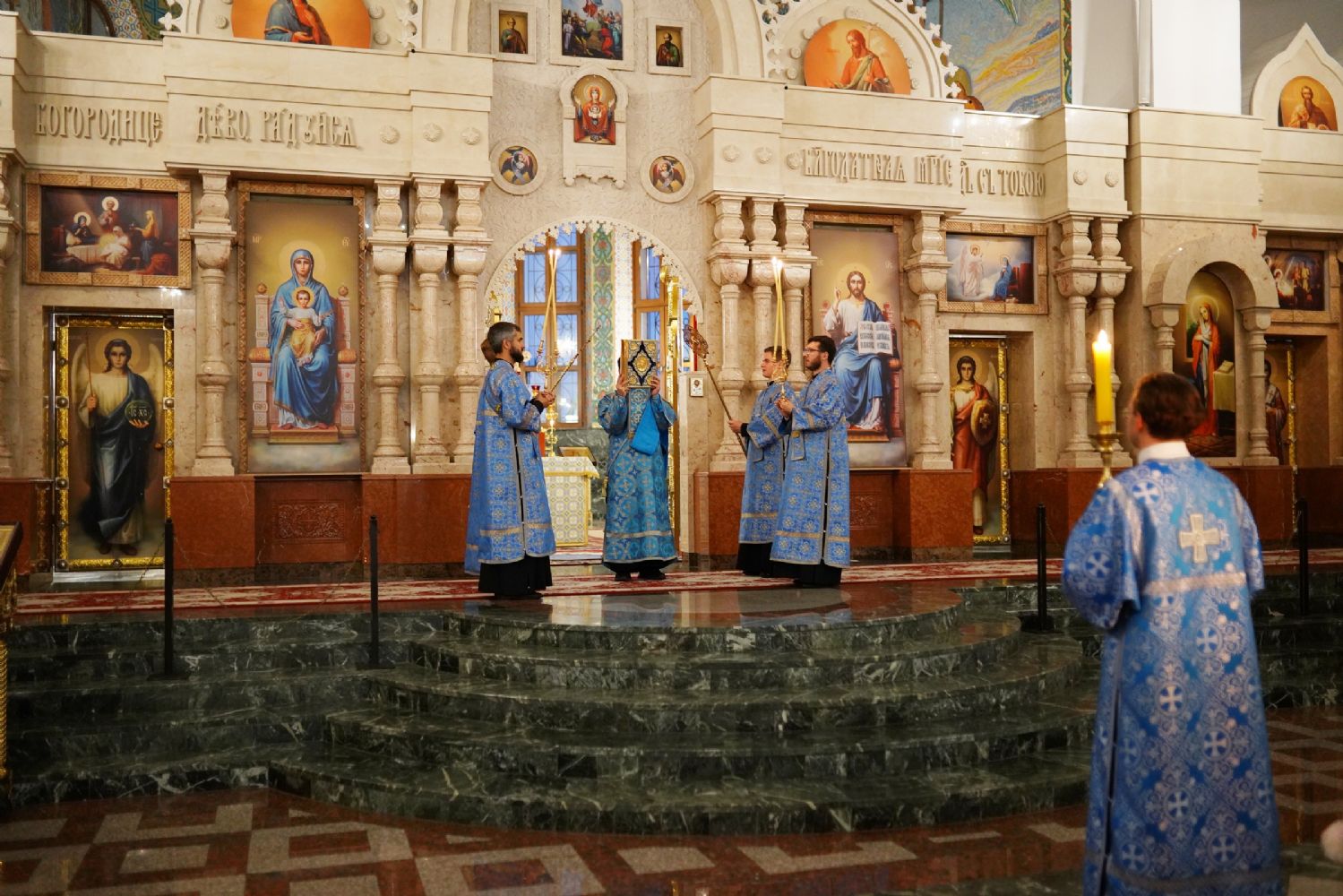 Архипастырю сослужили ключарь кафедрального собора протоиерей Сергий Поглазов, клирики собора иереи Никифор Захаров, Евгений Самойлов, Александр Староверов и Иоанн Милютин, а также протодиакон Михаил Козловский и диакон Андрей Дружинин. Пел детско-юношеский хор «Благовест» под управлением регента Татьяны Черновой.