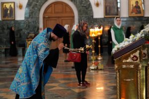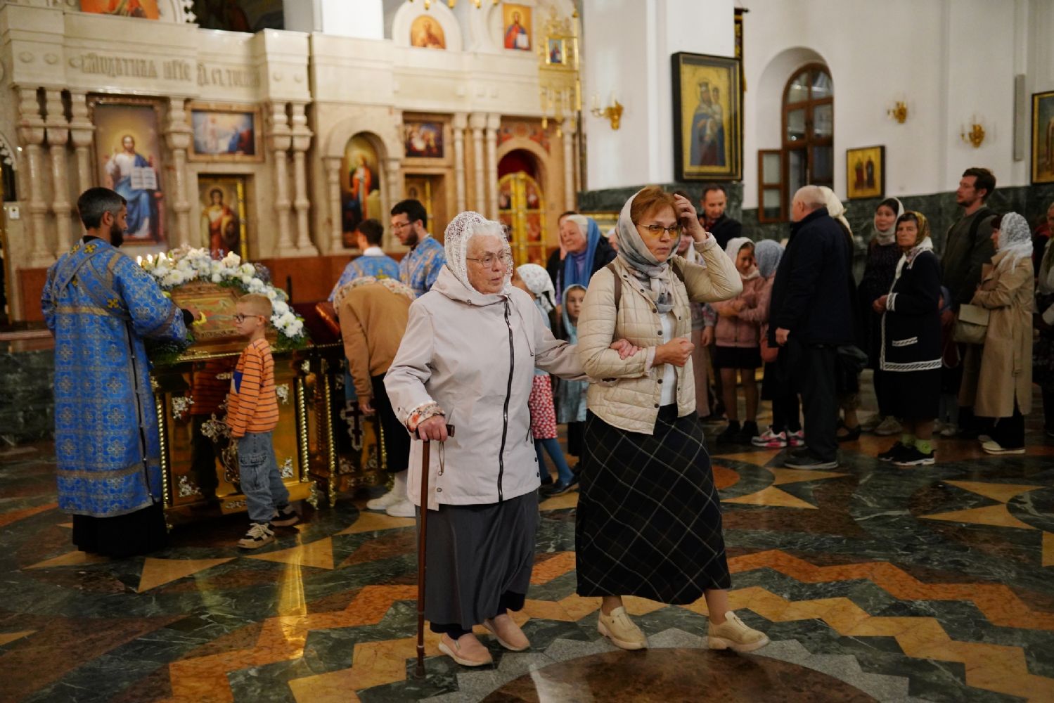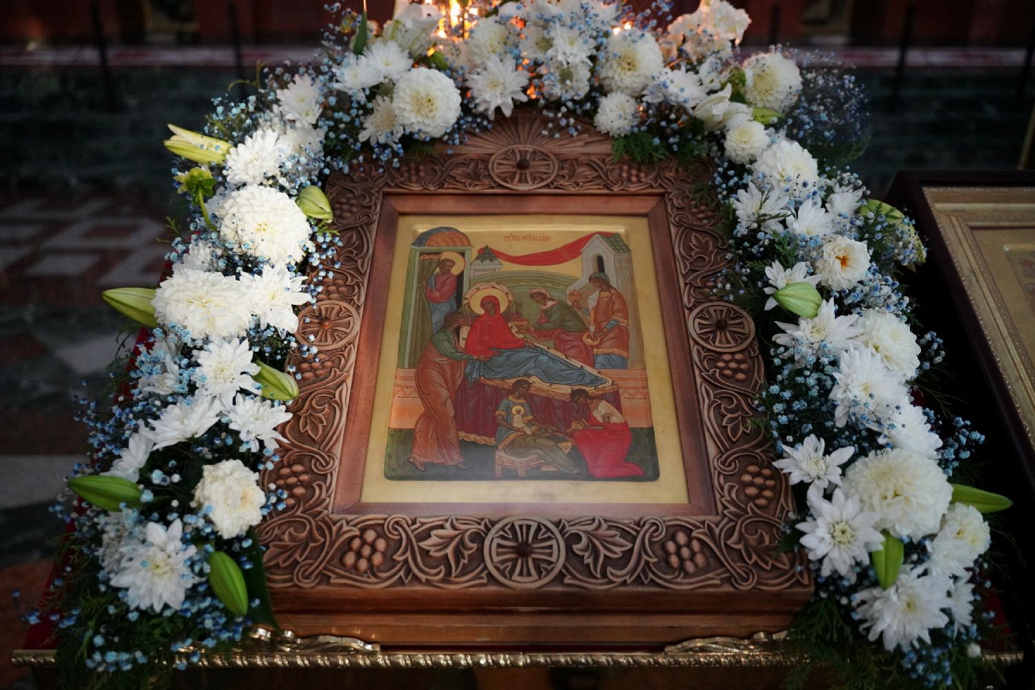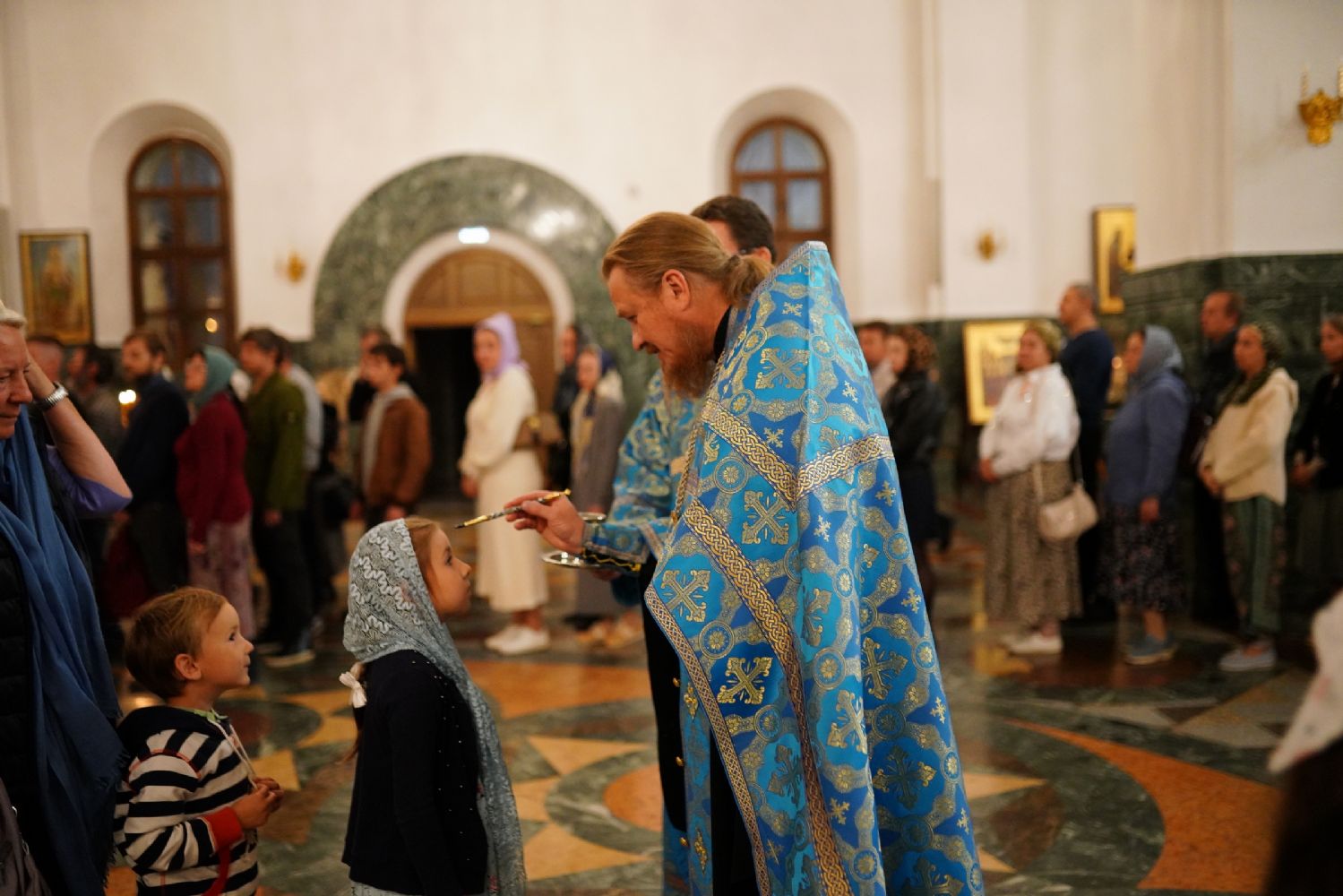 За богослужением звучали песнопения, прославляющие Пресвятую Владычицу нашу Богородицу и Приснодеву Марию и ее праведных родителей Иоакима и Анну.