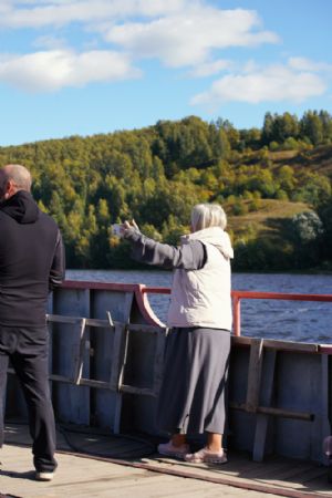 23 сентября телевизионщики вместе с куратором съемок – директором Паломнической службы «Елеон» чтецом Григорием Михеевым и секретарем Йошкар-Олинского епархиального управления иереем Димитрием Дьяковым приехали в село Сумки, где посетили храм Рождества Пресвятой Богородицы и записали для телепередачи интервью с духовником Йошкар-Олинской епархии архимандритом Иоанном (Барсуковым). И на пароме через Волгу отправились в поселок Юрино, где в сопровождении настоятеля храма Архистратига Божия Михаила протоиерея Николая Барсукова осмотрели этот нарядный храм, а также с экскурсией посетили жемчужину Марийского края – замок Шереметева.