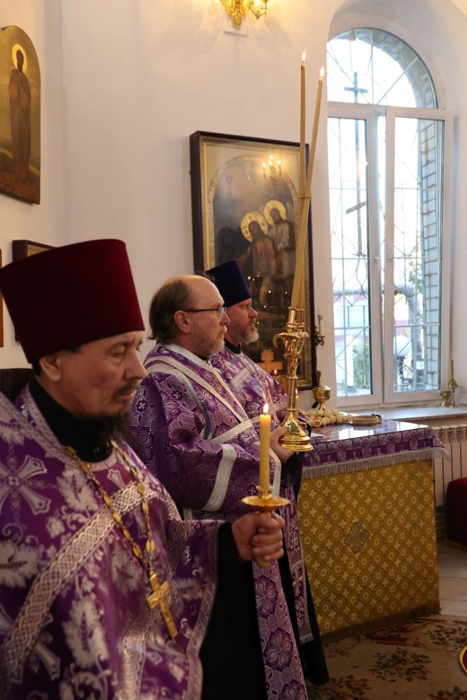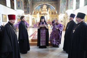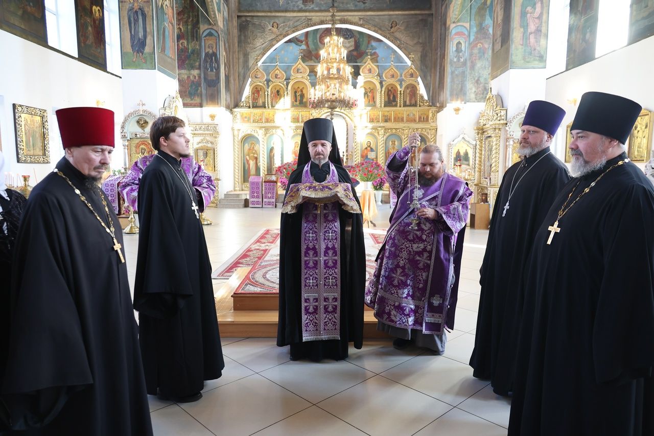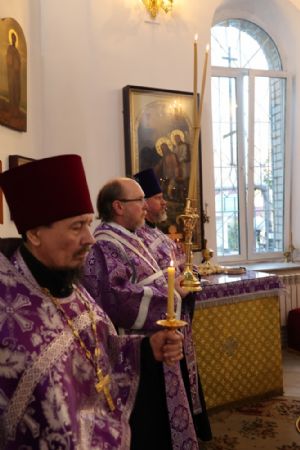 Архипастырю сослужили клирики собора, песнопения исполняли певчие под управлением Любови Михеевой и Елены Васильевой.