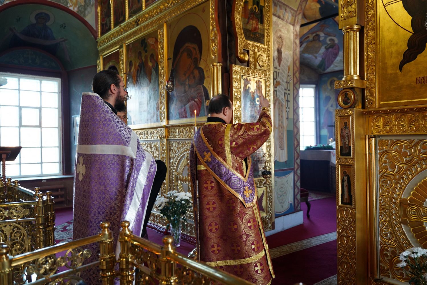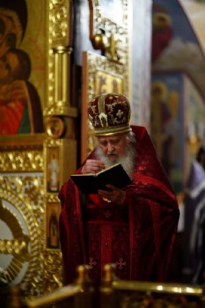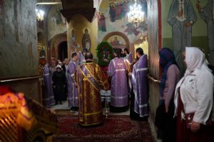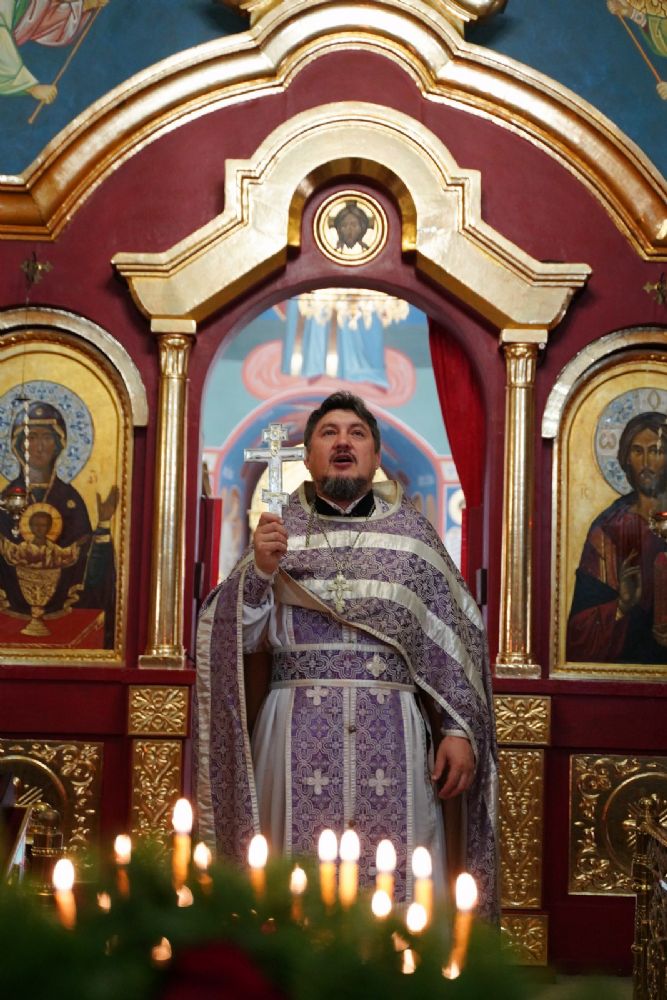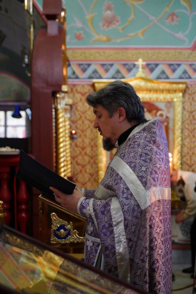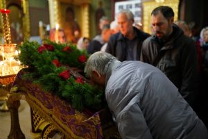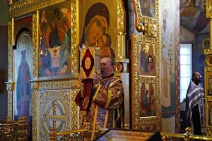Всенощное бдение накануне праздника возглавил настоятель собора протоиерей Евгений Кутырев в сослужении духовенства собора. Песнопения исполнял хор под управлением Ангелины Бабиной.