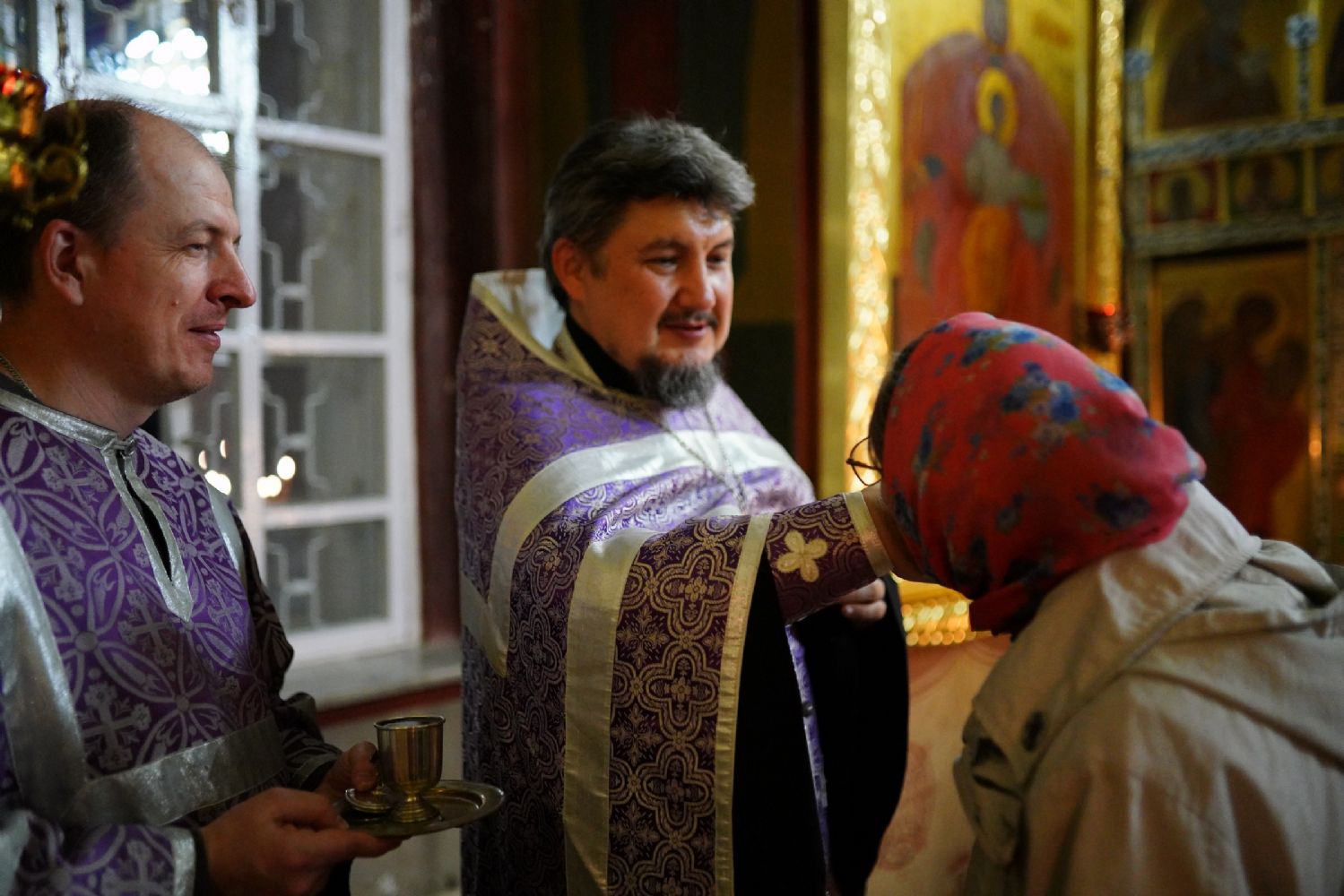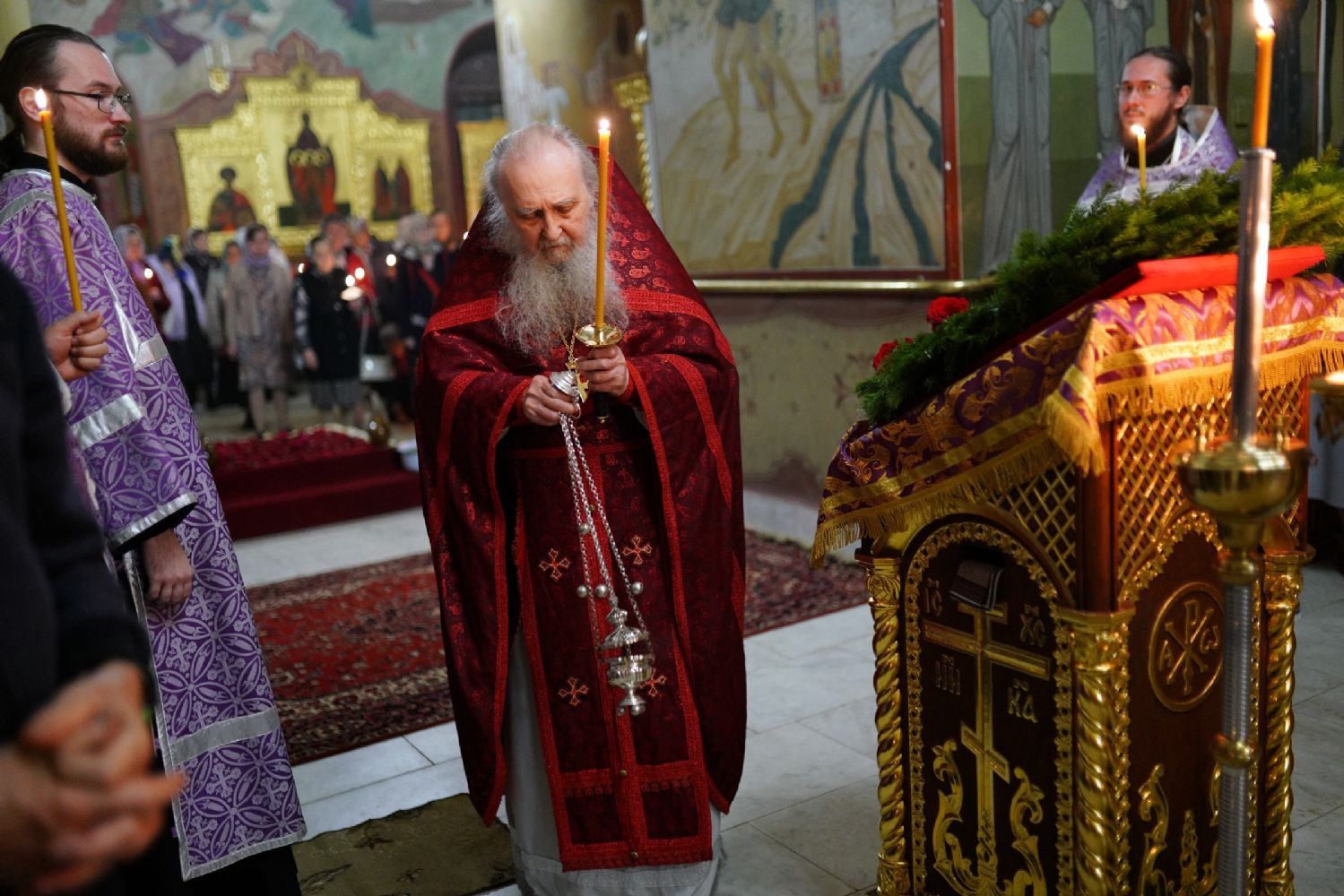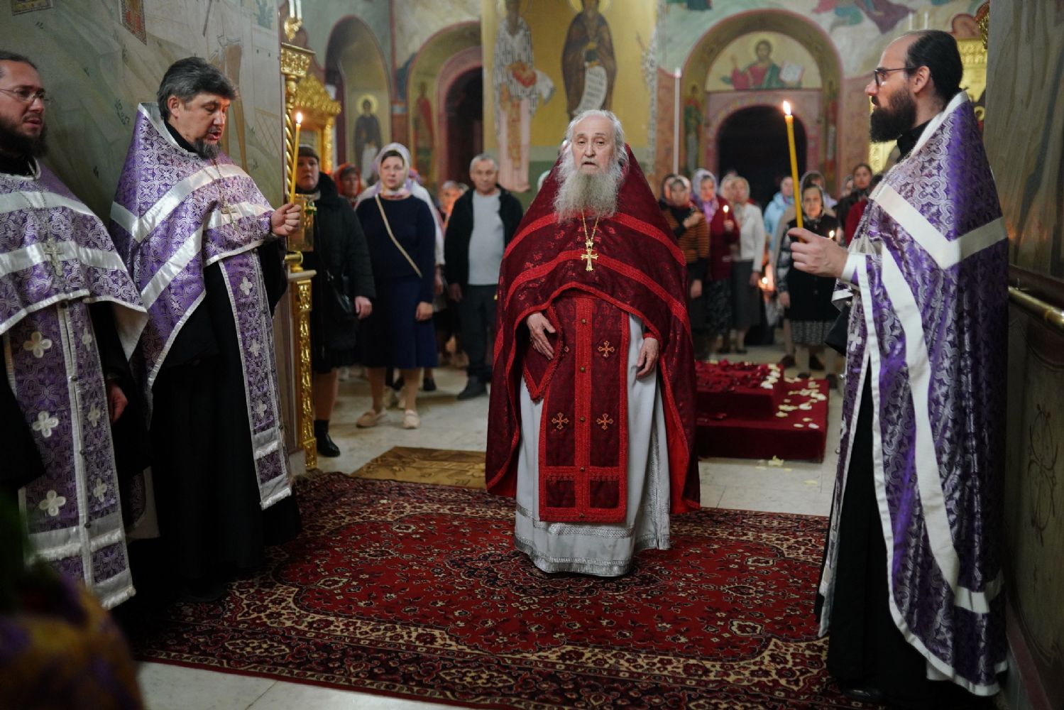 Всенощное бдение накануне праздника возглавил настоятель собора протоиерей Евгений Кутырев в сослужении духовенства собора. Песнопения исполнял хор под управлением Ангелины Бабиной.