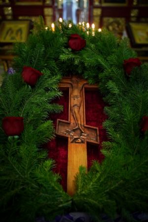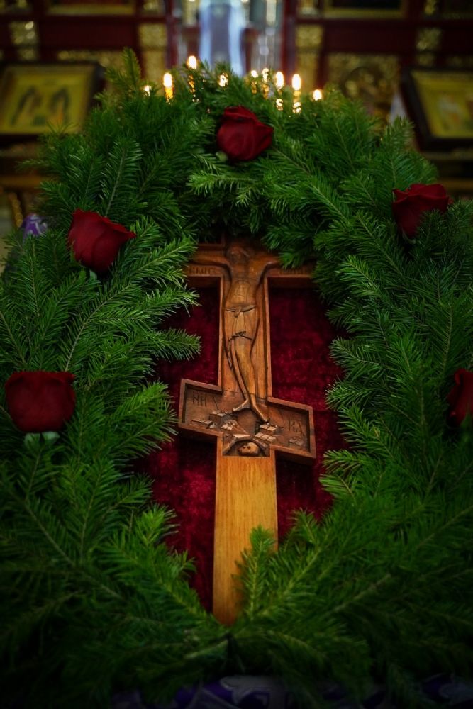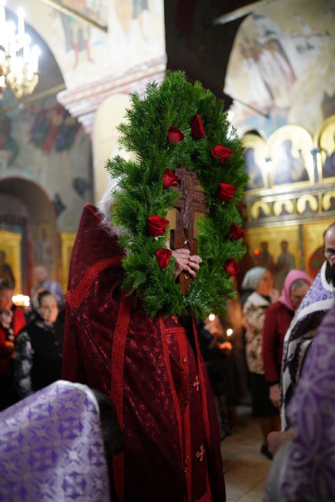 Особенностью богослужения этого дня является совершение полиелея в алтаре перед крестом, лежащем на престоле. На утрени пелся канон праздника, написанный преподобным Космой Маиумским, в котором раскрываются ветхозаветные прообразы спасительного Древа.