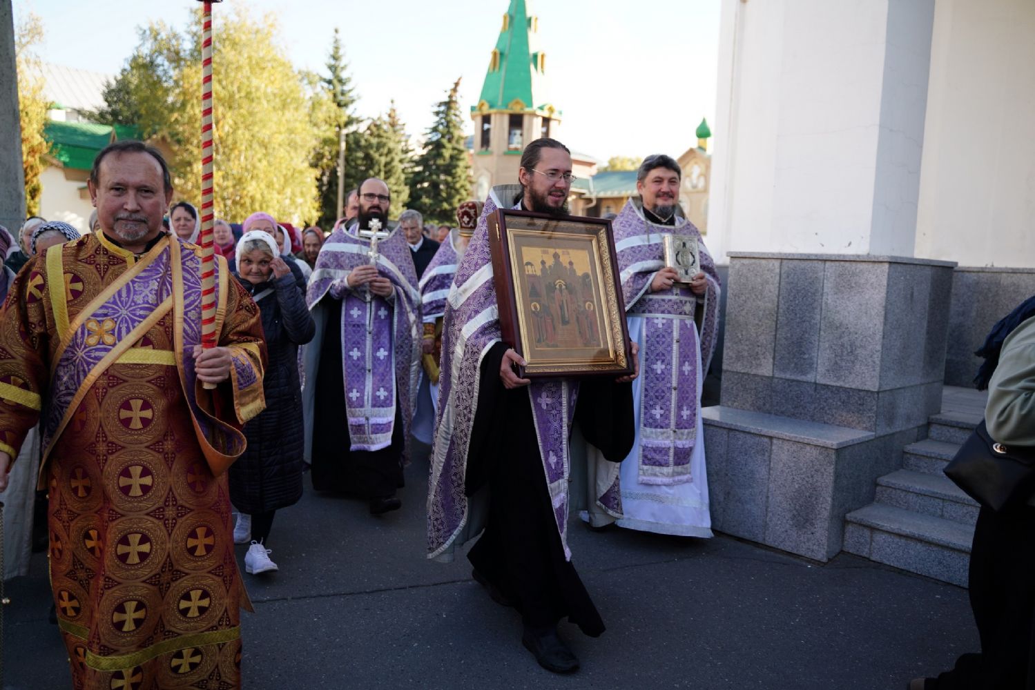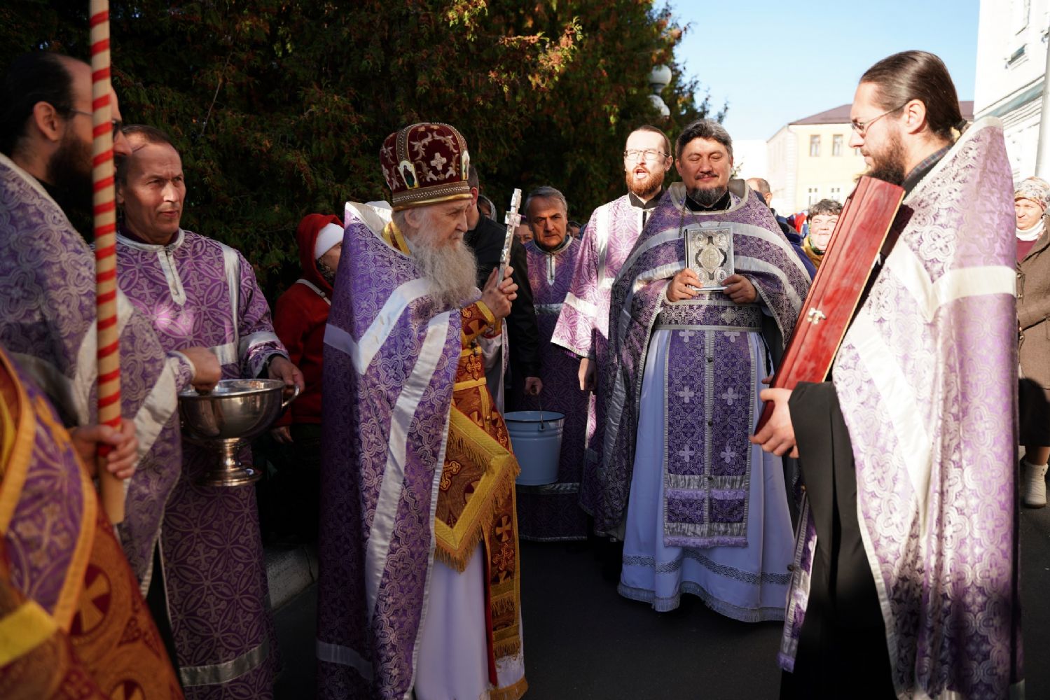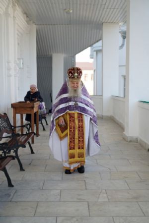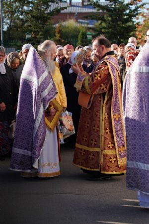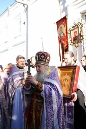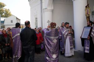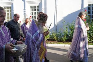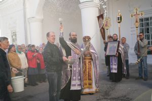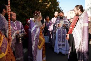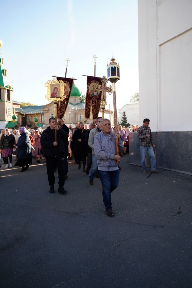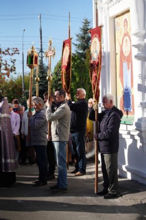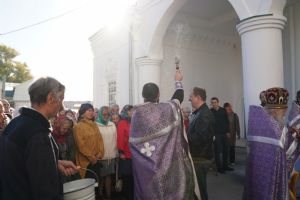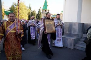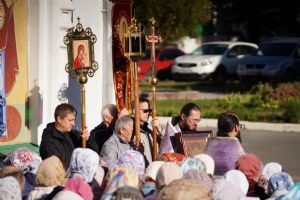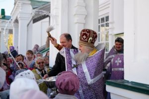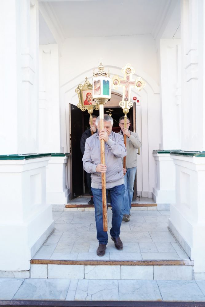 В сам день праздника в соборе было совершено две Божественных литургии – ранняя и поздняя. По окончании ранней Литургии был совершен водосвятный молебен, после чего верующие во главе с настоятелем протоиереем Евгением Кутыревым прошли крестным ходом вокруг храма.