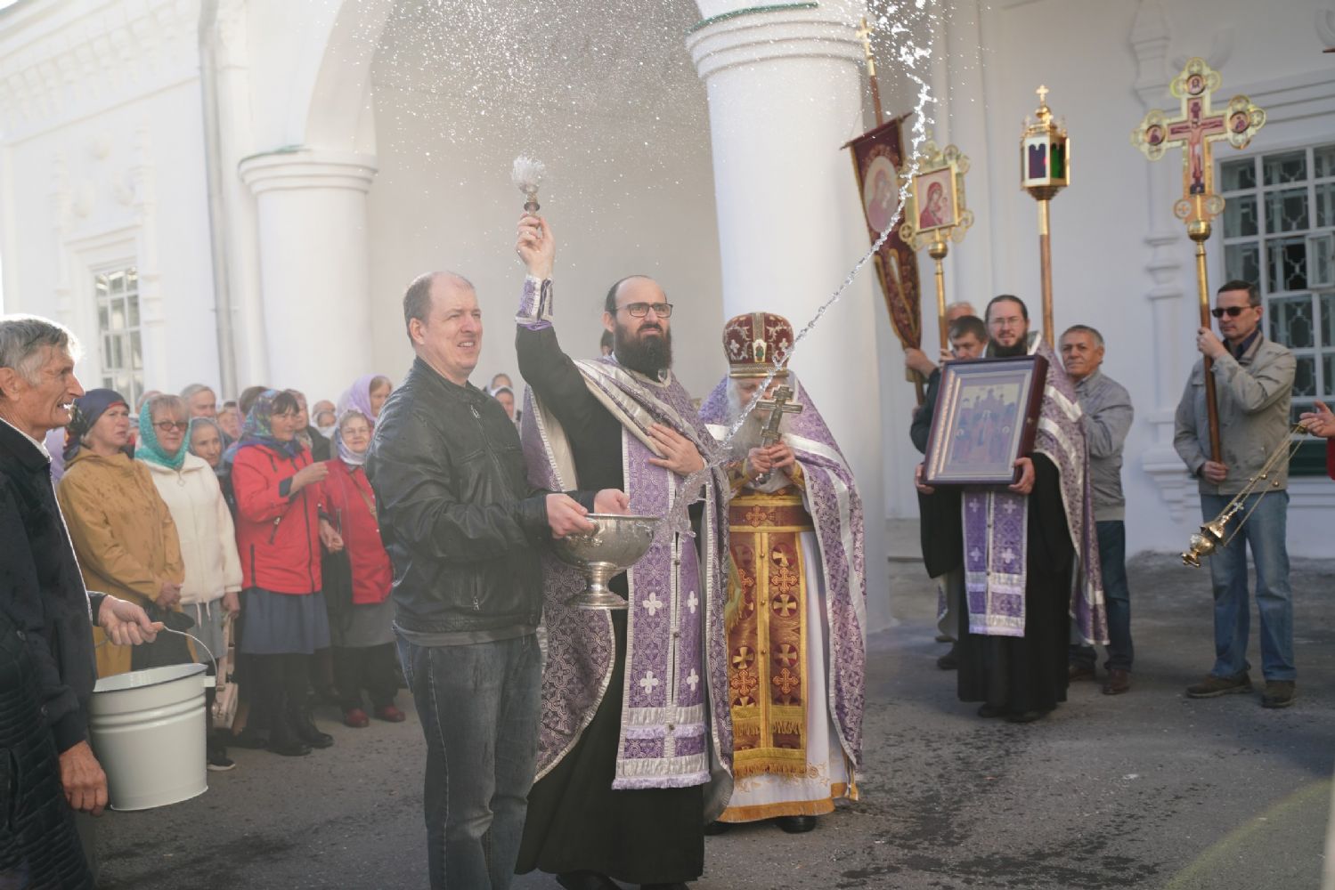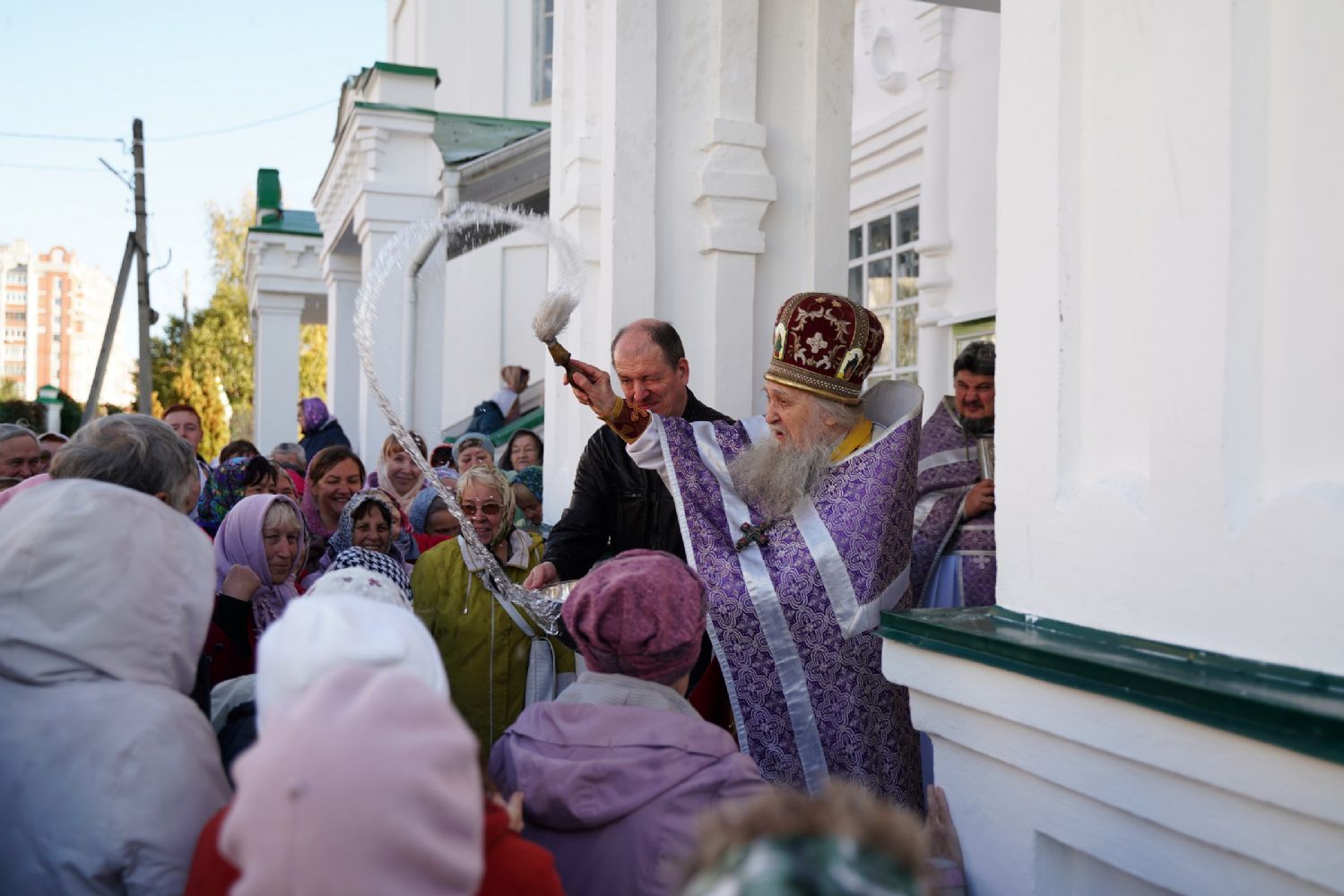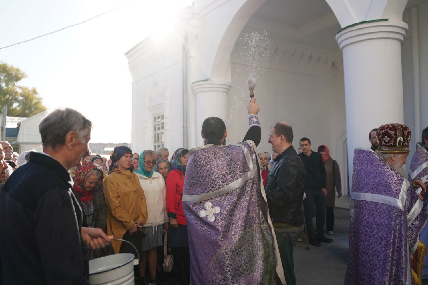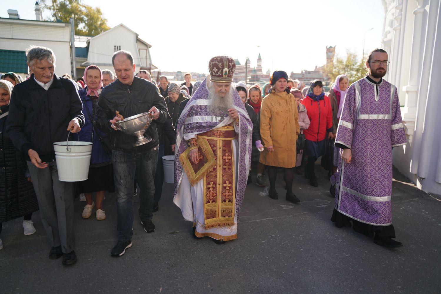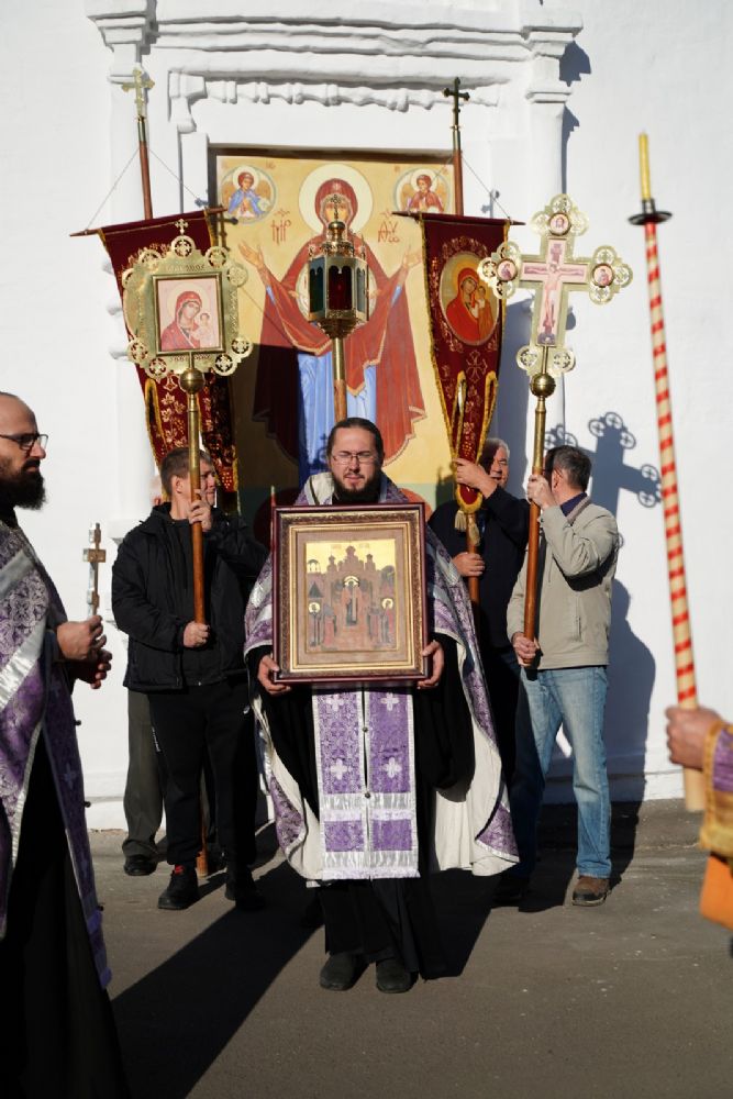 В сам день праздника в соборе было совершено две Божественных литургии – ранняя и поздняя. По окончании ранней Литургии был совершен водосвятный молебен, после чего верующие во главе с настоятелем протоиереем Евгением Кутыревым прошли крестным ходом вокруг храма.