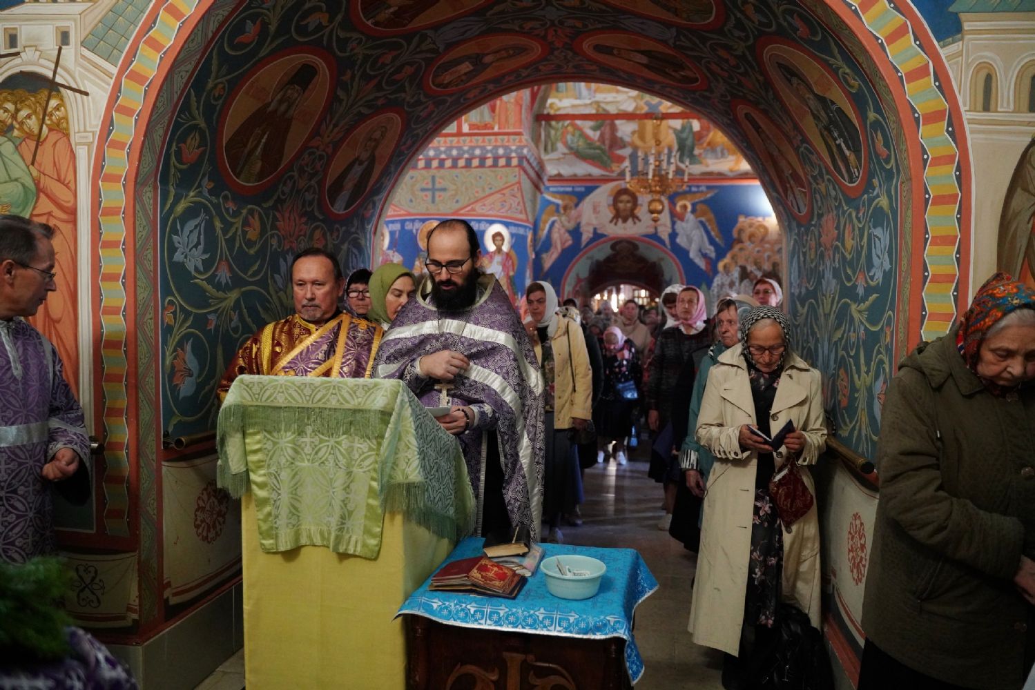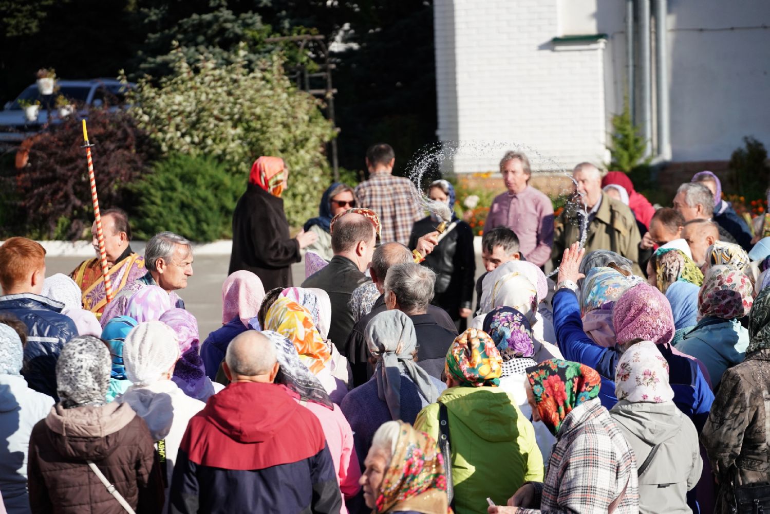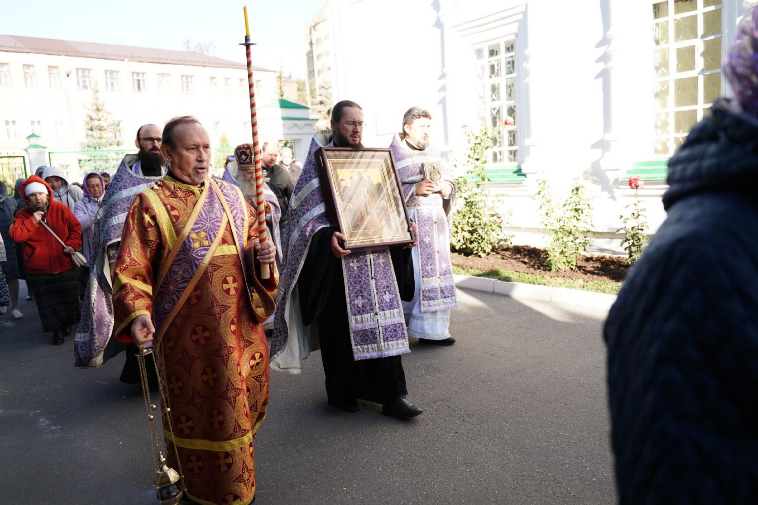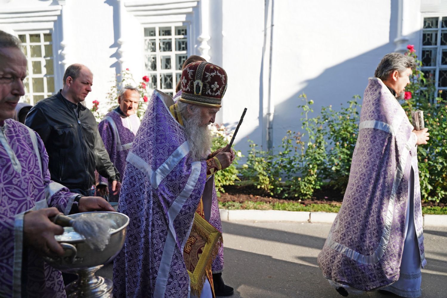 В сам день праздника в соборе было совершено две Божественных литургии – ранняя и поздняя. По окончании ранней Литургии был совершен водосвятный молебен, после чего верующие во главе с настоятелем протоиереем Евгением Кутыревым прошли крестным ходом вокруг храма.