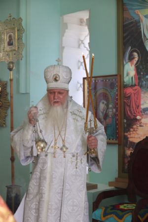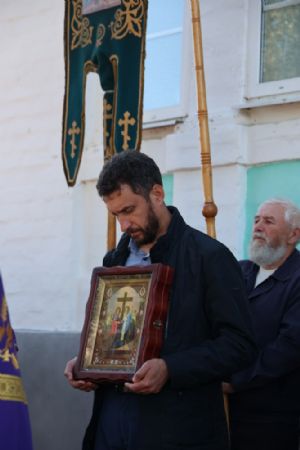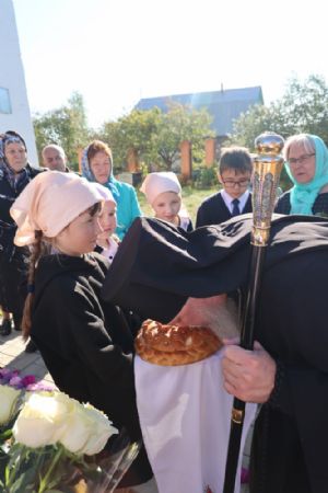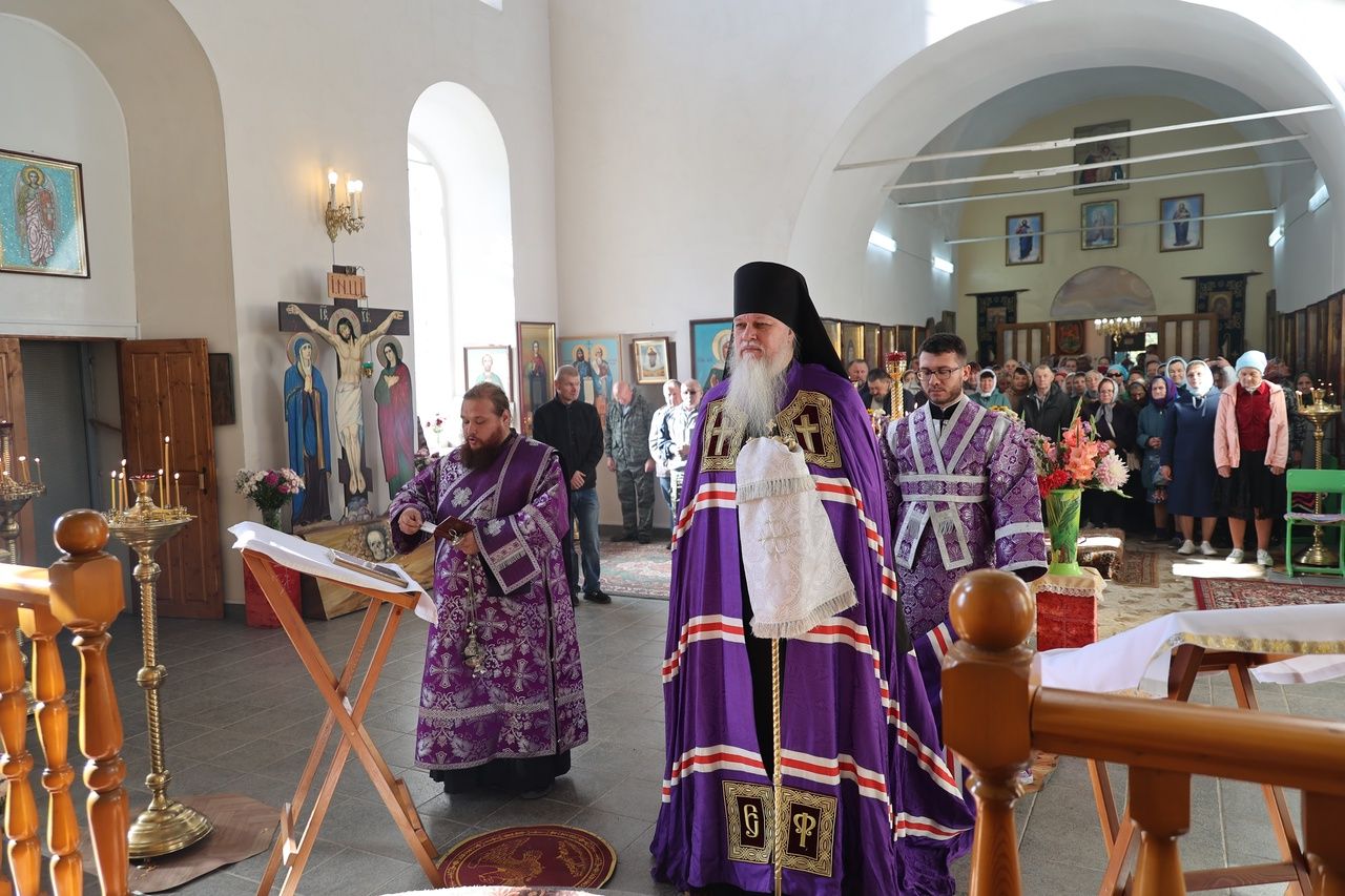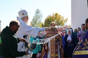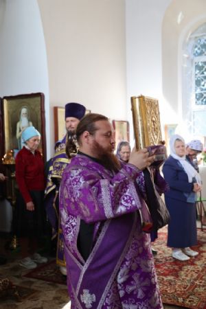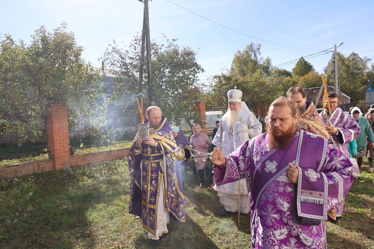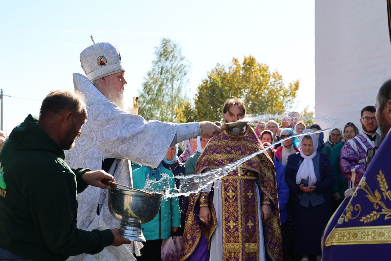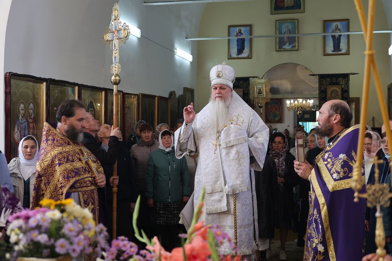 По окончании Литургии был совершен крестный ход вокруг храма. В завершение богослужения владыка Феофан поздравил прихожан храма с престольным праздником и обратился к верующим с проповедью, в которой поведал историю и значение праздника Воздвижения Креста Господня и произнес слова духовного назидания.