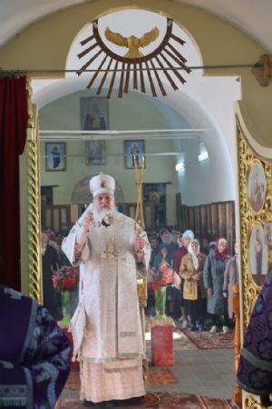 «Дорогие братья и сестры, сердечно желаю, чтобы по образу своей благочестивой жизни мы всегда исповедовали веру нашу православную, в которой есть утверждение каждому из нас и в целом нашей стране. Мы веруем, что силой Честного и Животворящего Креста Своего Господь хранит каждого из нас на земле. Мы молимся, чтобы Господь силой Креста Своего сохранил наше воинство русское, как некогда Он даровал знамение равноапостольному царю Константину Великому, когда тот увидел на небе Крест с надписью: «Сим победишь». Пусть это знамение всегда сопутствует нашей русской армии, которая в нынешнее тяжелое время стоит на страже Святой Руси. Пусть наша страна всегда духовно расцветает и по-прежнему во всем мире зовётся Святой Русью.