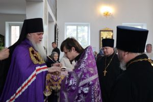 По окончании богослужения глава епархии обратился к прихожанам с проповедью, рассказав об истории обретения чудотворной иконы, именуемой «Призри на смирение», память которой Церковь празднует в этот день. Этот образ был обретен в 1426 году в Псковской области, по молитвам Божией Матери жители Пскова избавились от нашествия литовского князя Витовта.