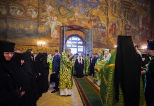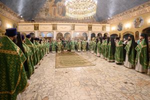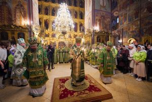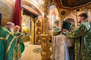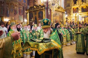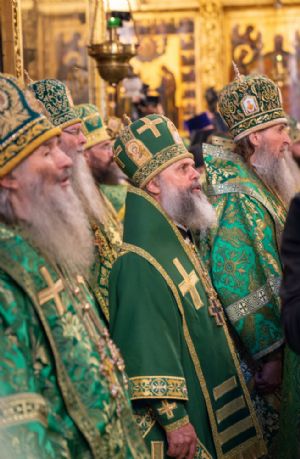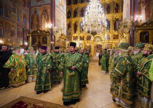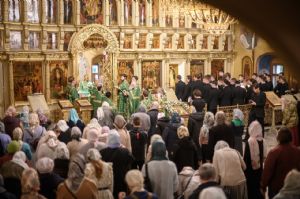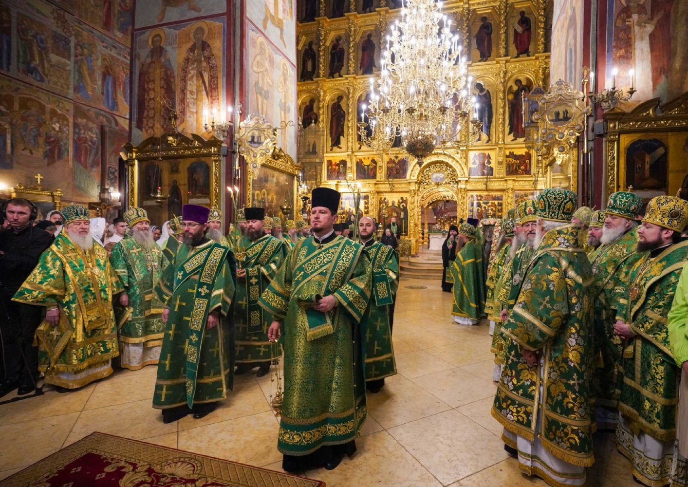 В соборе молились архиереи, настоятельницы женских монастырей, священнослужители, монашествующие и паломники, прибывшие на торжества в Троице-Сергиеву лавру.