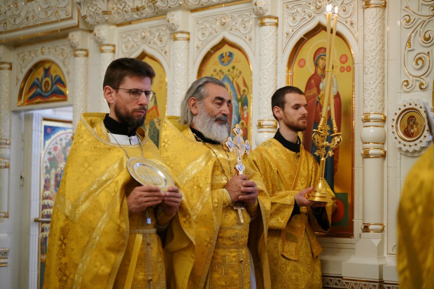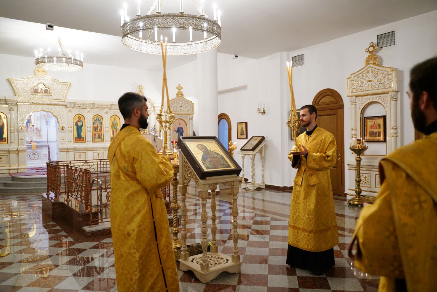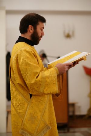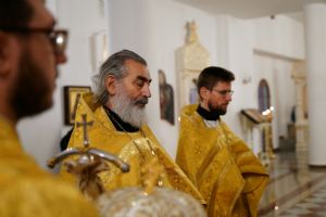 По окончании Литургии в центре храма было совершено славление и вознесена молитва святому апостолу и евангелисту Иоанну Богослову.