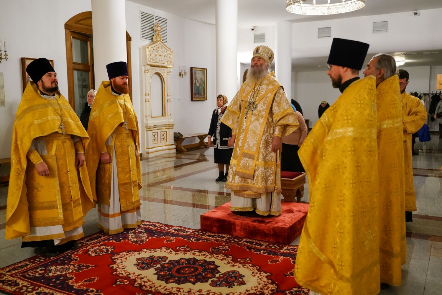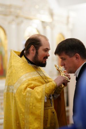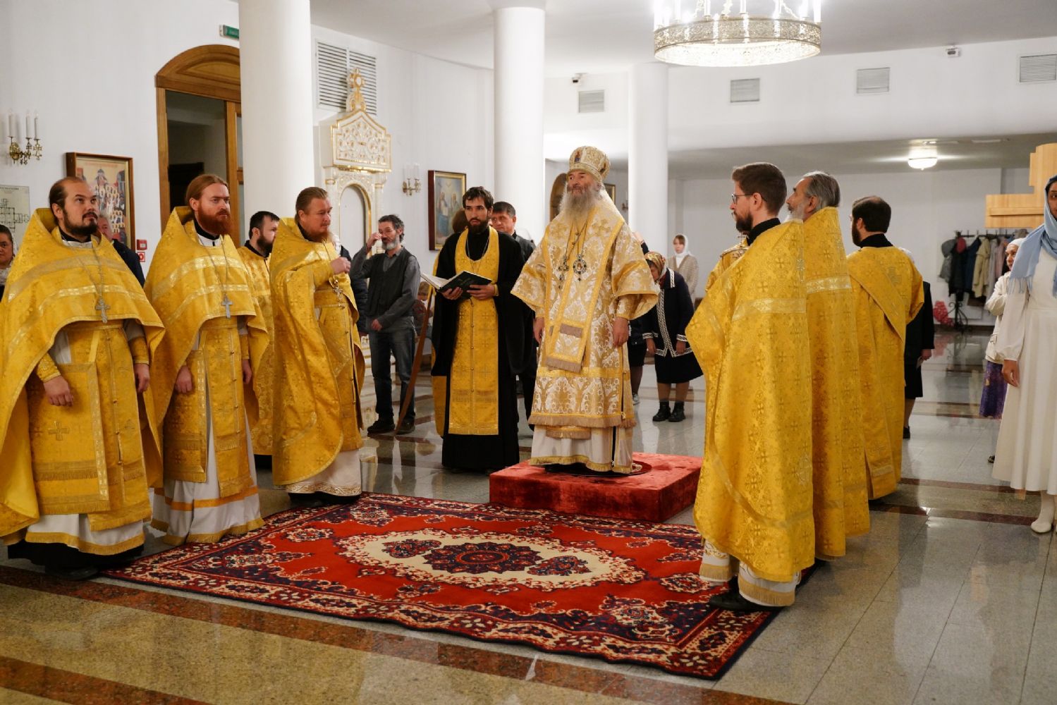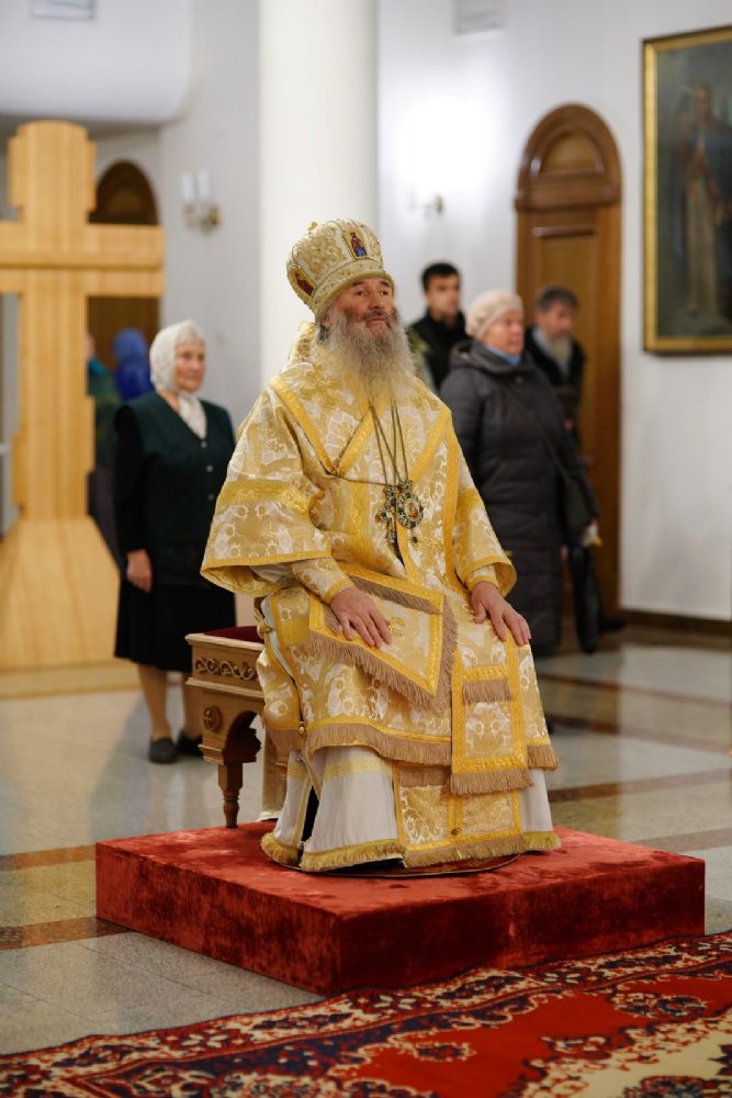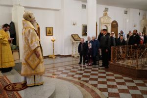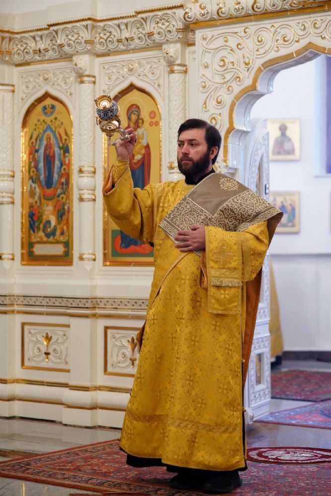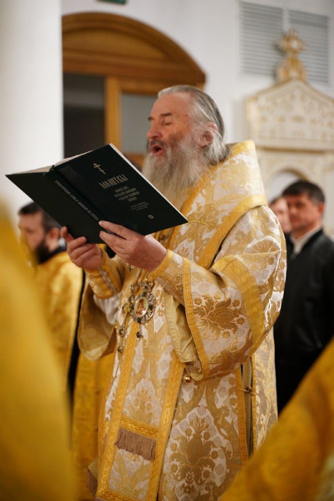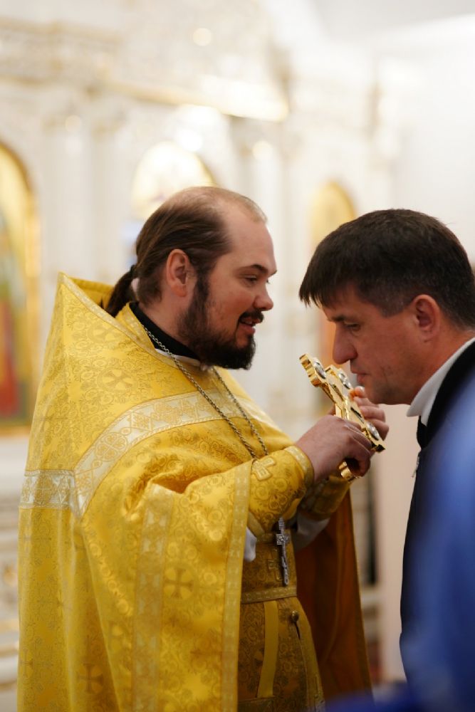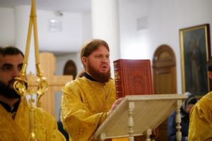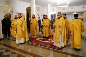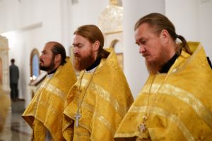 Владыке сослужили ключарь кафедрального собора протоиерей Сергий Поглазов, клирики собора иереи Евгений Самойлов и Александр Староверов, диаконы Андрей Дружинин и Артемий Бобоч, а также гости: клирик Нижегородской епархии протоиерей Борис Калашников и клирик храма великомученика Дмитрия Солунского на Благуше в Москве иерей Александр Дружинин.
