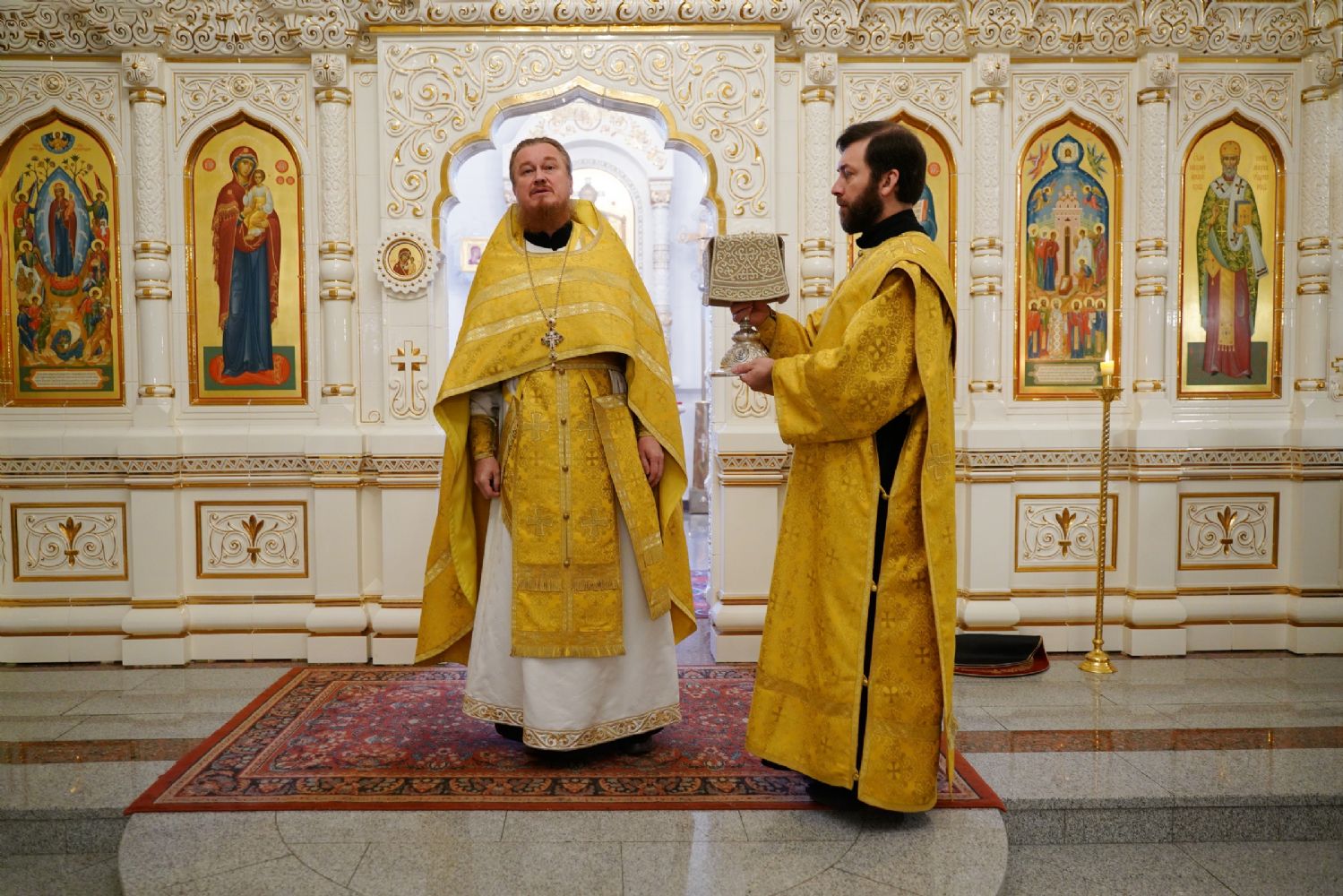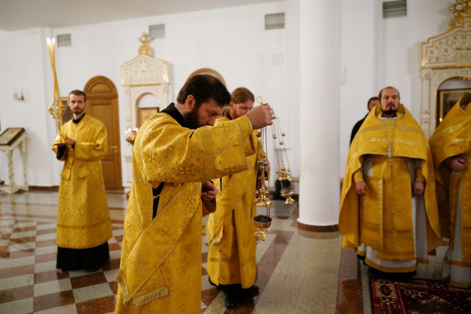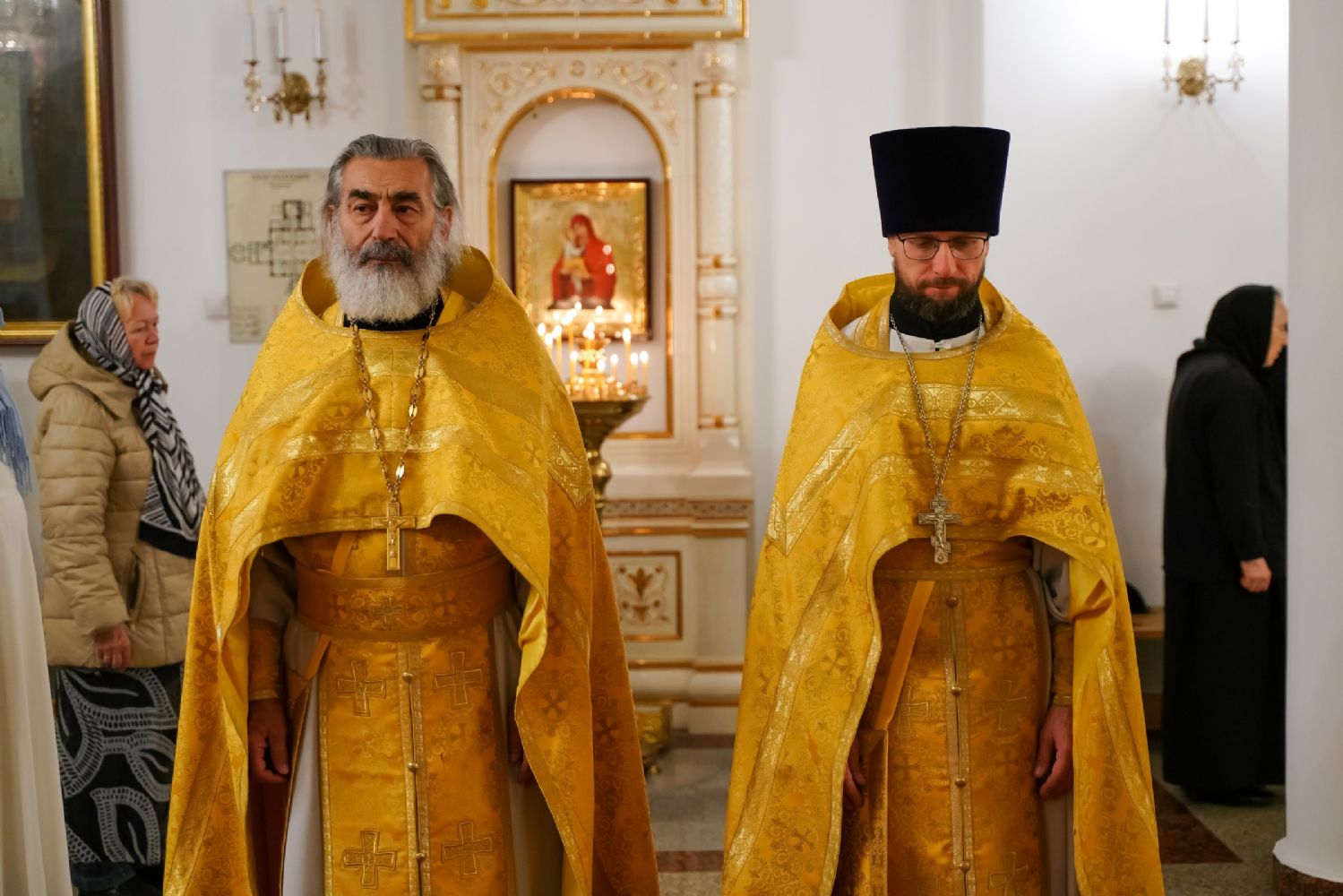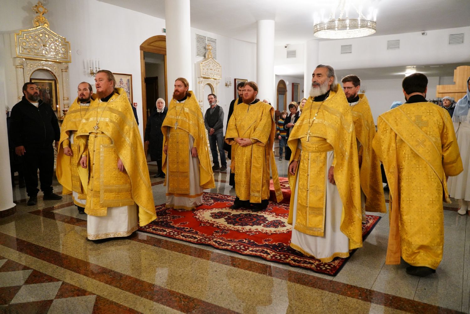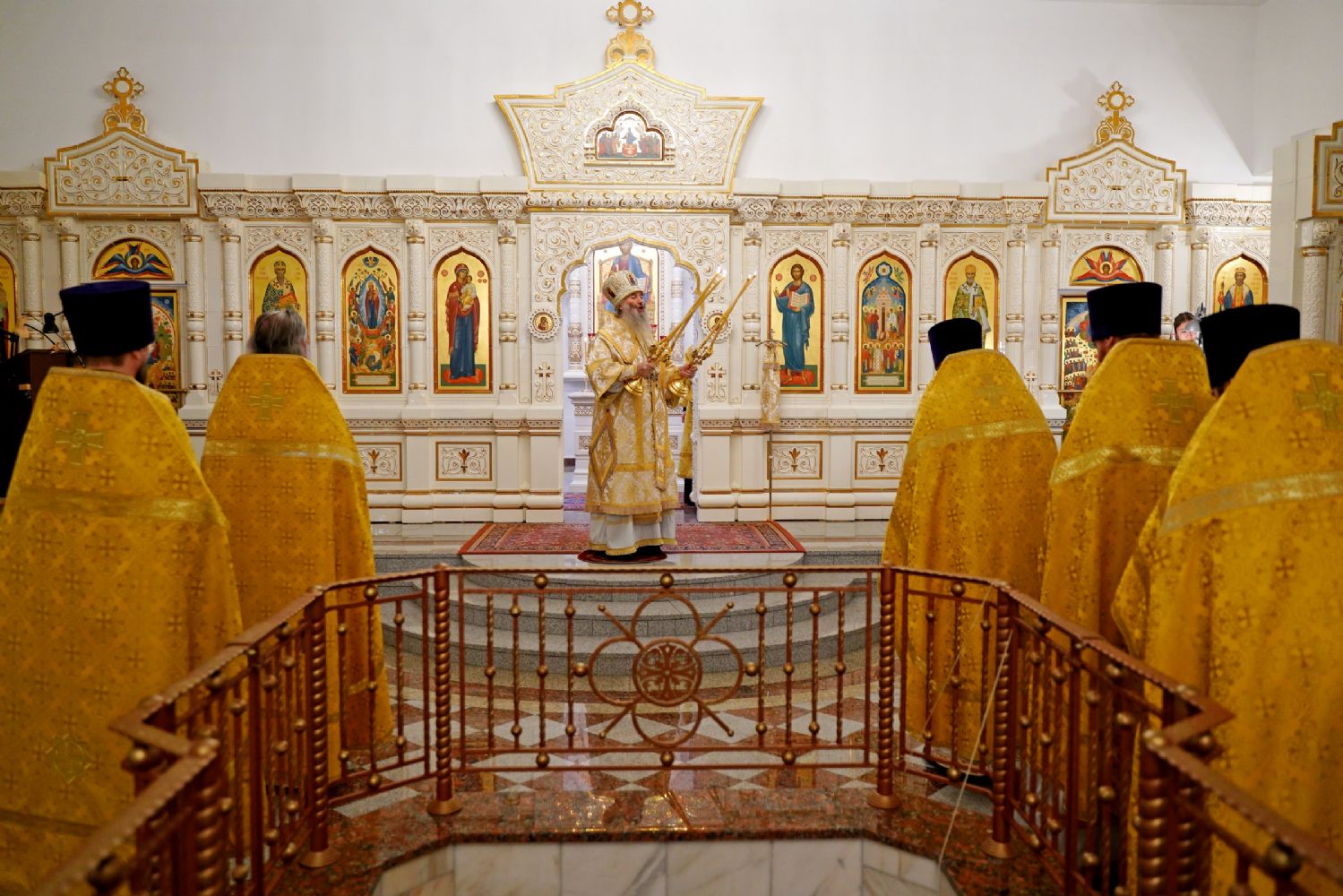 Владыке сослужили ключарь кафедрального собора протоиерей Сергий Поглазов, клирики собора иереи Евгений Самойлов и Александр Староверов, диаконы Андрей Дружинин и Артемий Бобоч, а также гости: клирик Нижегородской епархии протоиерей Борис Калашников и клирик храма великомученика Дмитрия Солунского на Благуше в Москве иерей Александр Дружинин.