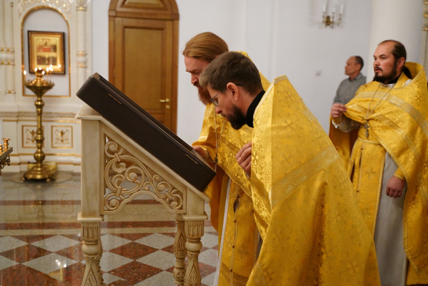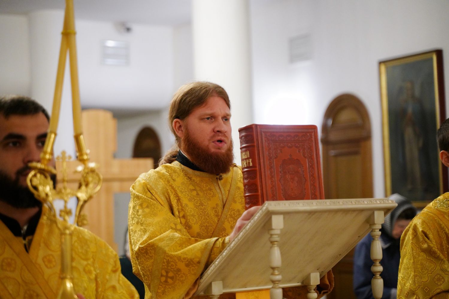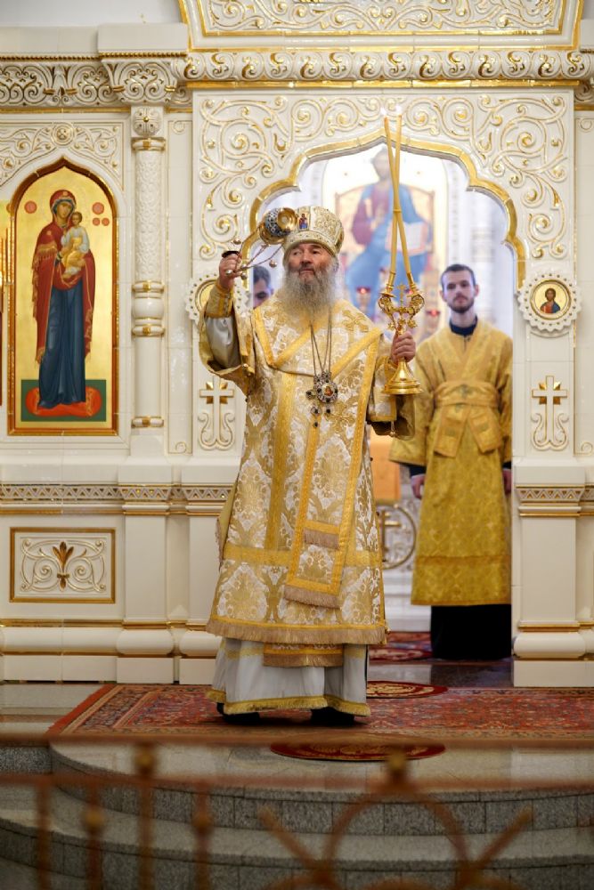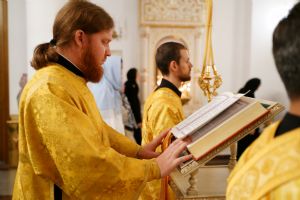 9 октября, в день памяти апостола и евангелиста Иоанна Богослова, митрополит Йошкар-Олинский и Марийский Иоанн возглавил Божественную литургию в нижнем храме Благовещенского кафедрального собора.