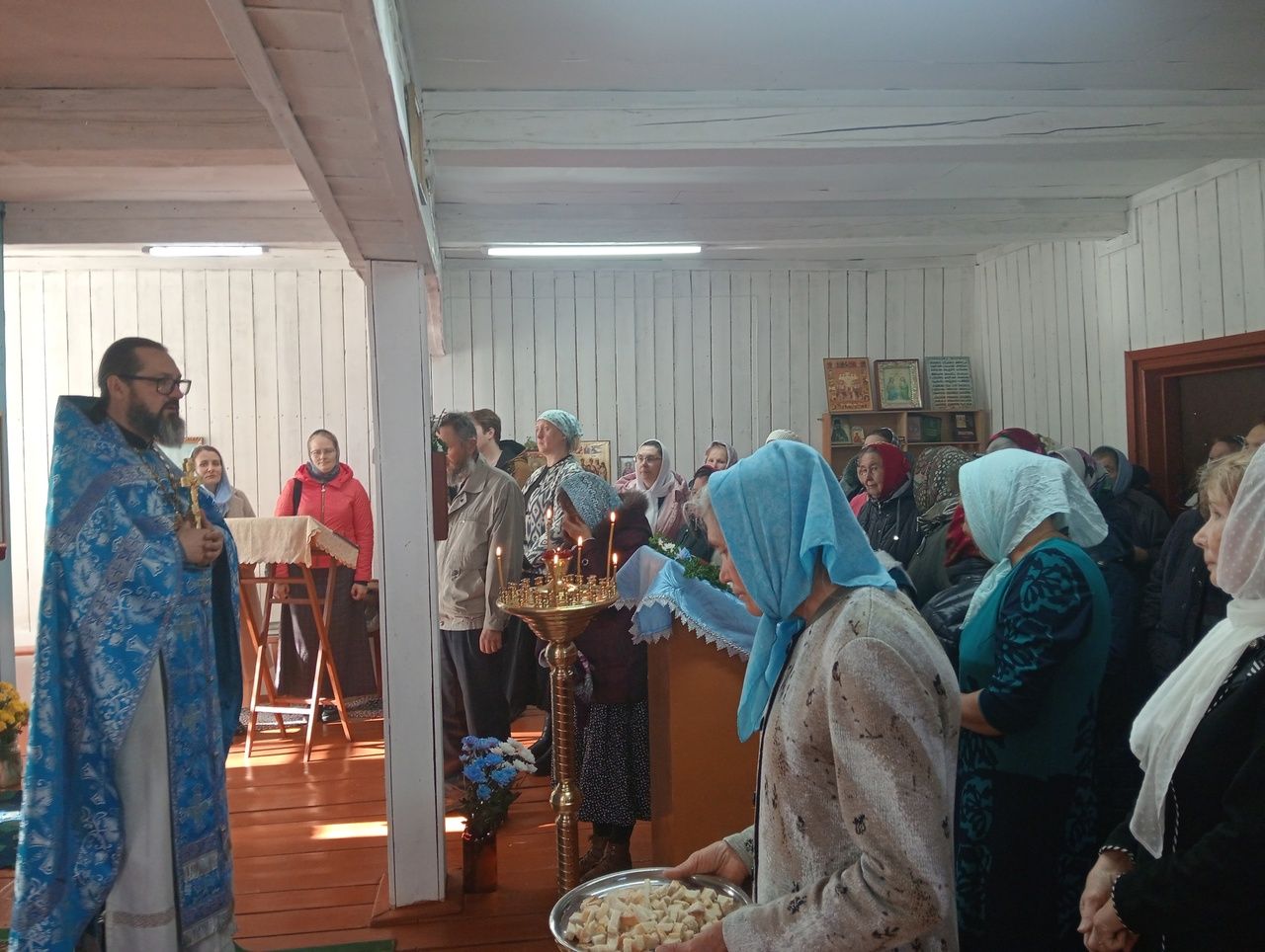 15 октября Божественную литургию в молебном доме по благословению митрополита Йошкар-Олинского и Марийского Иоанна возглавил секретарь Йошкар-Олинского епархиального управления иерей Димитрий Дьяков в сослужении благочинного Пригородного церковного округа протоиерея Николая Ярошевича, окормляющего ронгинский приход. Песнопения исполнял хор храма под управлением Анны Ярошевич.