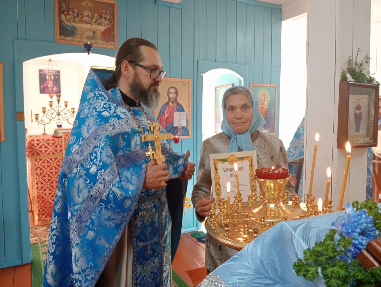 В связи с 210-летием Покровского храма села Ронга отец Димитрий вручил активным прихожанам Булковой Римме Никифоровне и Князеву Сергей Даниловичу благодарственные письма за подписью правящего архиерея.