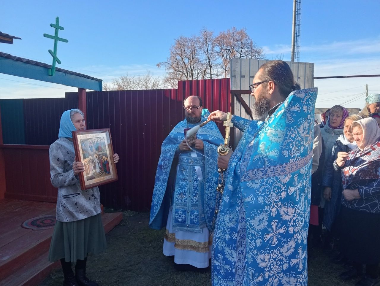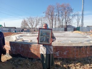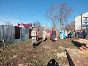 После Литургии вокруг строящегося храма и молебного дома прошел крестный ход со чтением Евангелия и кроплением святой водой.