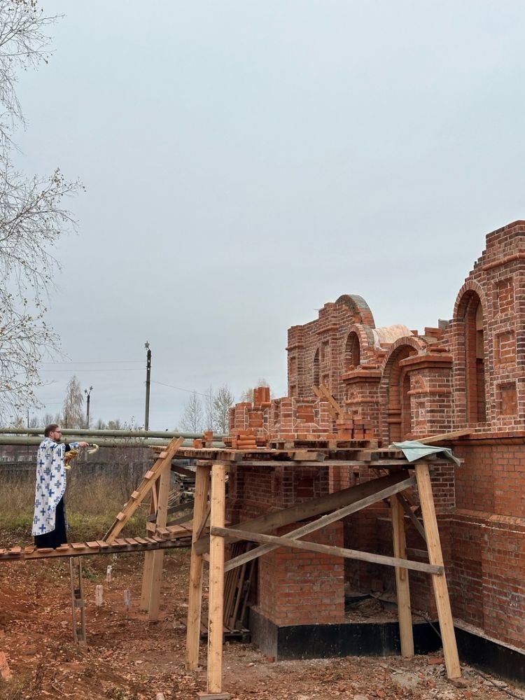 Напомним, чин закладки храма в честь иконы Божией Матери «Умиление» в п. Юбилейный митрополит Йошкар-Олинский и Марийский Иоанн совершил в мае нынешнего года. С Божией помощью, работы продвигаются, кирпичная кладка уже поднялась на высоту первого этажа.