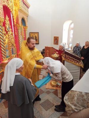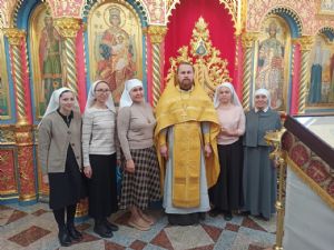 После Литургии четыре выпускницы двухгодичной Школы сестер милосердия при Православном центре, успешно прошедшие практику по определённым направлениям в лечебных стационарных учреждениях города и на патронажной службе, были посвящены в сестры милосердия.