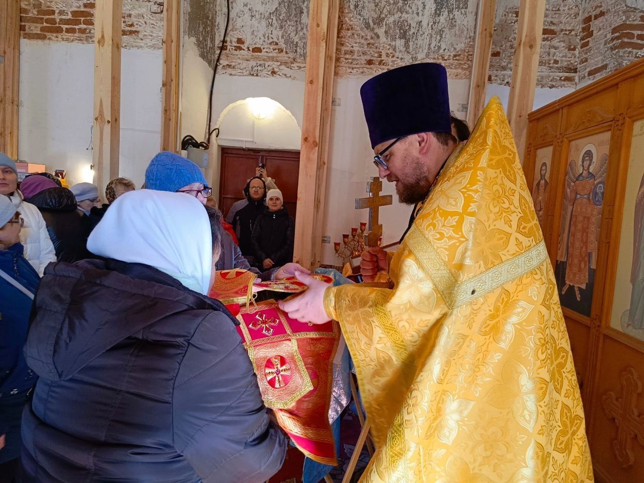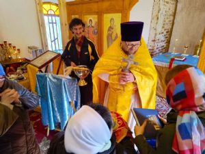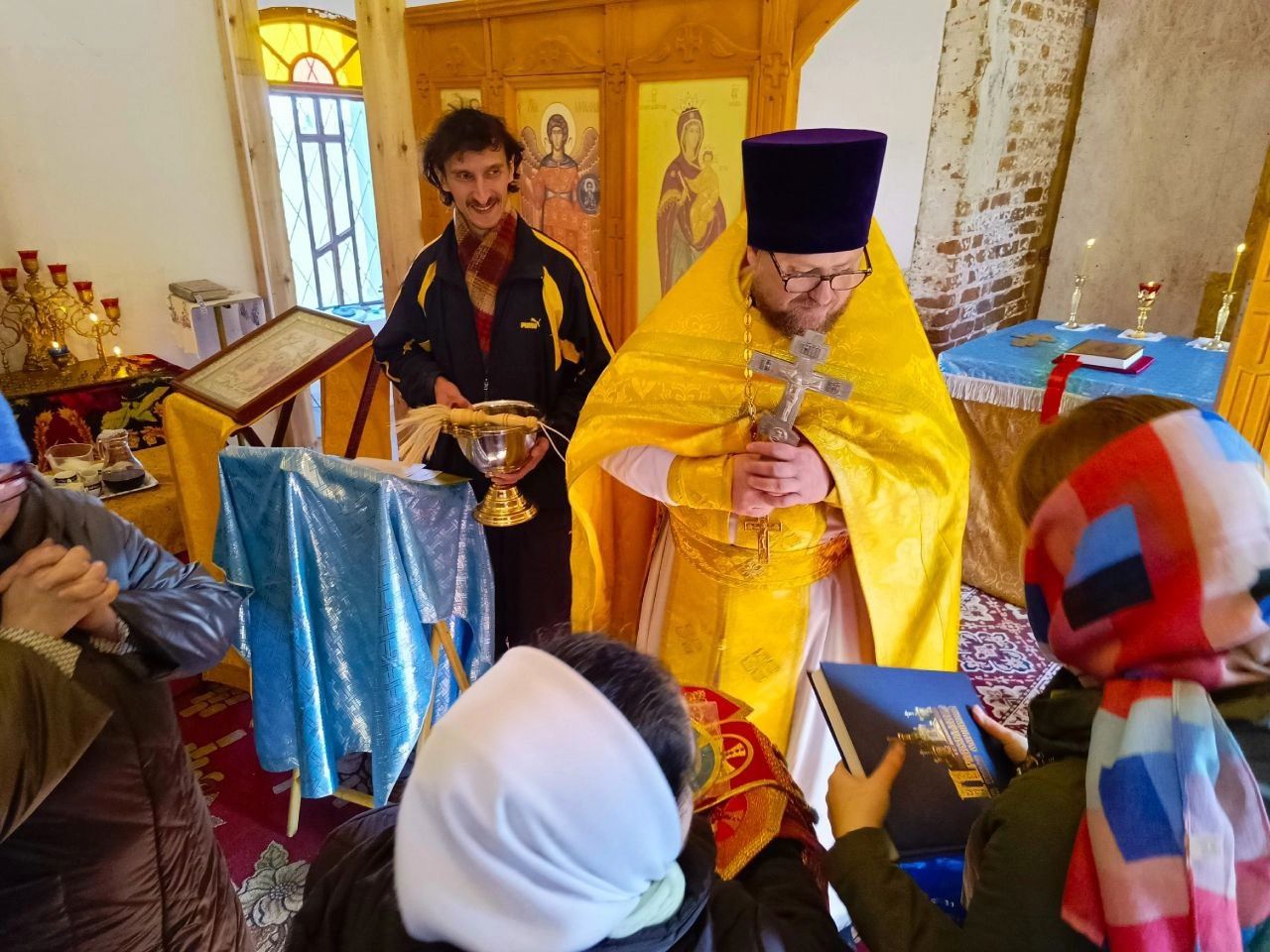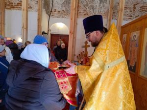Все члены нашей общины глухих причастились Святых Христовых Таин. В дар восстанавливаемому храму они передали набор покровцов и воздух, а также книгу о храмах Марийской земли и сувенирную тарелку с изображением города Йошкар-Олы.
