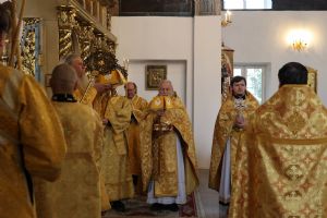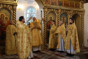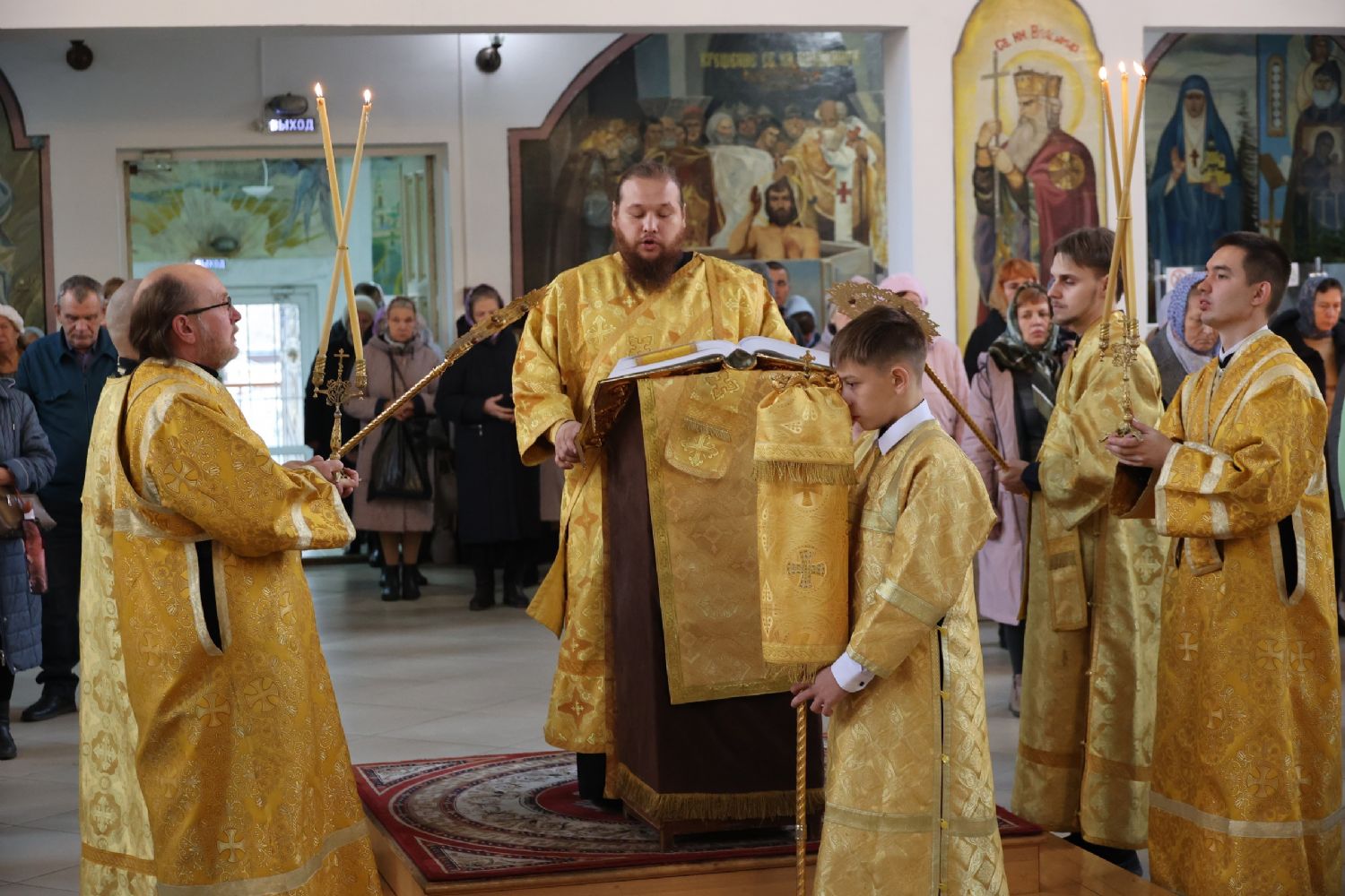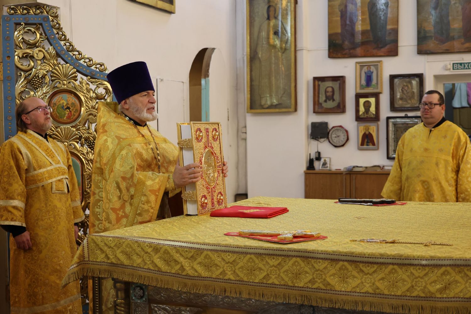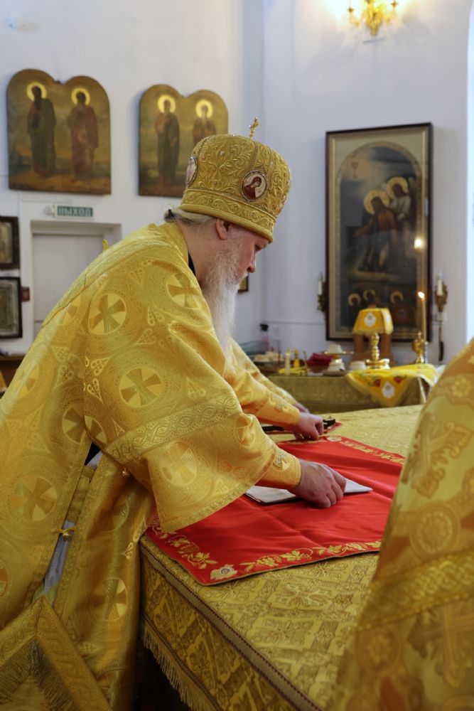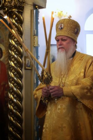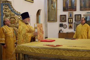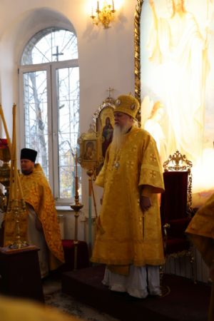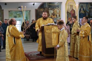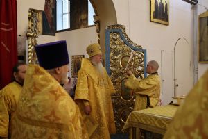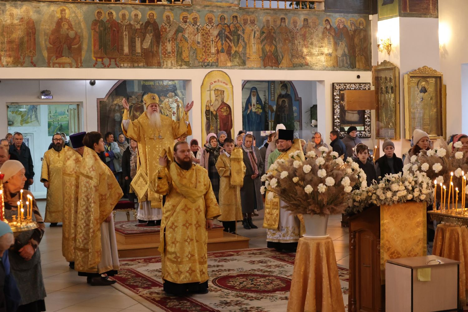Его Преосвященству сослужили ключарь кафедрального собора иерей Иоанн Лапшинский, клирики собора иерей Николай Аникин, иерей Герман Михайлов, диакон Иоанн Захаров. Песнопения исполнял народный хор под руководством Евгения Чигарова.