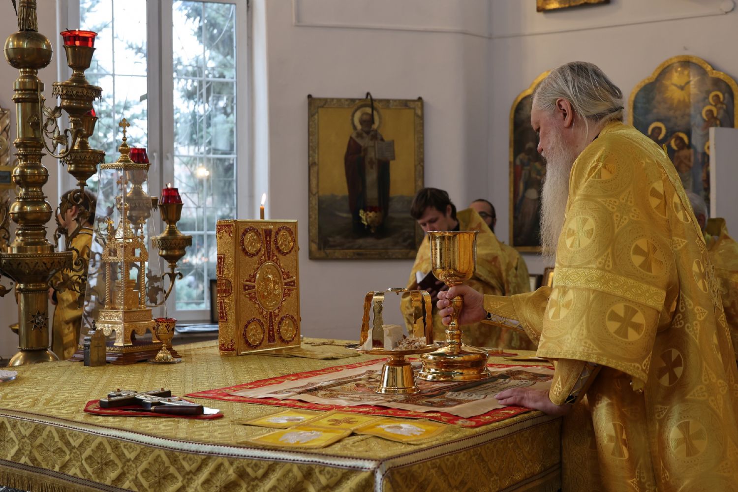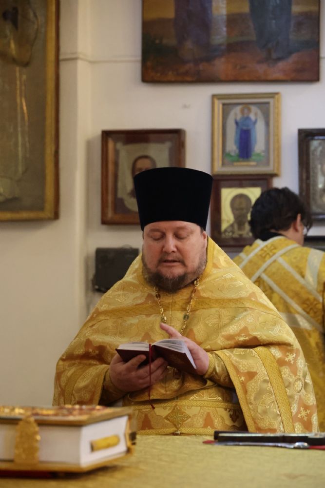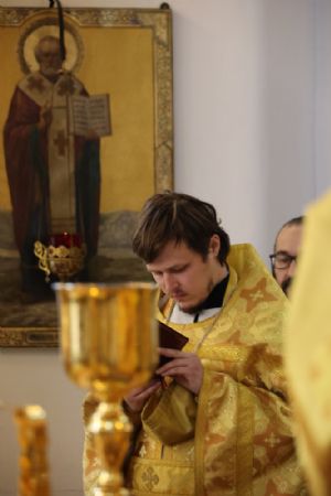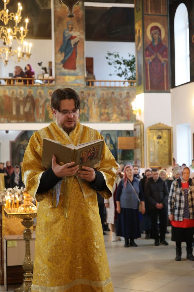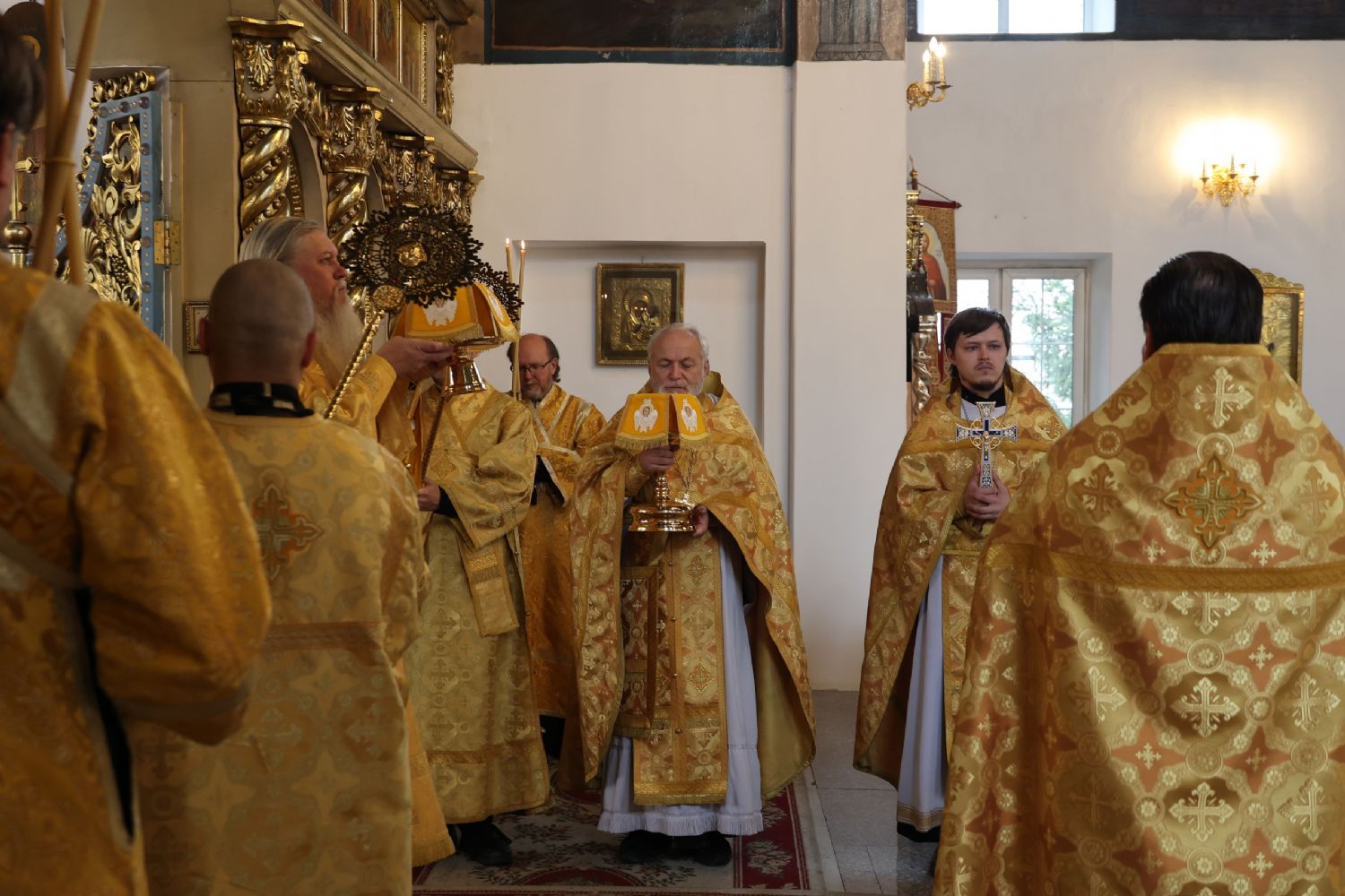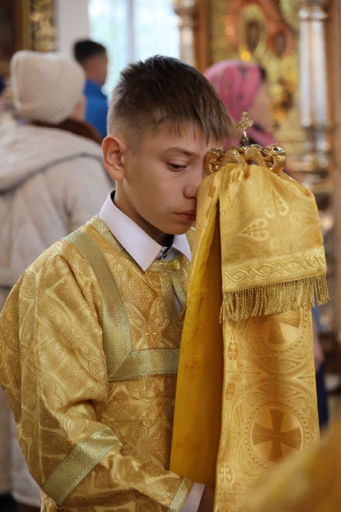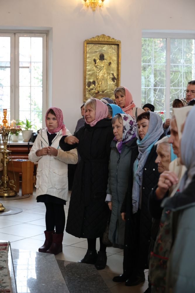 Его Преосвященству сослужили ключарь кафедрального собора иерей Иоанн Лапшинский, клирики собора иерей Николай Аникин, иерей Герман Михайлов, диакон Иоанн Захаров. Песнопения исполнял народный хор под руководством Евгения Чигарова.