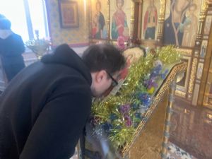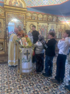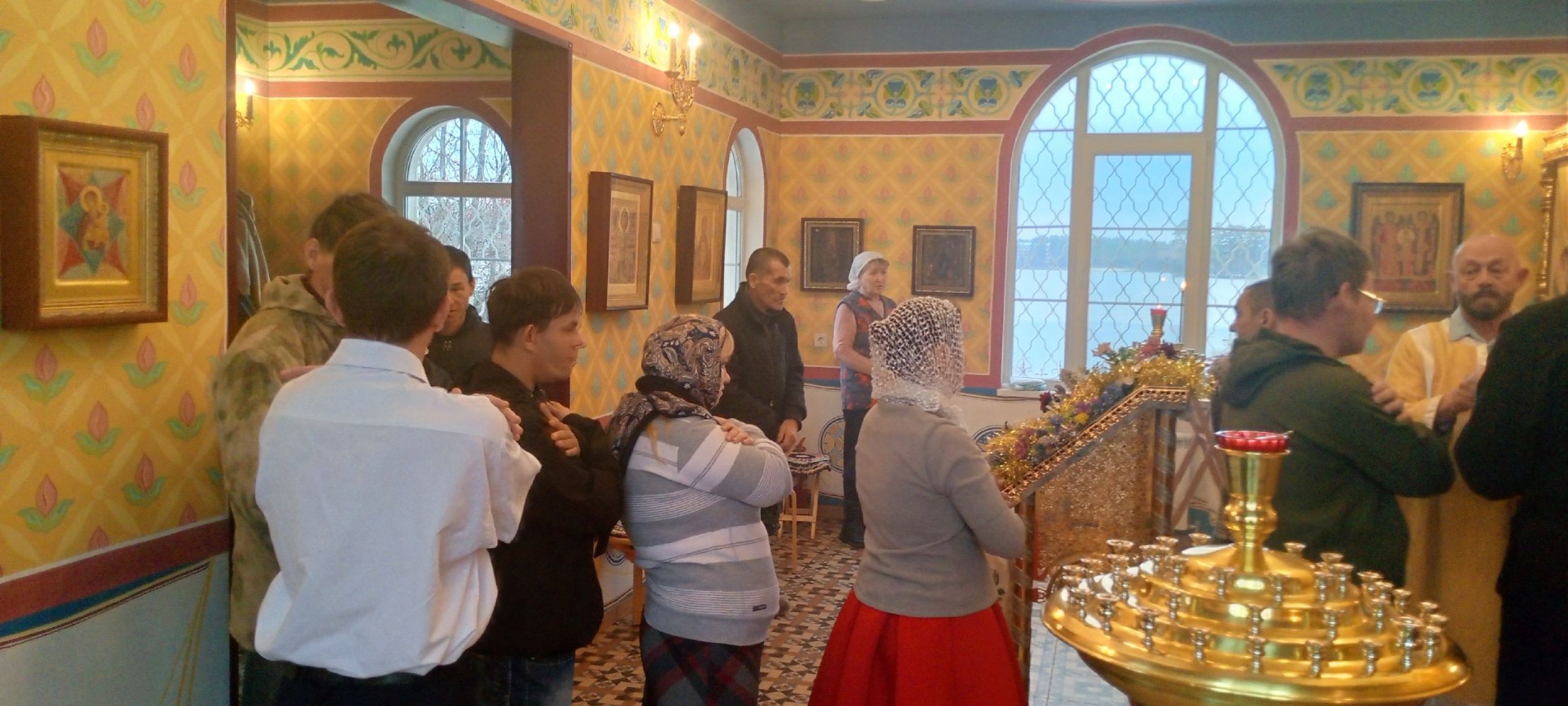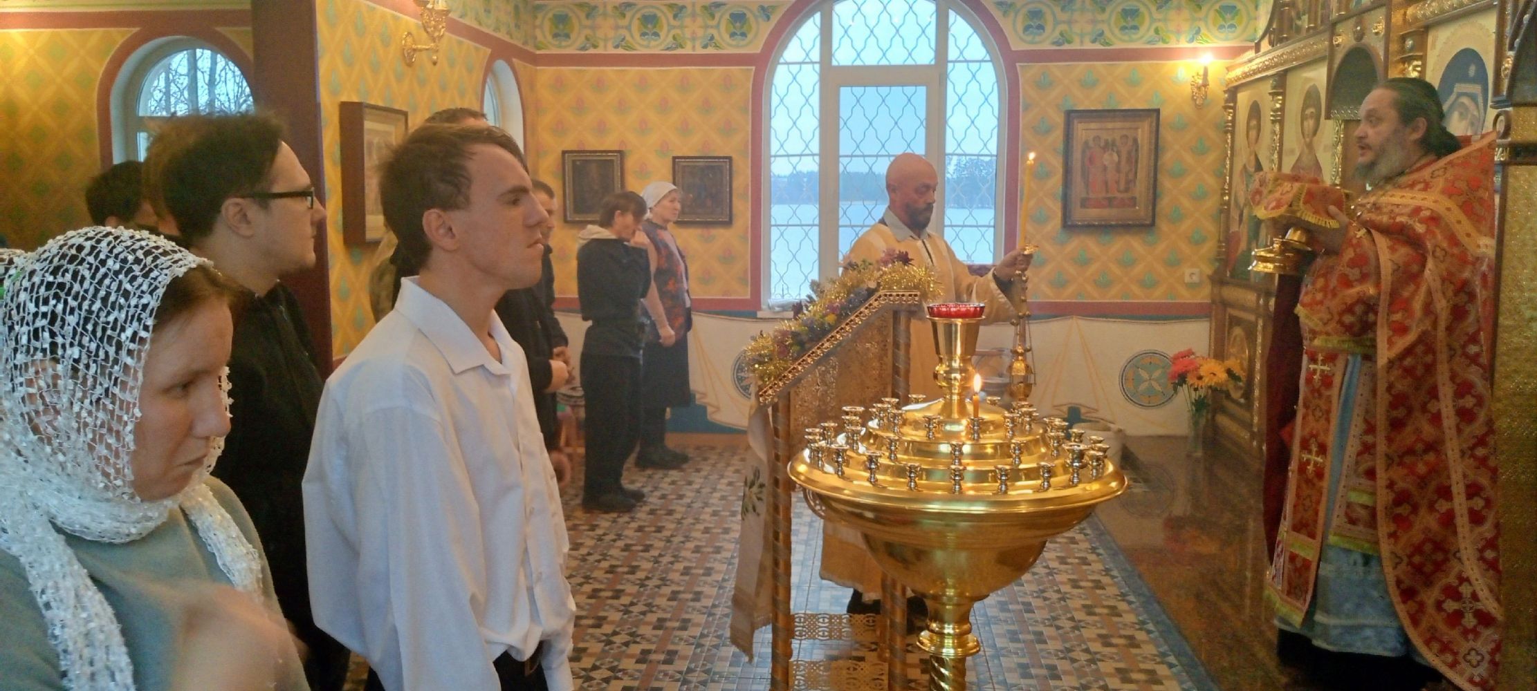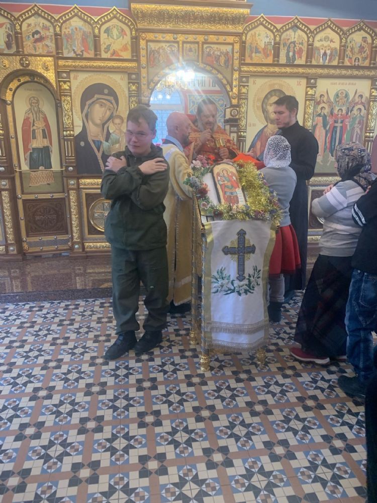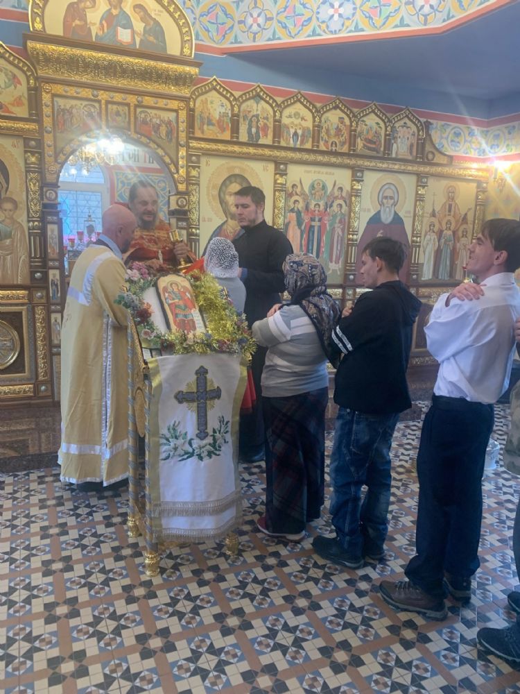 Помолиться небесному покровителю поселка собрались местные жители и ребята из дома-интерната «Таир», которые приступили к таинствам Исповеди и Причастия.