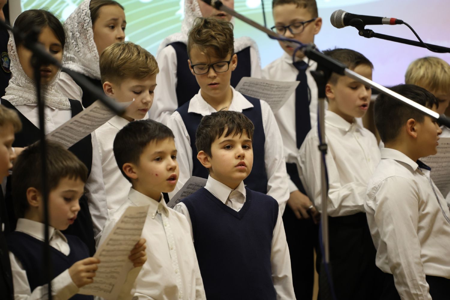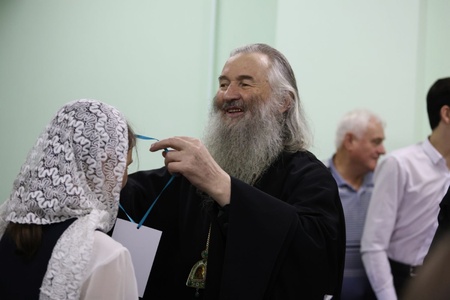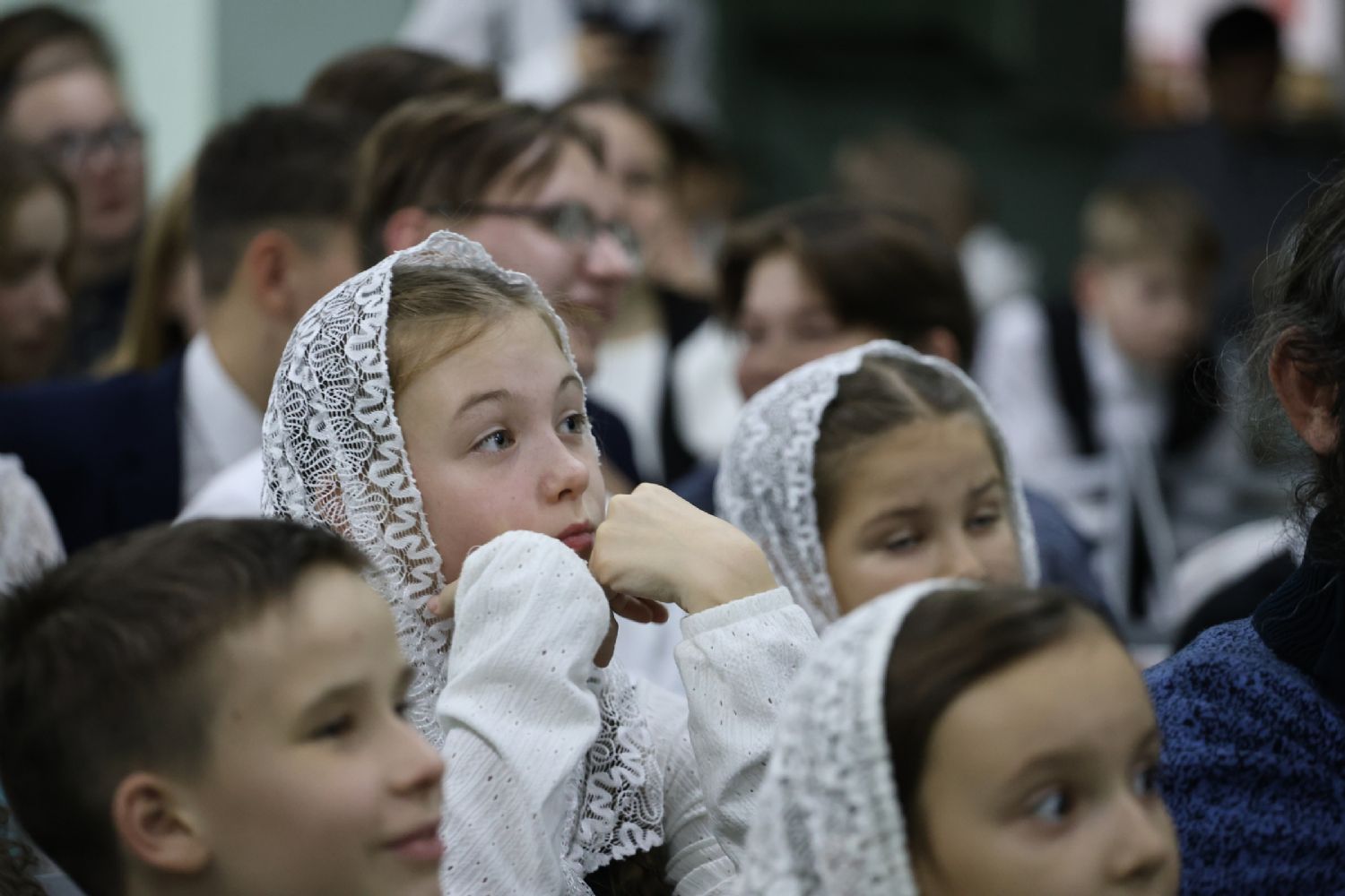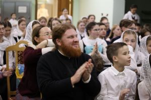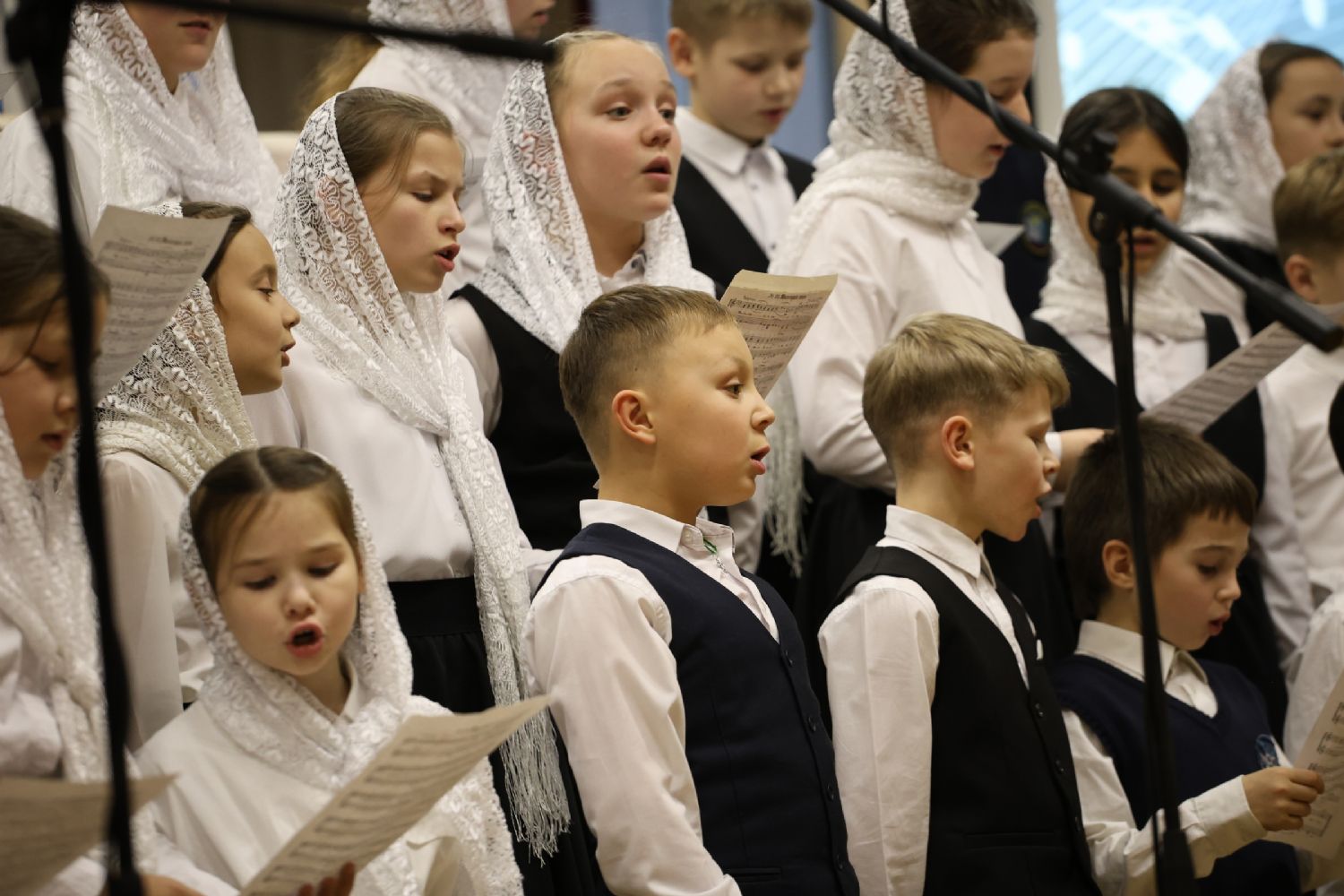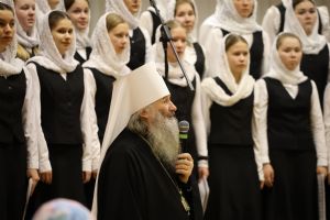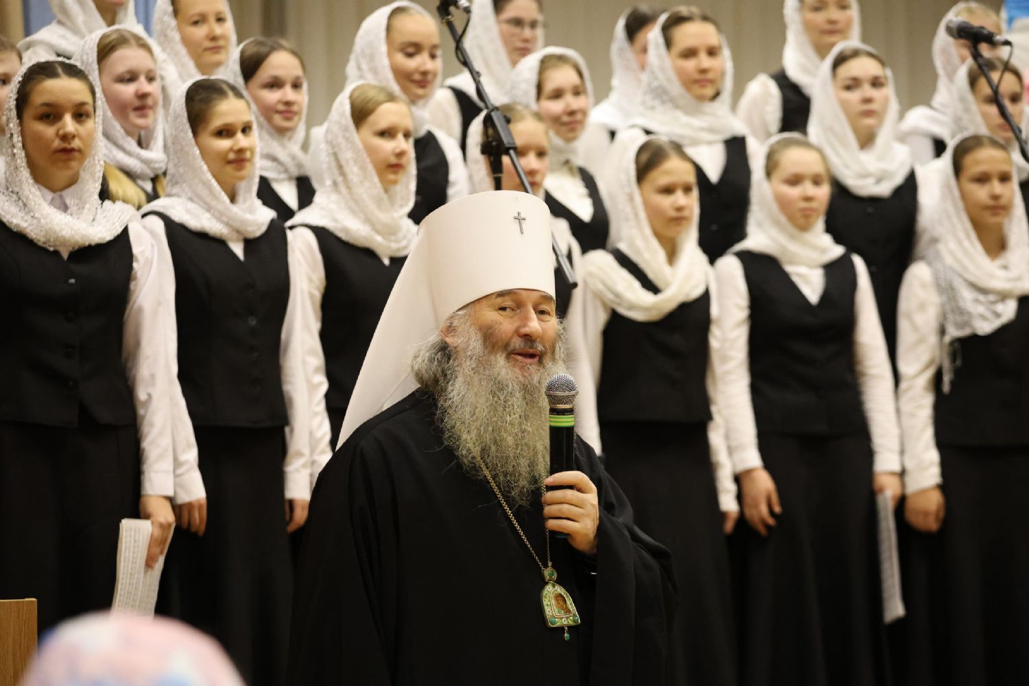 «История детского хора – это наша с вами история, история нашей епархии. Каждый из тех, кто прославляет через пение Пречистую Богоматерь, и тех, кто сидит в этом зале, ощущает, что воистину мы Ее дети и пребываем под Ее благодатным покровом. Пречистая умиротворяет буйство юности, укрепляет нас и с любовью препровождает в сознательную жизнь, Она никогда нас не оставляет.