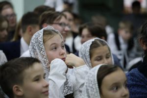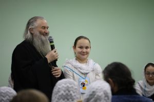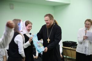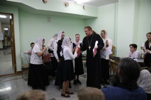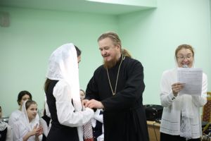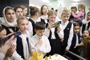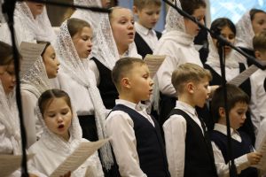 У нашего детского хора такой удивительный небесный покровитель – Архангел Михаил, который стоит сегодня на страже Святой Руси. И он, находясь в сиянии Божественной славы, отражает этот свет Христовой любви, который достигает сердца каждого человека. Ведь мы с вами во время Божественной литургии тоже становимся небожителями и, подобно ангелам, воспеваем Господа. Да, ангелы, находясь в свете Божественной любви, настолько утвердились в добре, что они уже не могут ничего скверного даже в мыслях совершать. И наше с вами сердце должно принять этот свет любви Христовой, просвещающий всякого человека, живущего в мире.