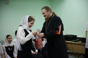 Завершился праздник теплым общением за чашкой чая с традиционным «капустником», в ходе которого митрополит Иоанн вручил подарки выпускникам хора и музыкальным руководителям.