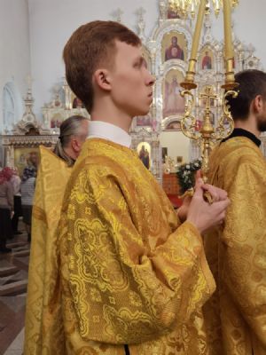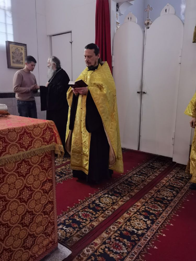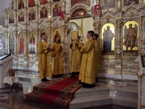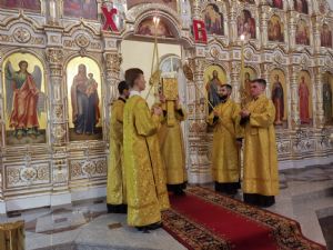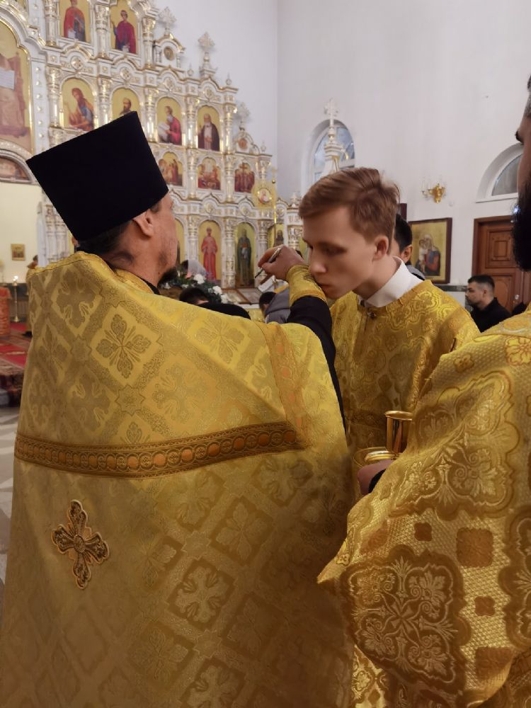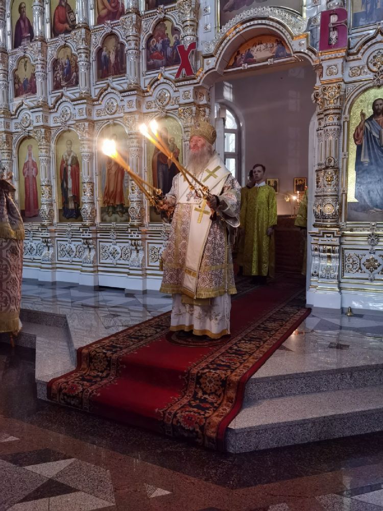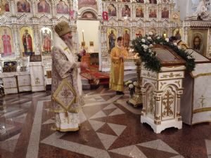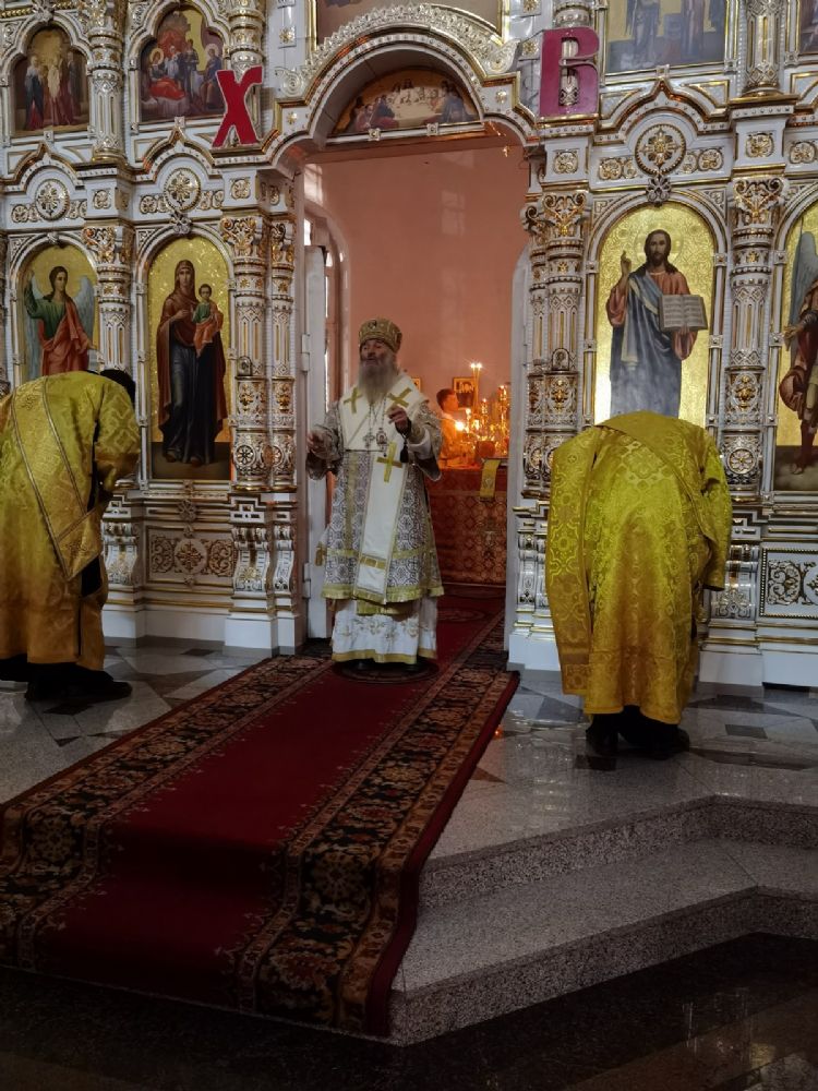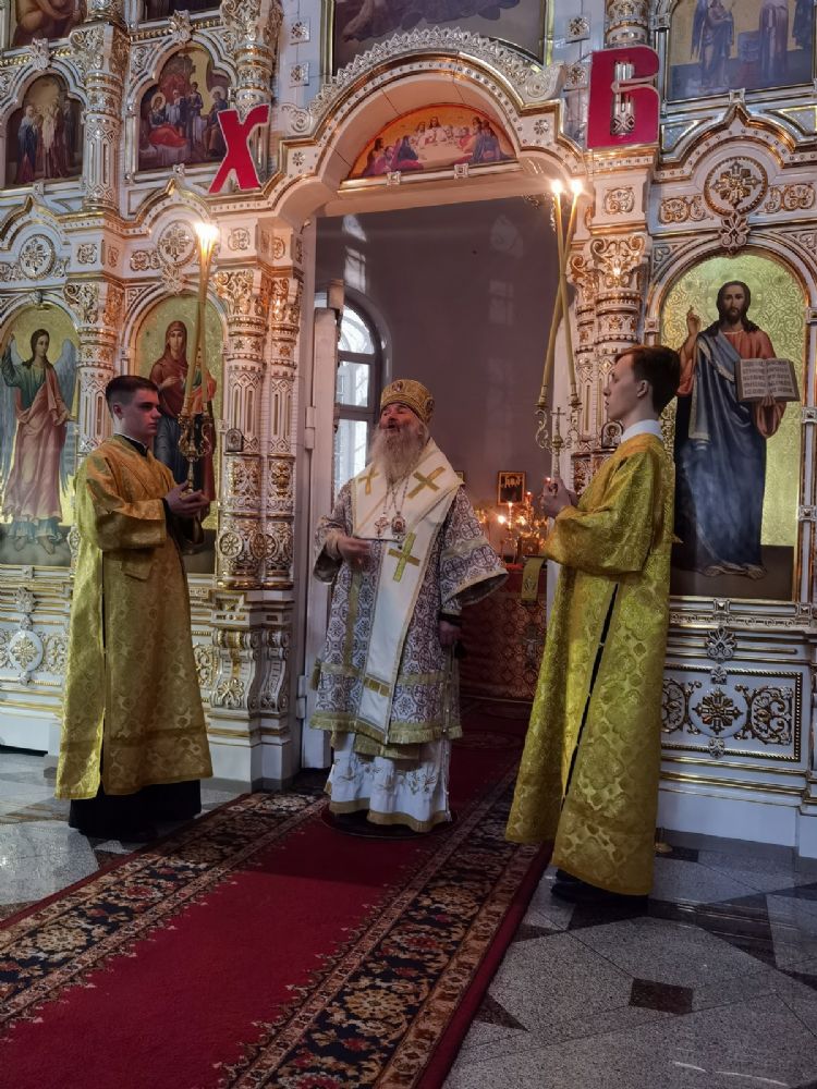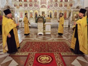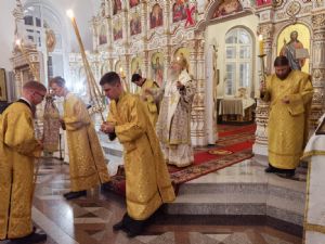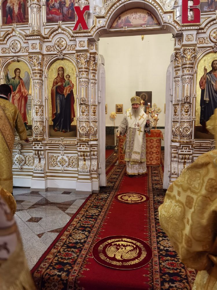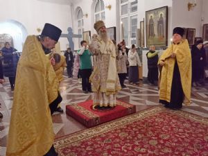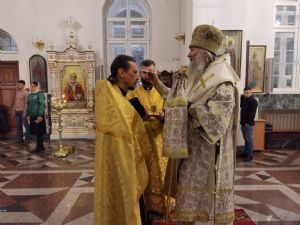 Владыке сослужили настоятель собора иерей Андрей Кочаков, клирики собора иерей Леонид Вылекжанин и диакон Алексий Кузнецов, а также клирик Благовещенского кафедрального собора диакон Андрей Дружинин. Песнопения исполнял хор собора под управлением регента Елены Поглазовой.