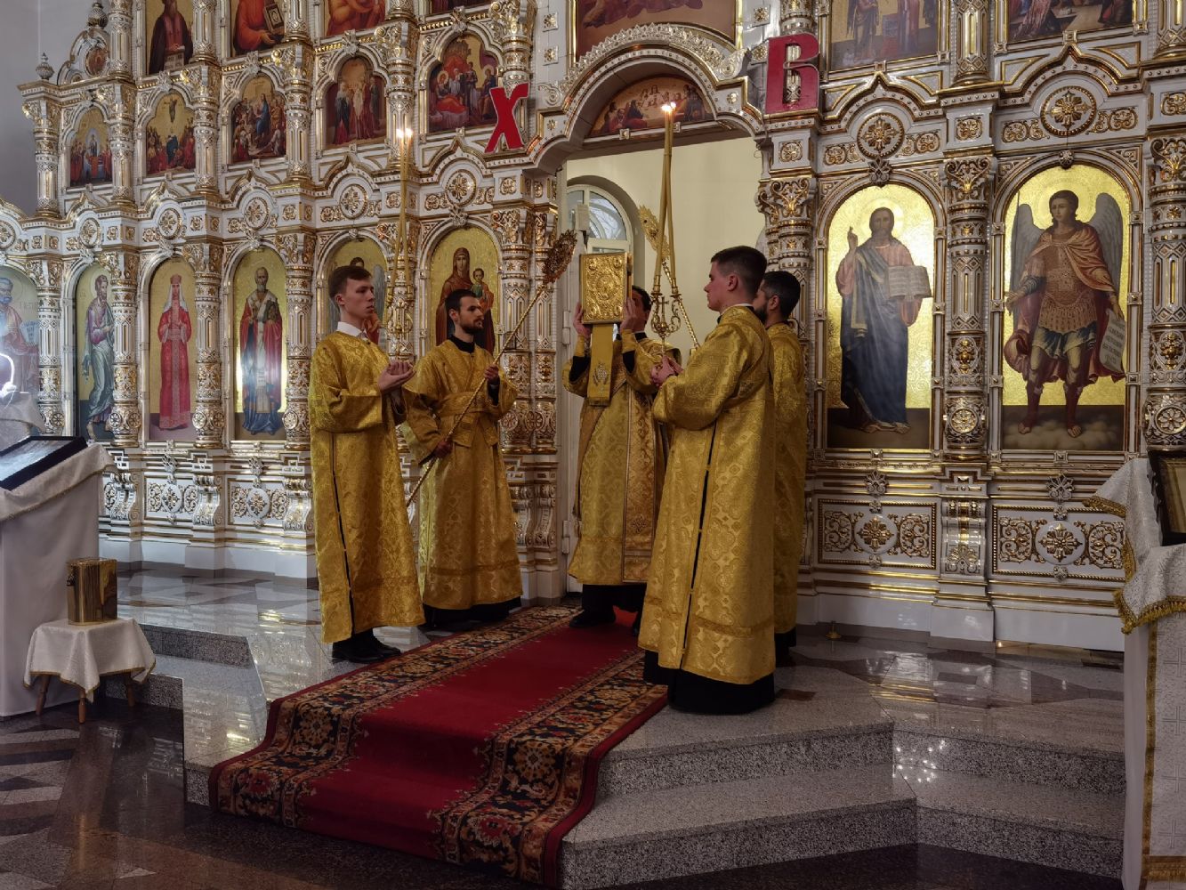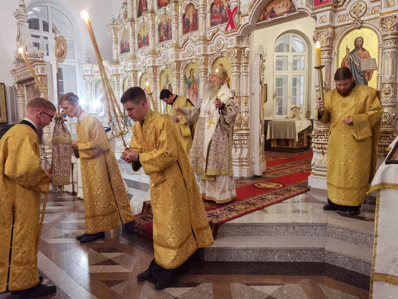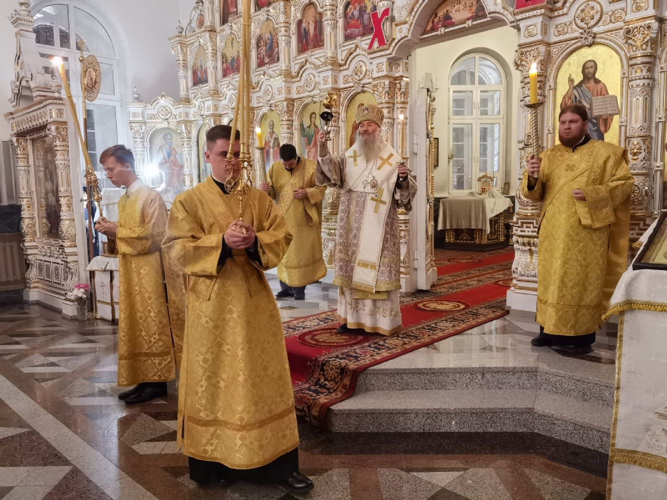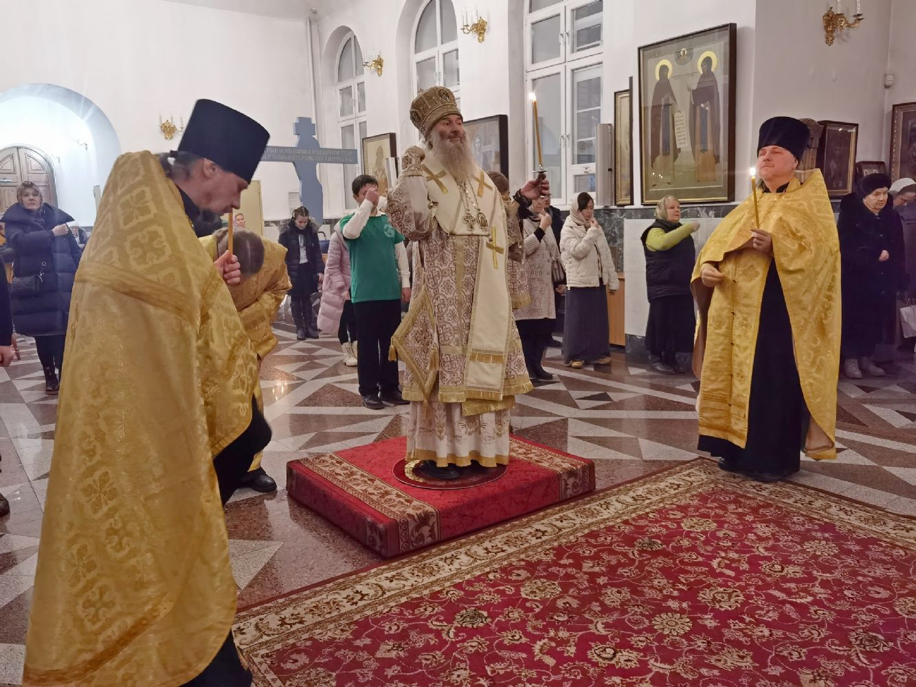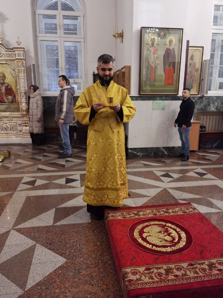 Владыке сослужили настоятель собора иерей Андрей Кочаков, клирики собора иерей Леонид Вылекжанин и диакон Алексий Кузнецов, а также клирик Благовещенского кафедрального собора диакон Андрей Дружинин. Песнопения исполнял хор собора под управлением регента Елены Поглазовой.