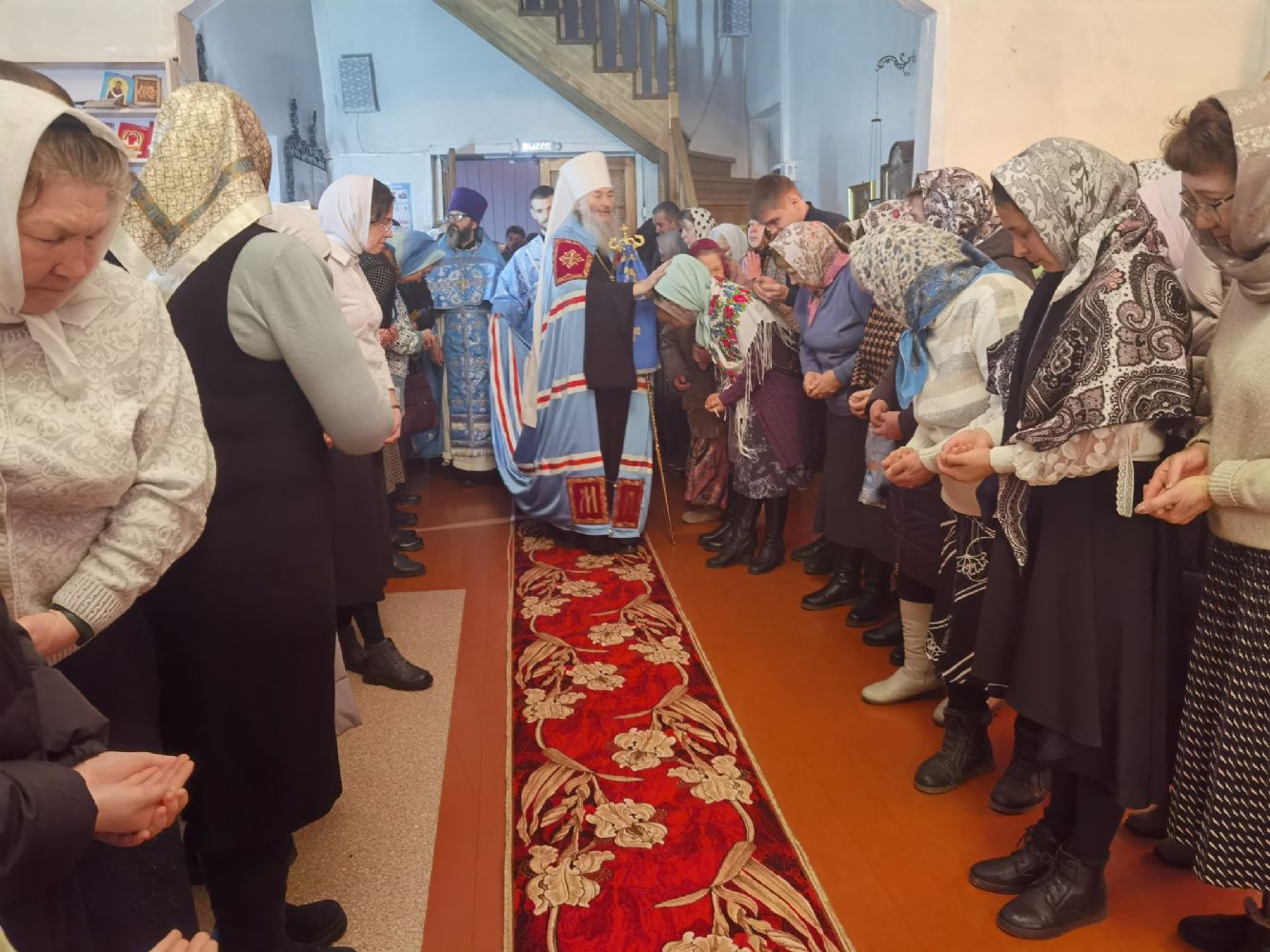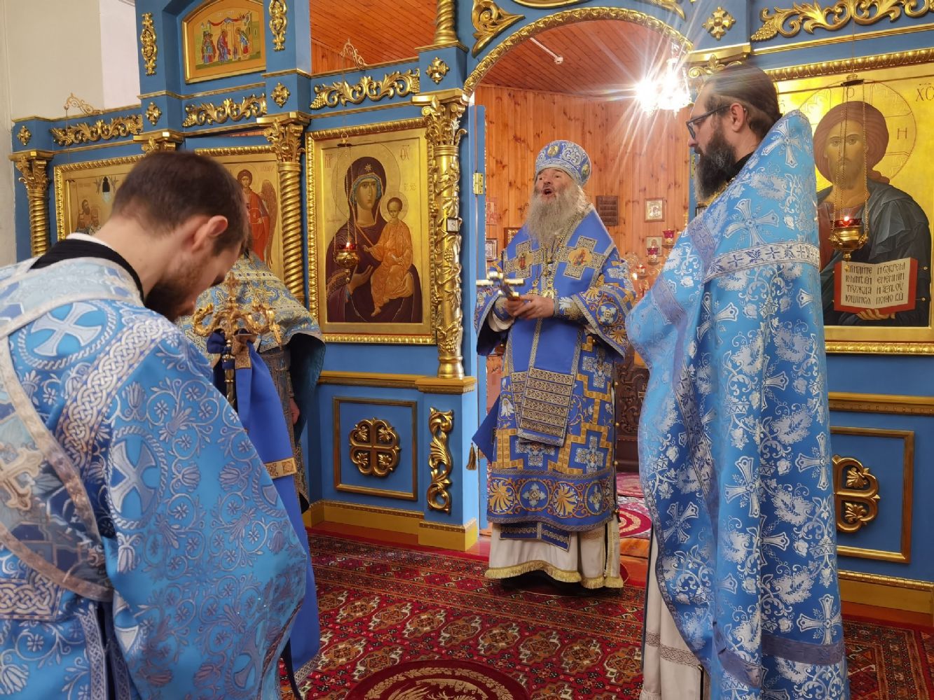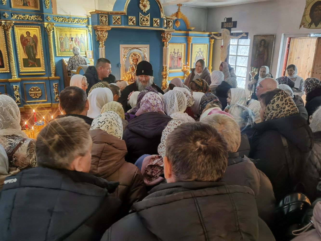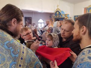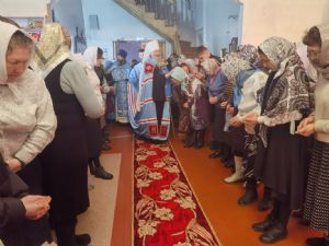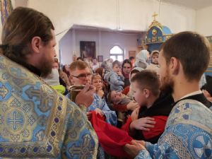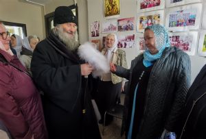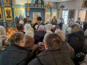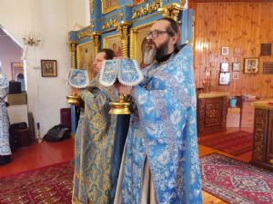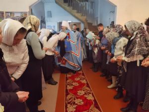 После Литургии священство в центре храма совершило славление празднику, затем владыка Иоанн обратился к собравшимся с проповедью, разъяснив духовный смысл прочитанного евангельского зачала об исцелении Христом согбенной женщины, причиной недуга которой был сидящий в ней бес. Но некоторые из окружающих начали говорить, что в субботу нельзя творить никакие дела, в том числе исцелять.