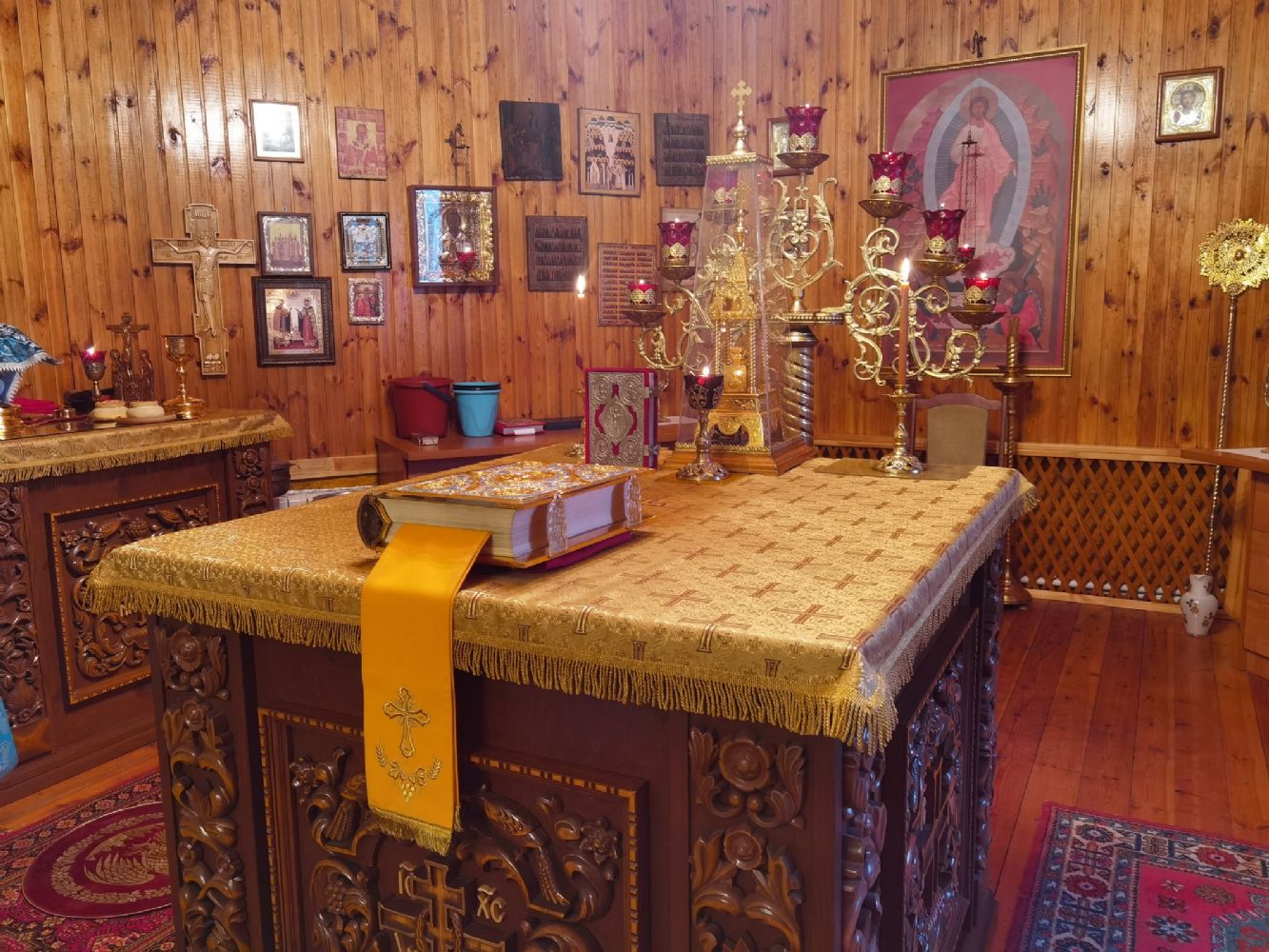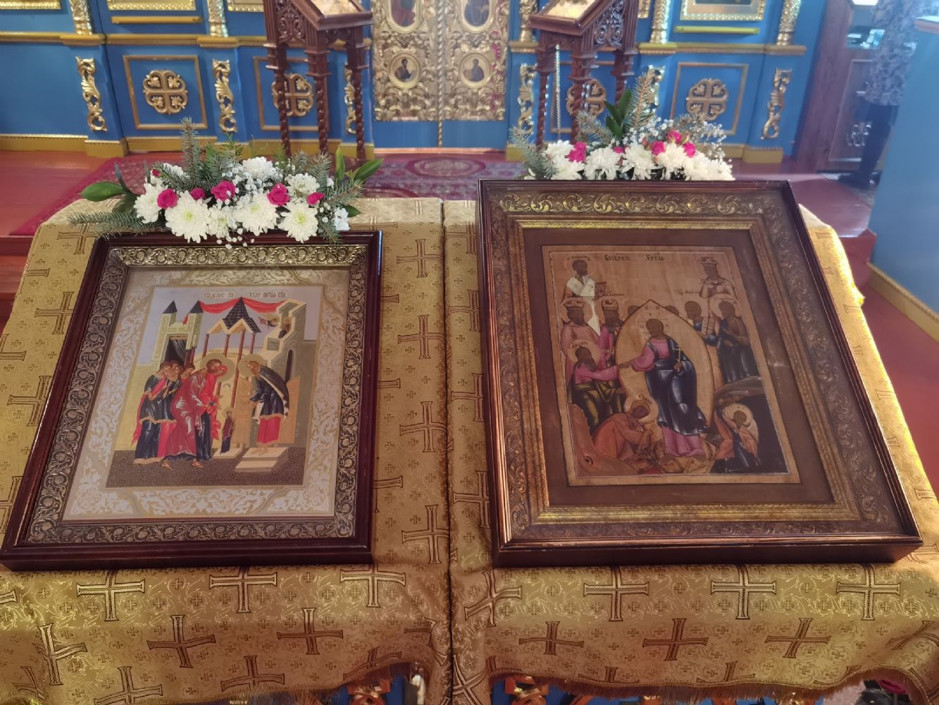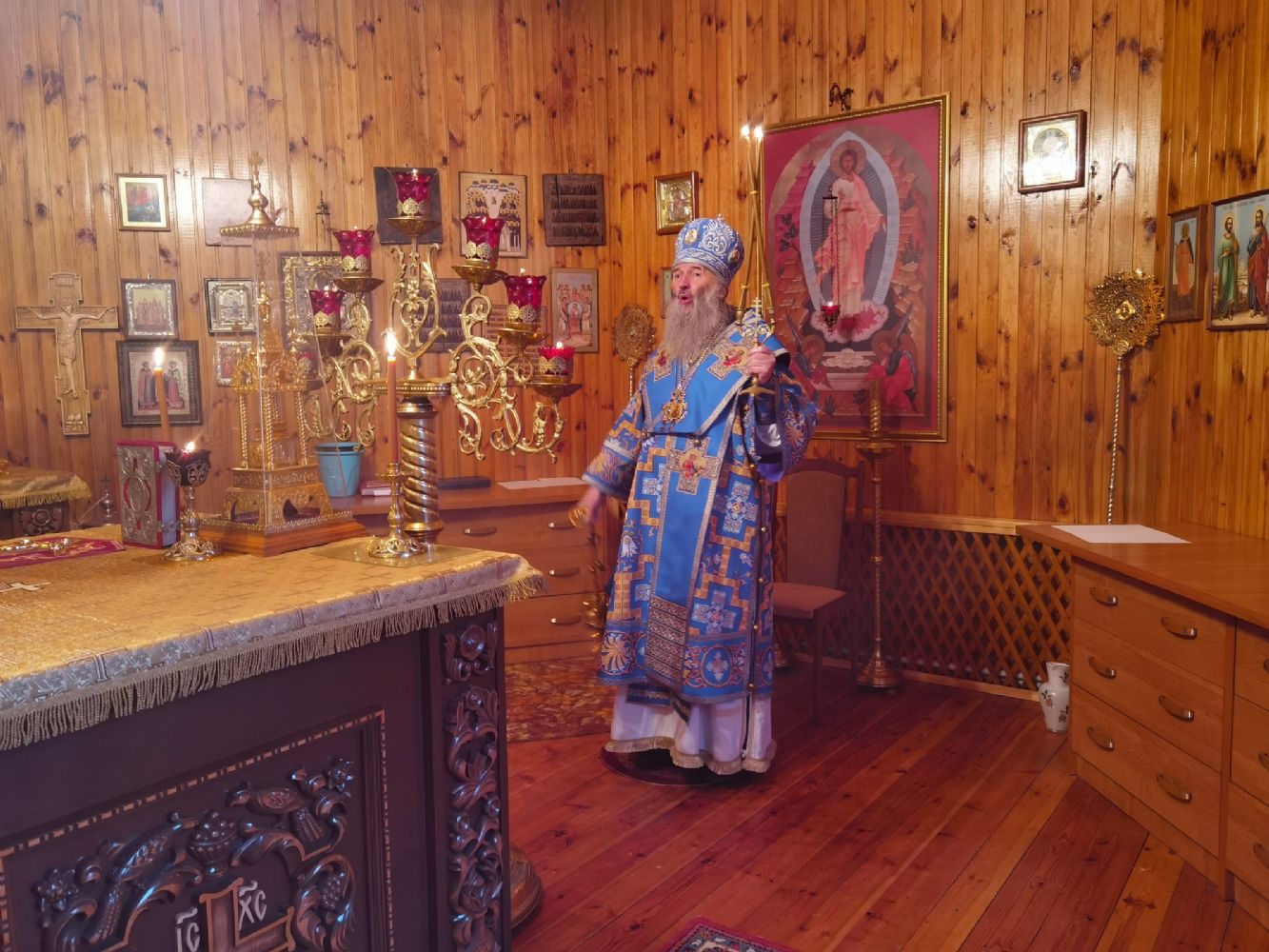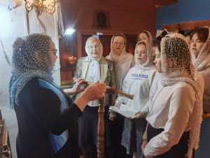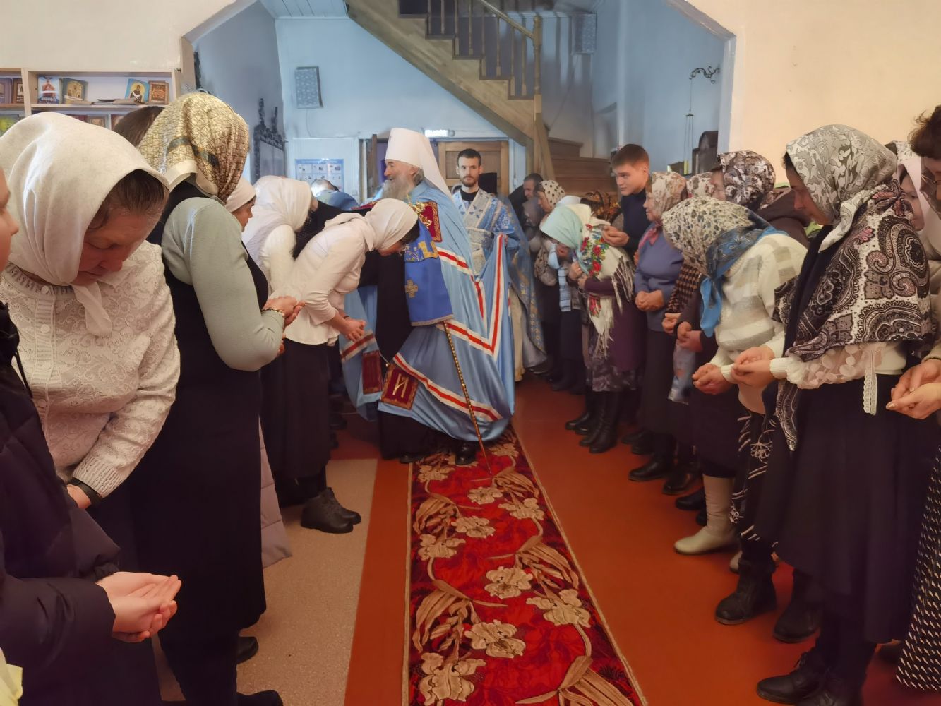После Литургии священство в центре храма совершило славление празднику, затем владыка Иоанн обратился к собравшимся с проповедью, разъяснив духовный смысл прочитанного евангельского зачала об исцелении Христом согбенной женщины, причиной недуга которой был сидящий в ней бес. Но некоторые из окружающих начали говорить, что в субботу нельзя творить никакие дела, в том числе исцелять.