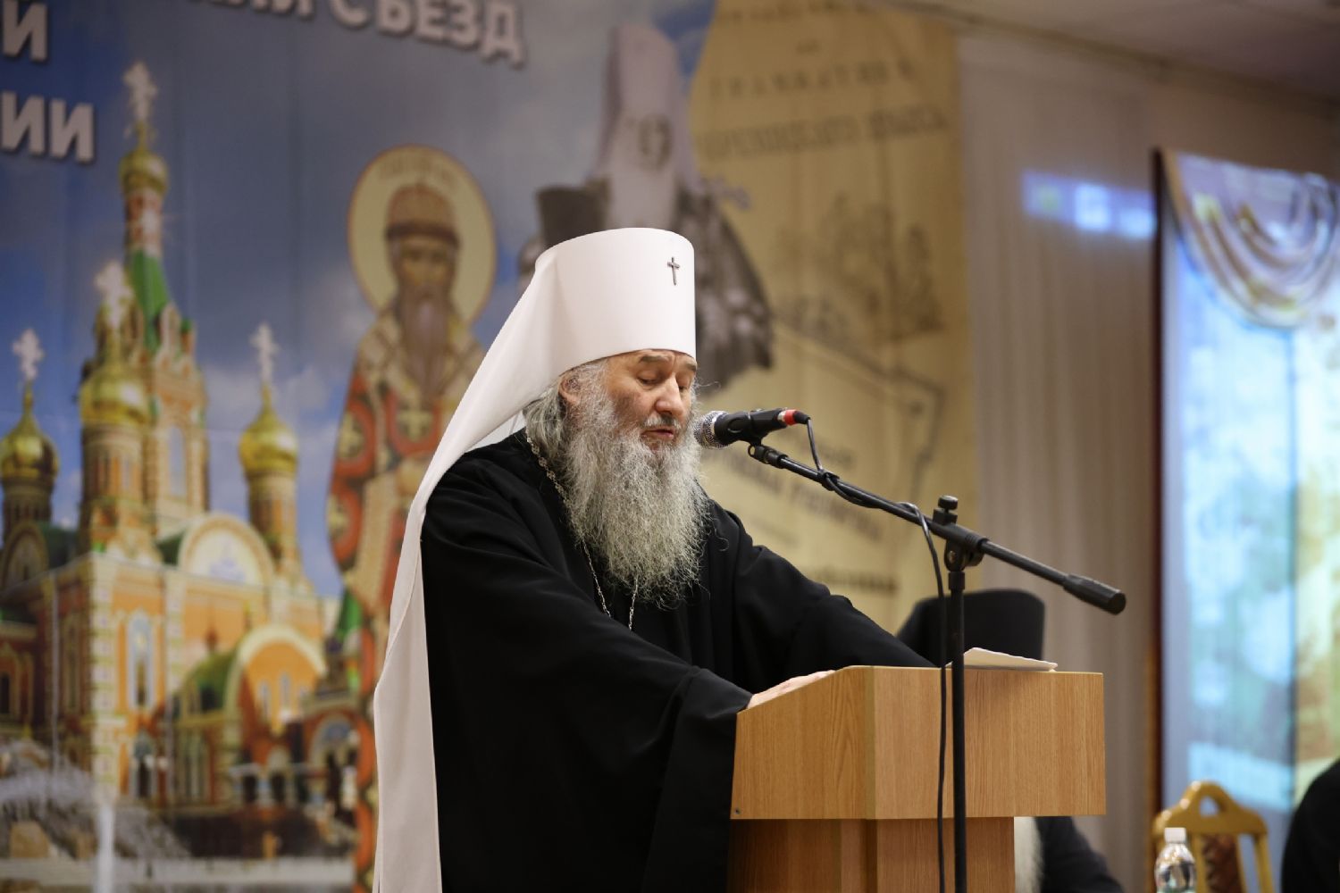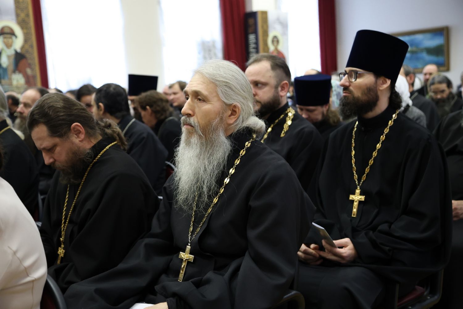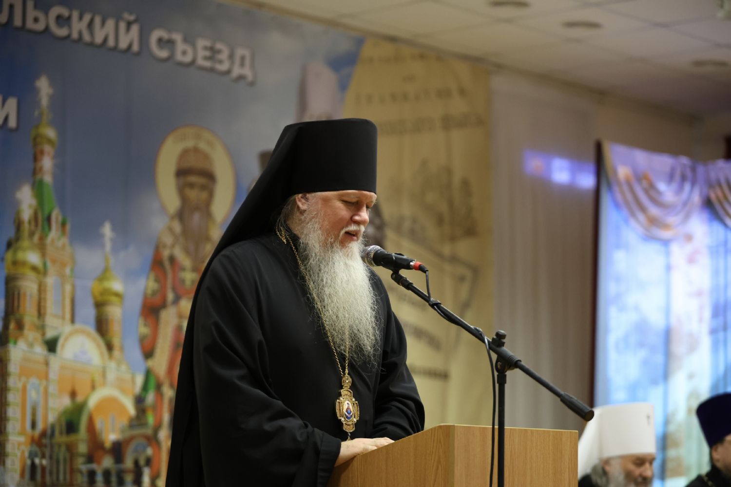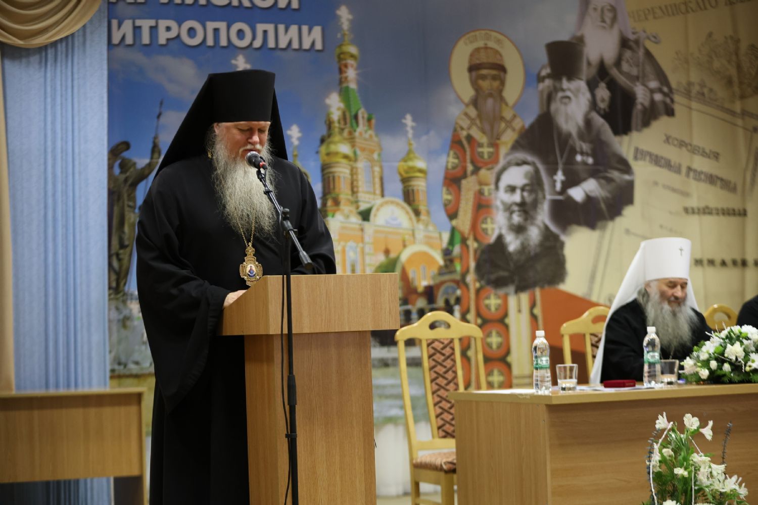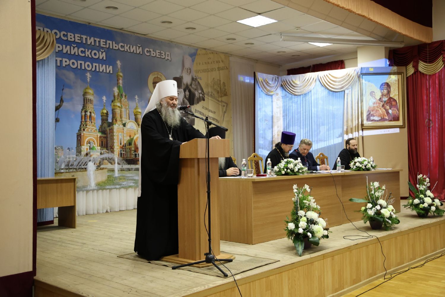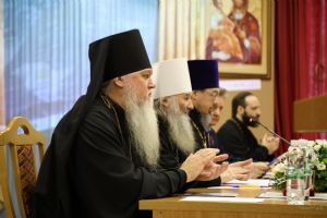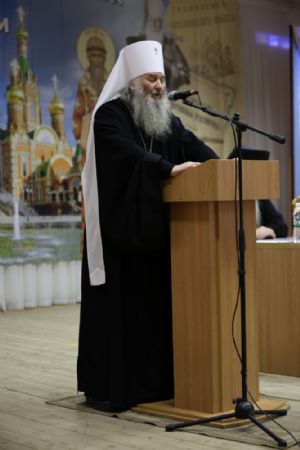 Пленарное заседание съезда проходило в актовом зале Православного центра под председательством митрополита Йошкар-Олинского и Марийского Иоанна.