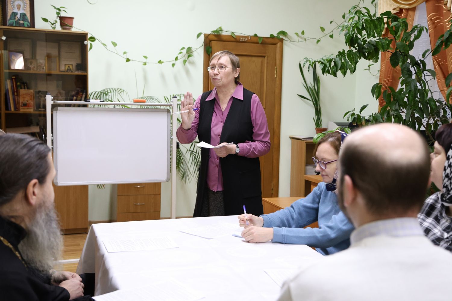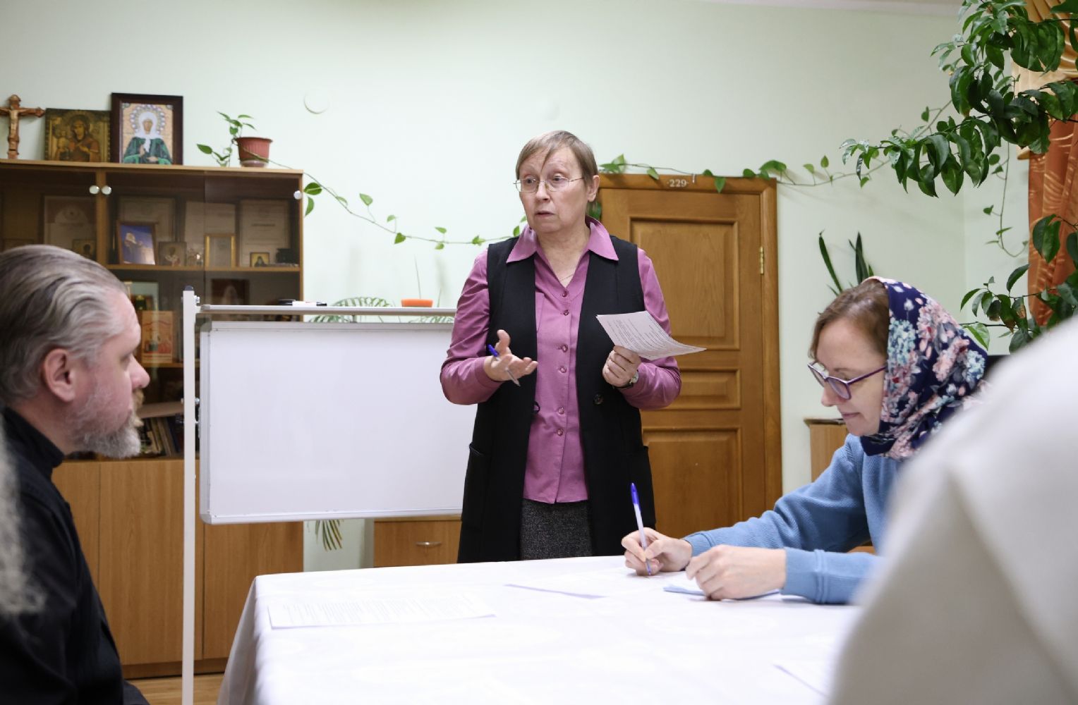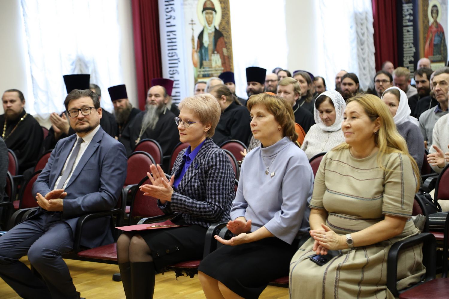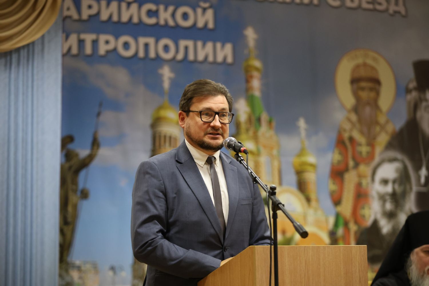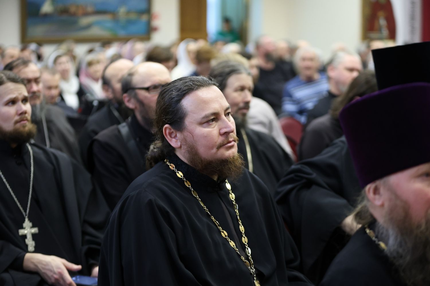 Пленарное заседание съезда проходило в актовом зале Православного центра под председательством митрополита Йошкар-Олинского и Марийского Иоанна.